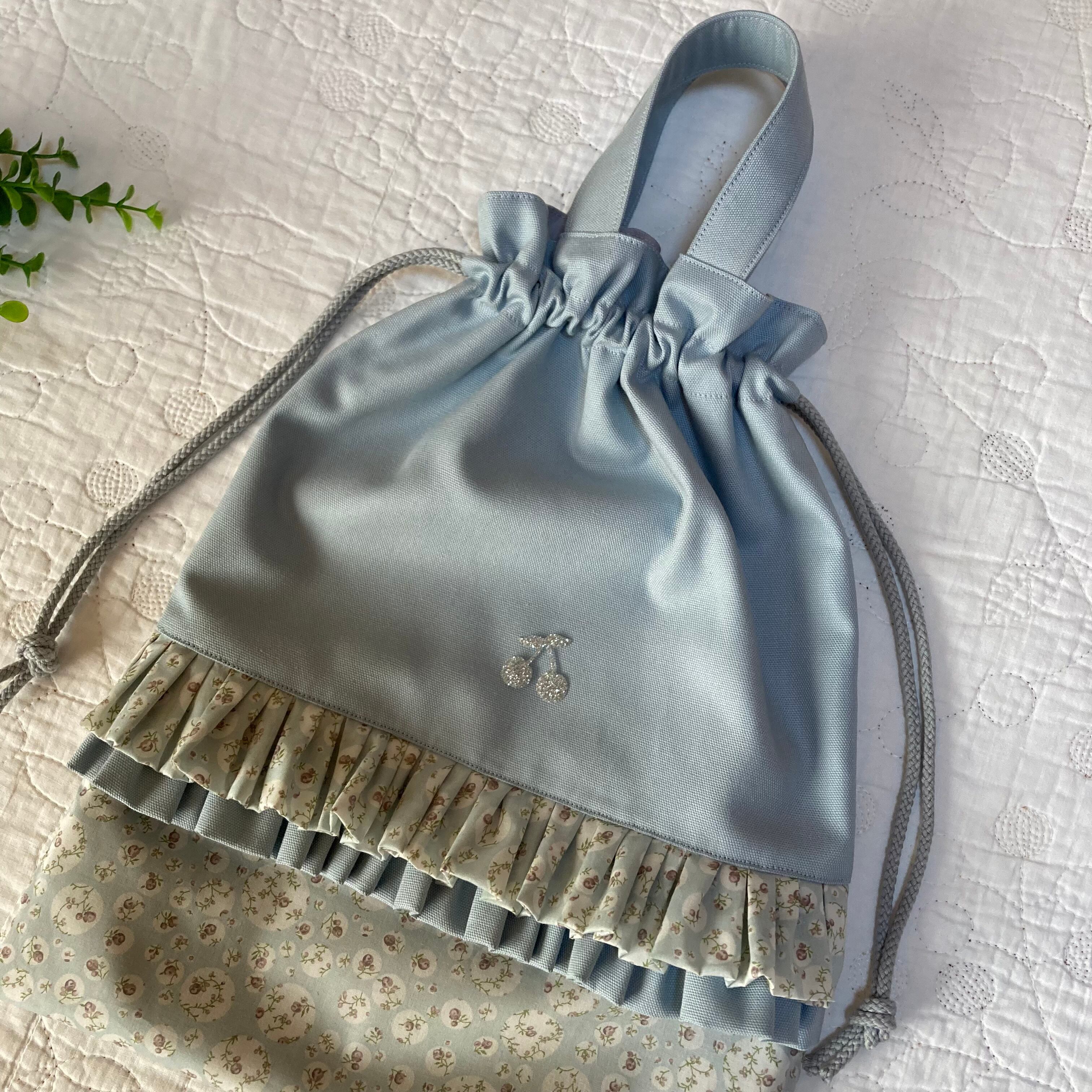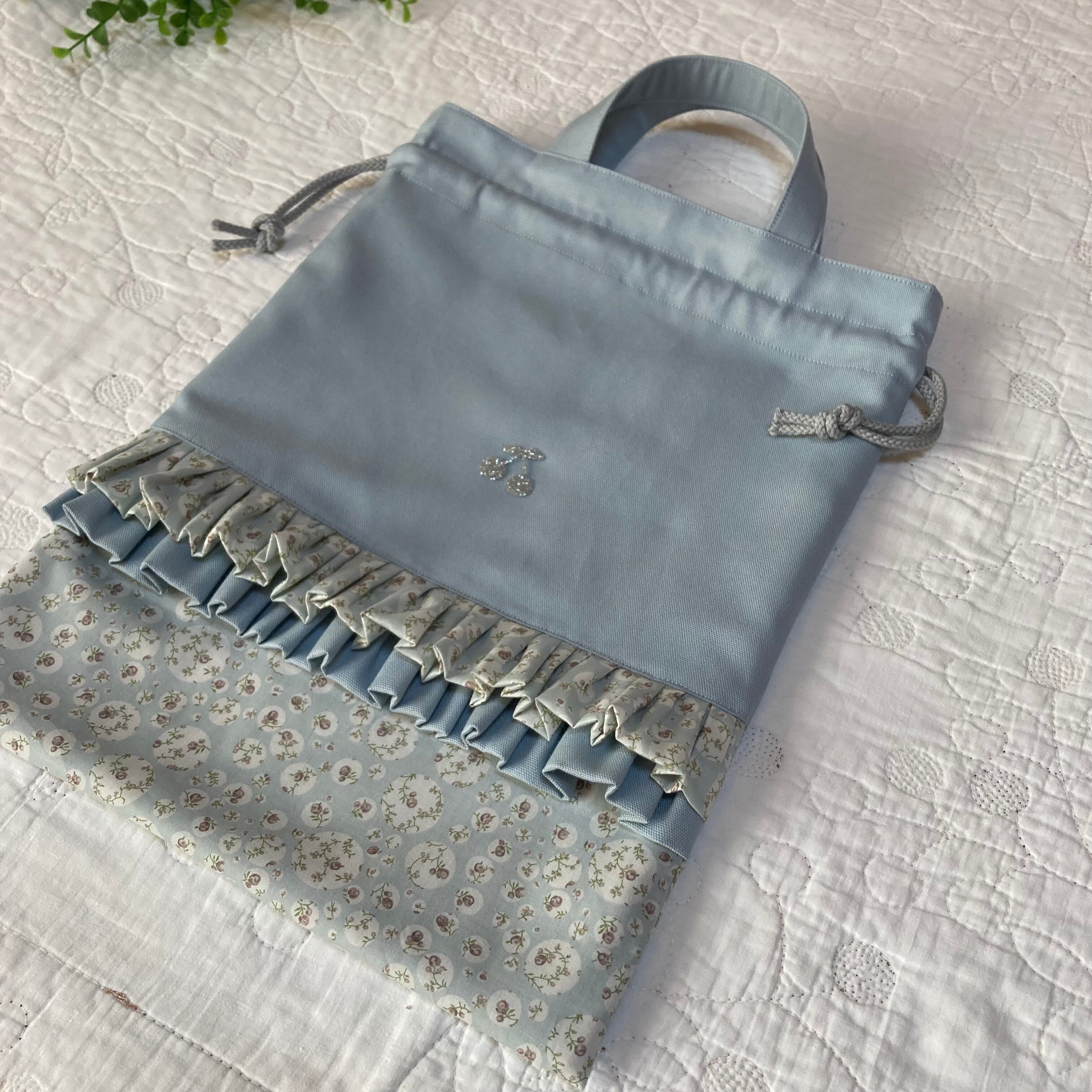 お道具袋 お着替え袋 上靴袋 ジョアンナ ミルクブルー【縦32cm×横25cm】