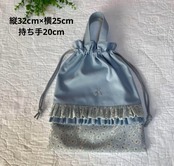 持ち手付き巾着袋 縦 32cm 片面フリル付き