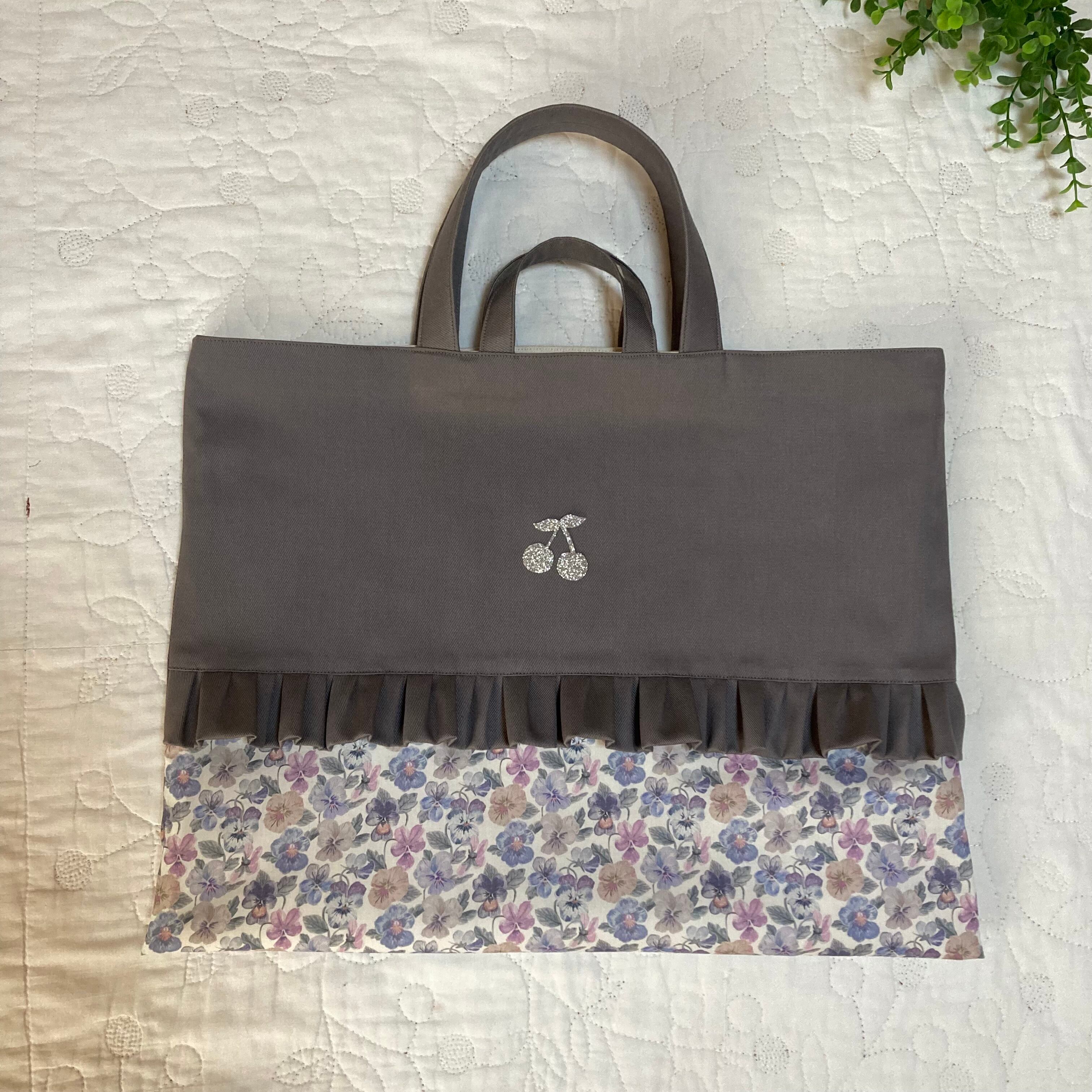 【ループ付き】レッスンバッグ 絵本袋 シンクオブミー グレイッシュ チビチビキッチン ハンドメイド