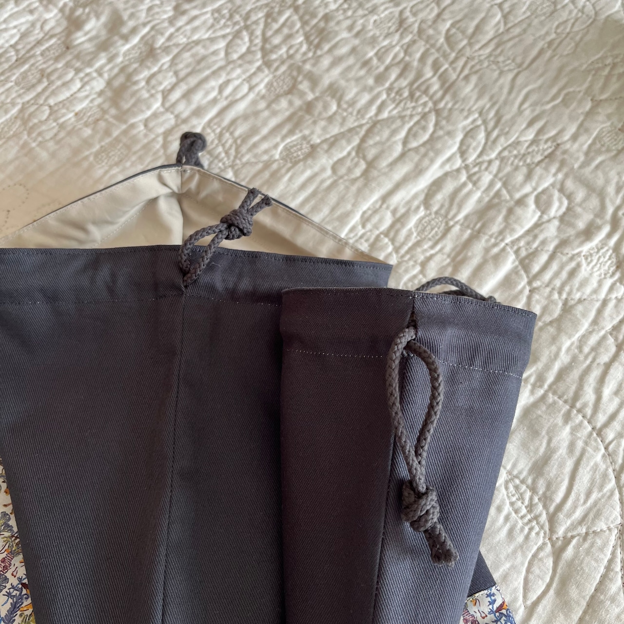 *巾着袋の紐はしっかり編み込まれた解きにくい紐を使用しています