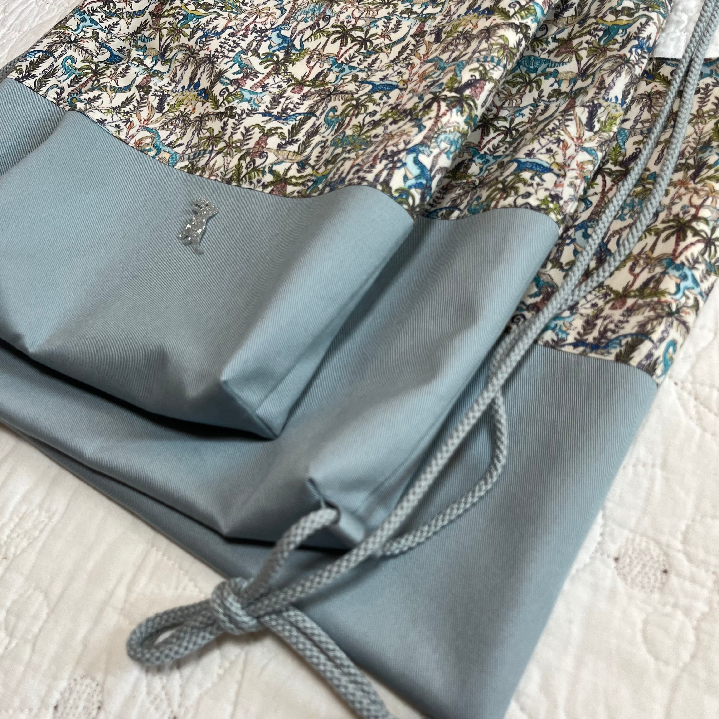 *ナップサックの紐の長さは高学年までお使い頂けるように2m×2本にしています。またひもはしっかり編み込まれた解きにくい紐を使用しています