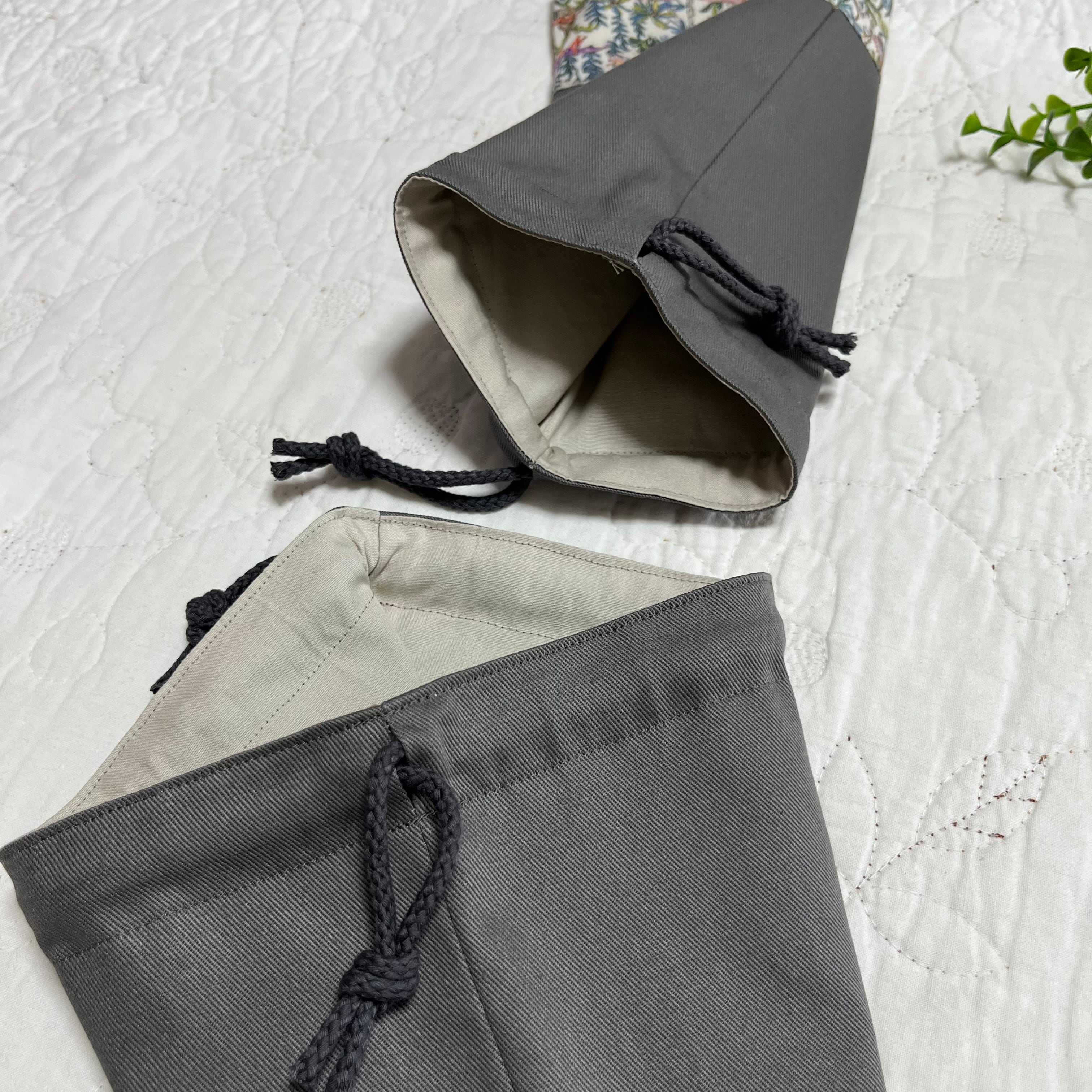 *巾着袋の紐はしっかり編み込まれた解きにくい紐を使用しています