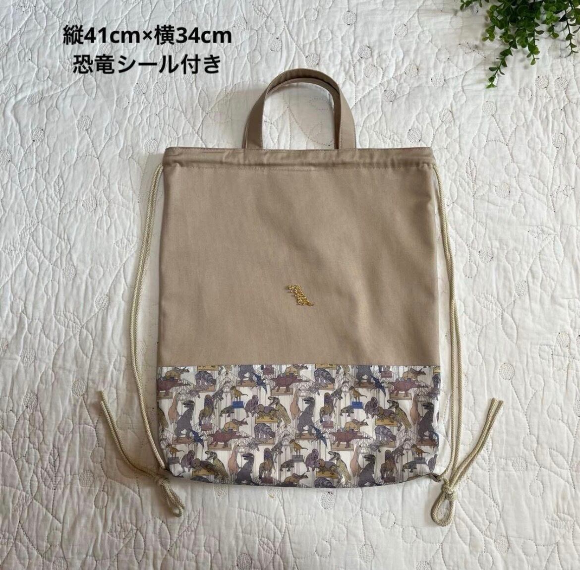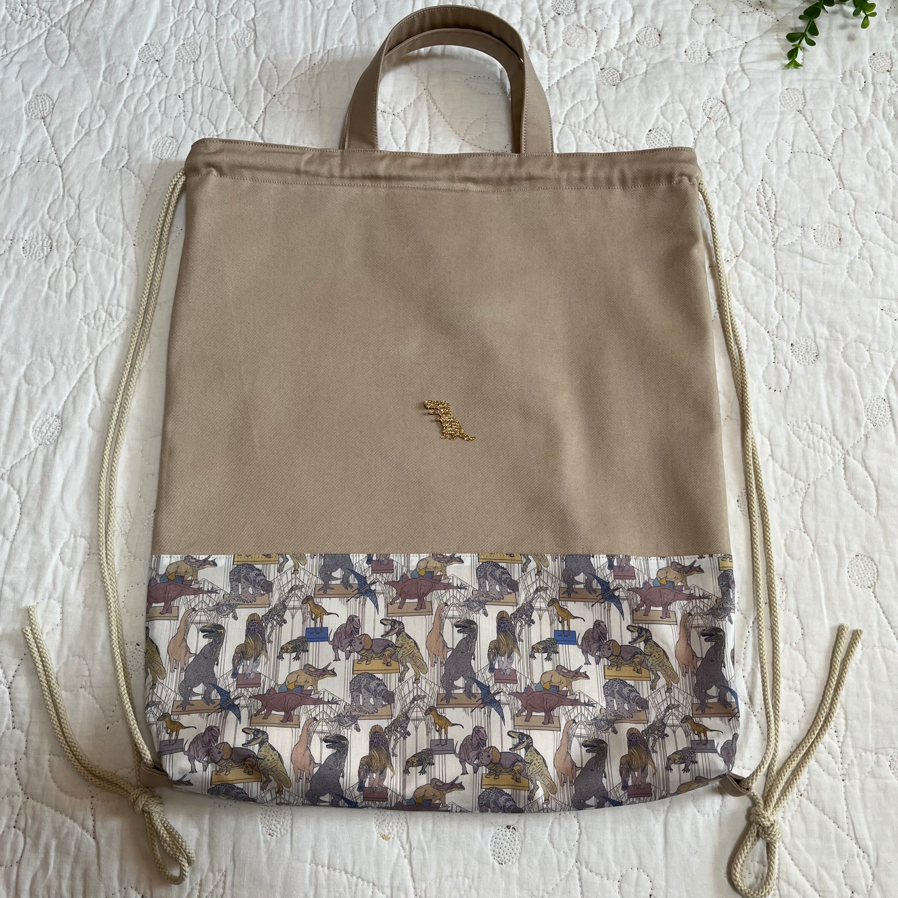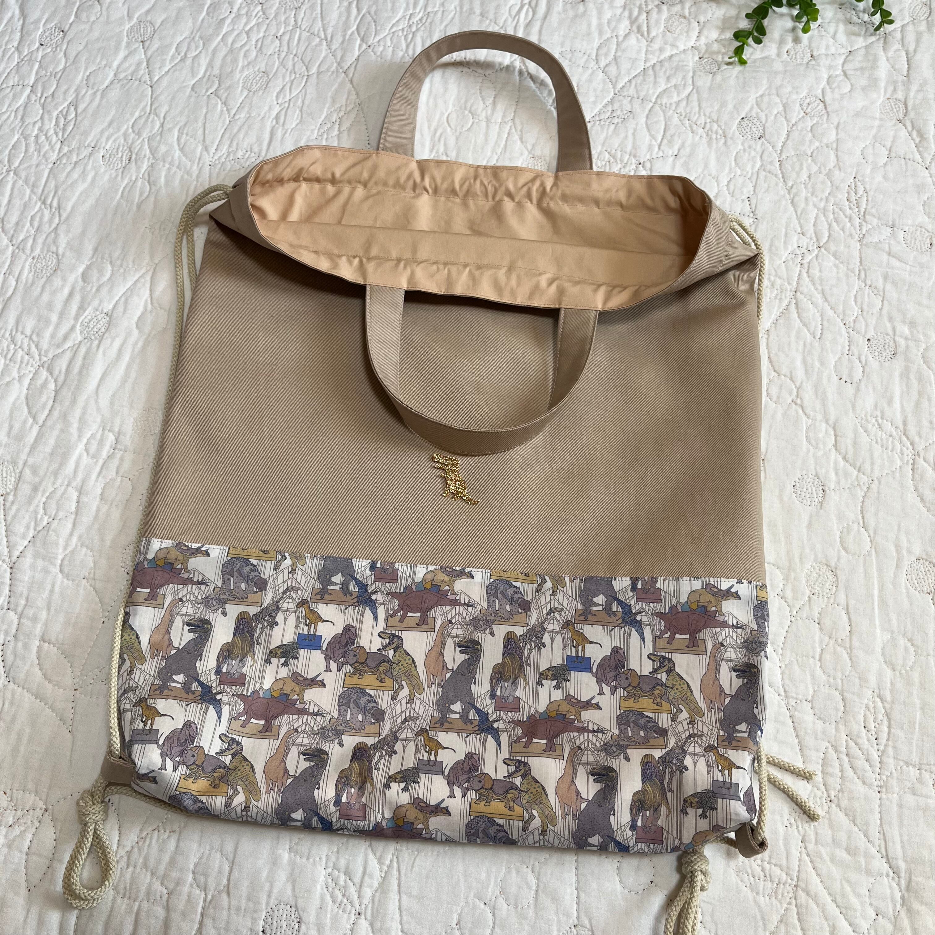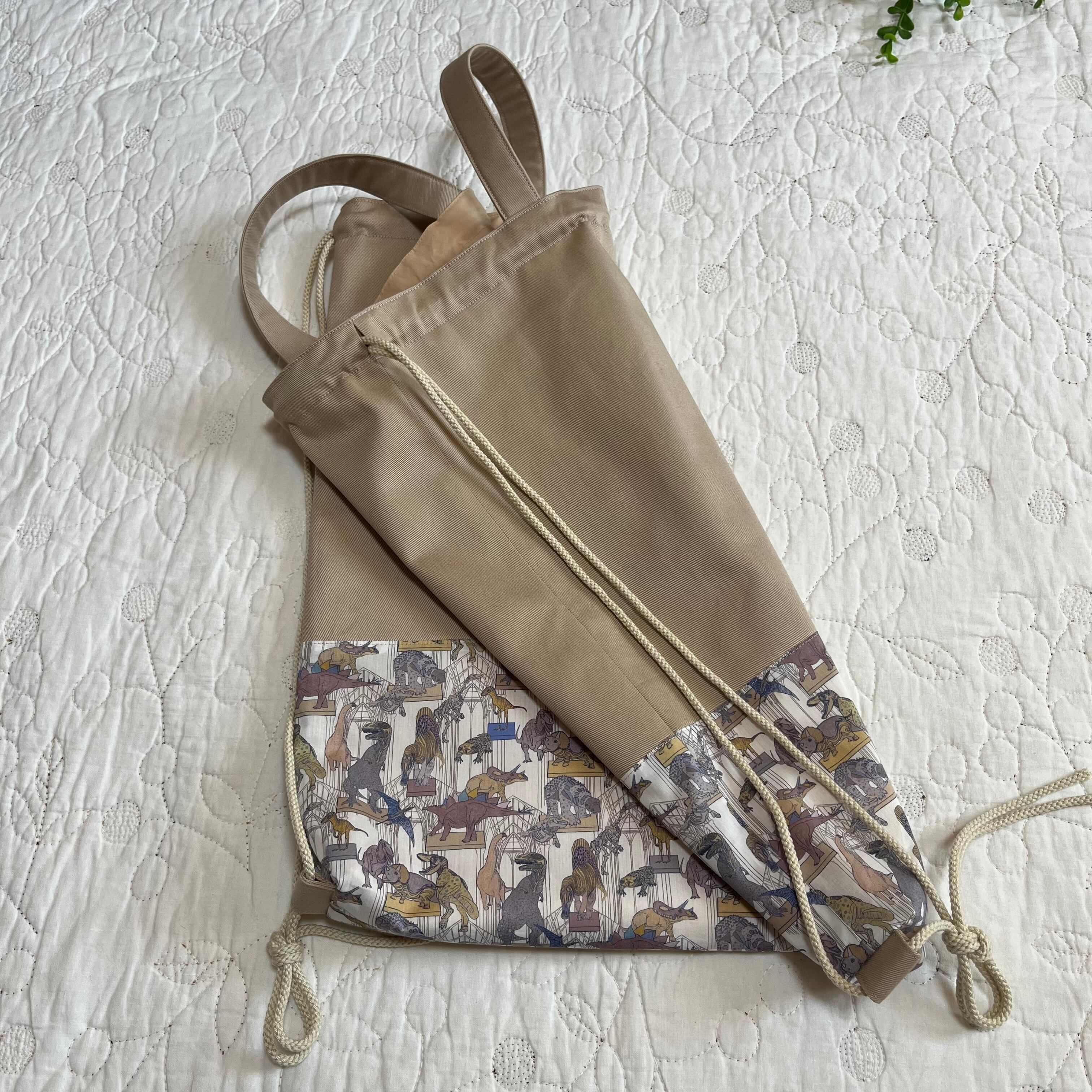 ナップサック 体操服袋 お着替え袋 リバティ クラウスロアーズアンドダイナソーズ ハンドメイド 入園入学