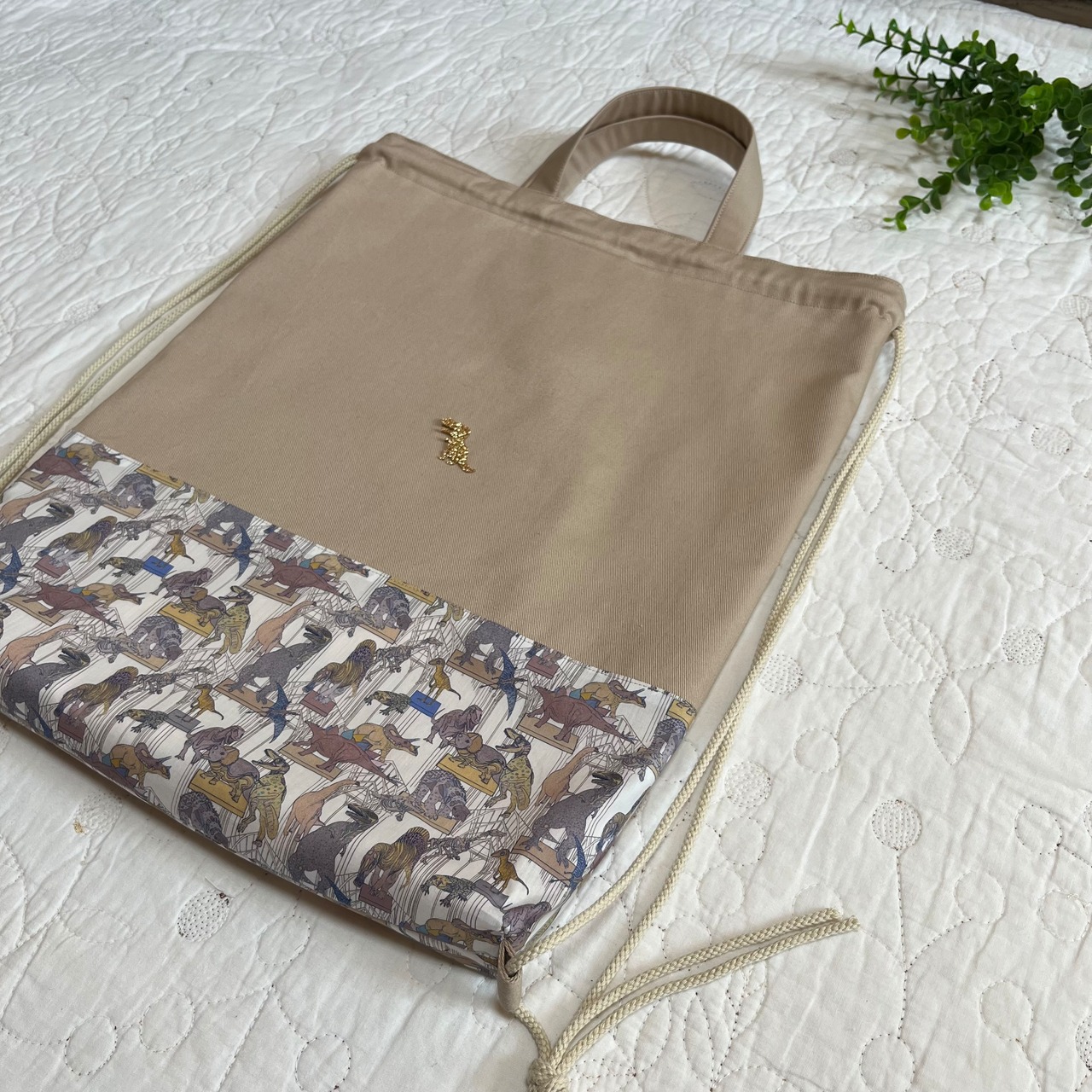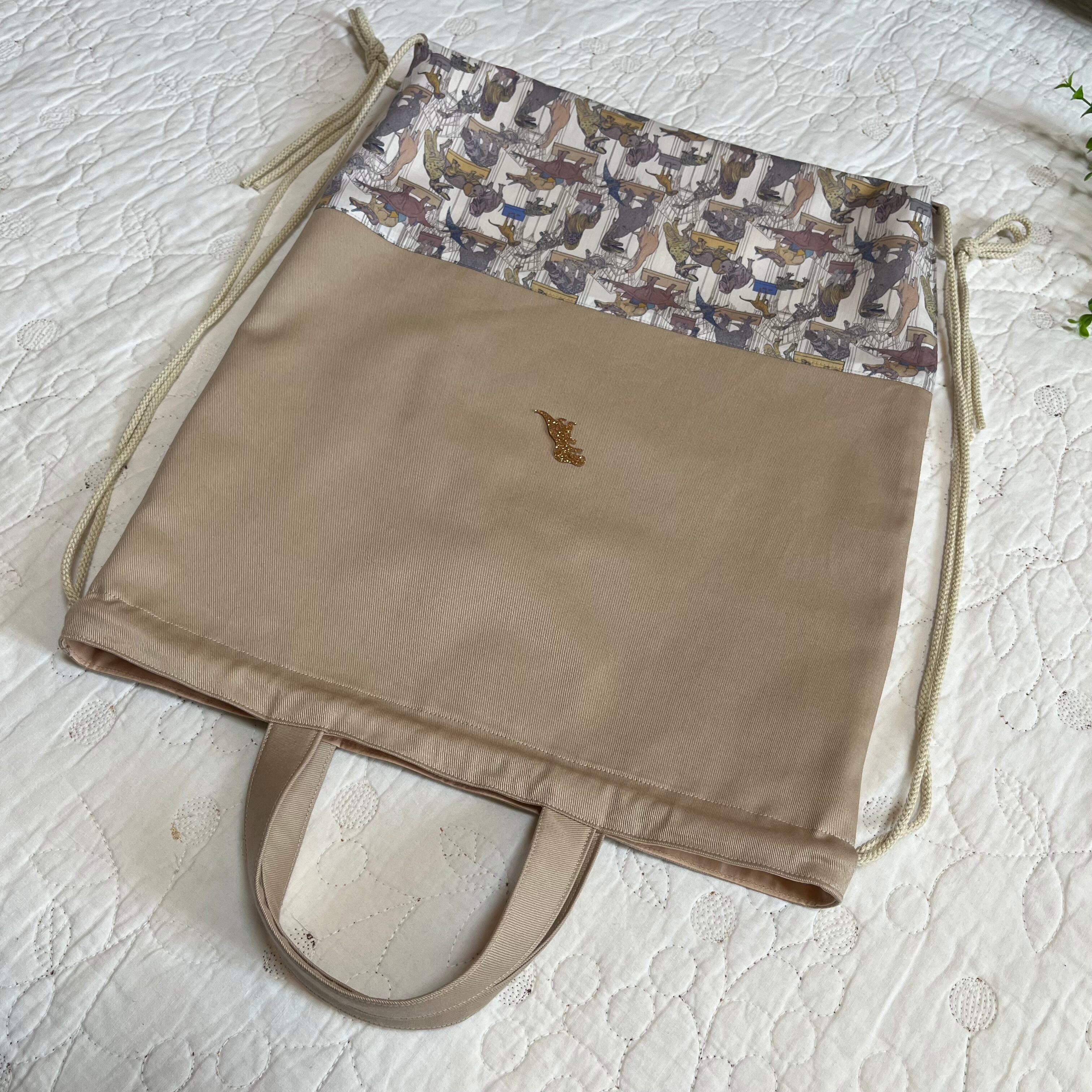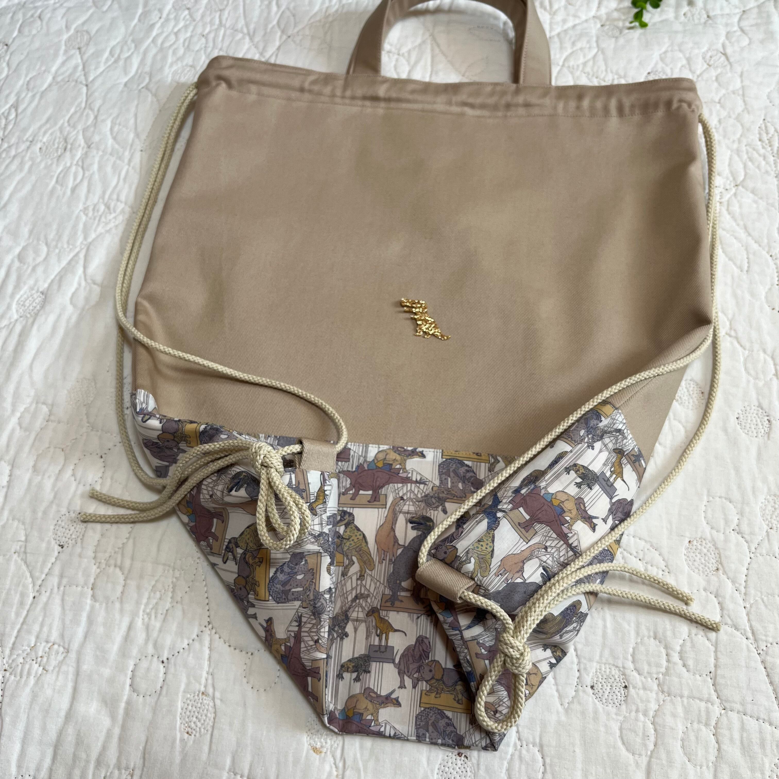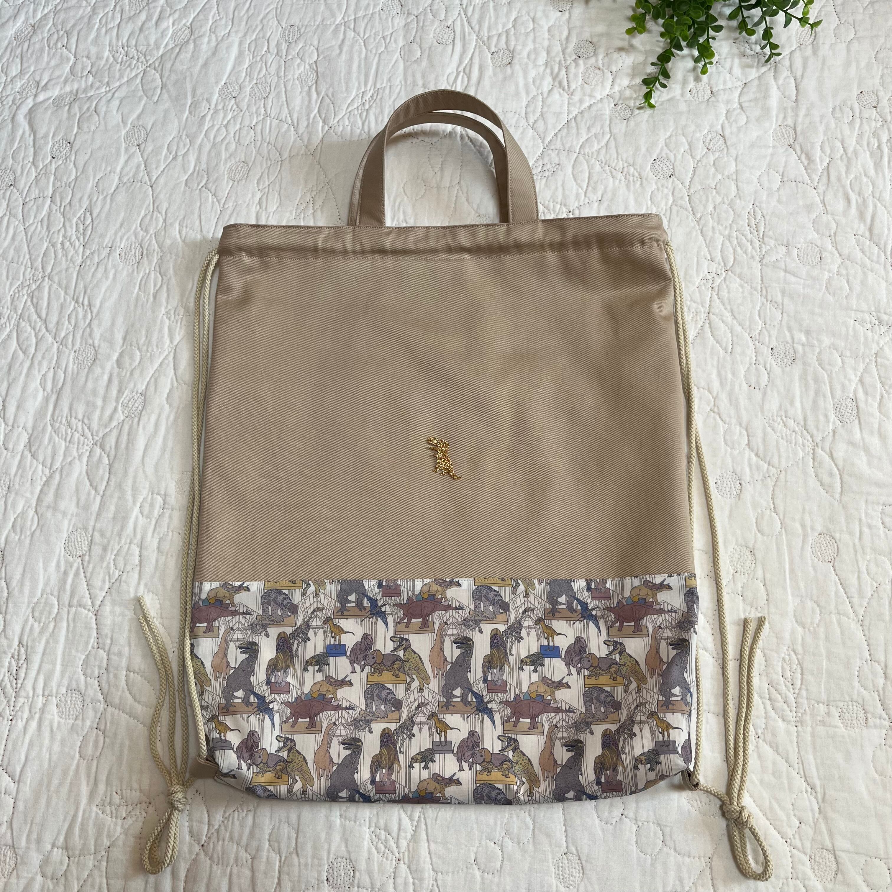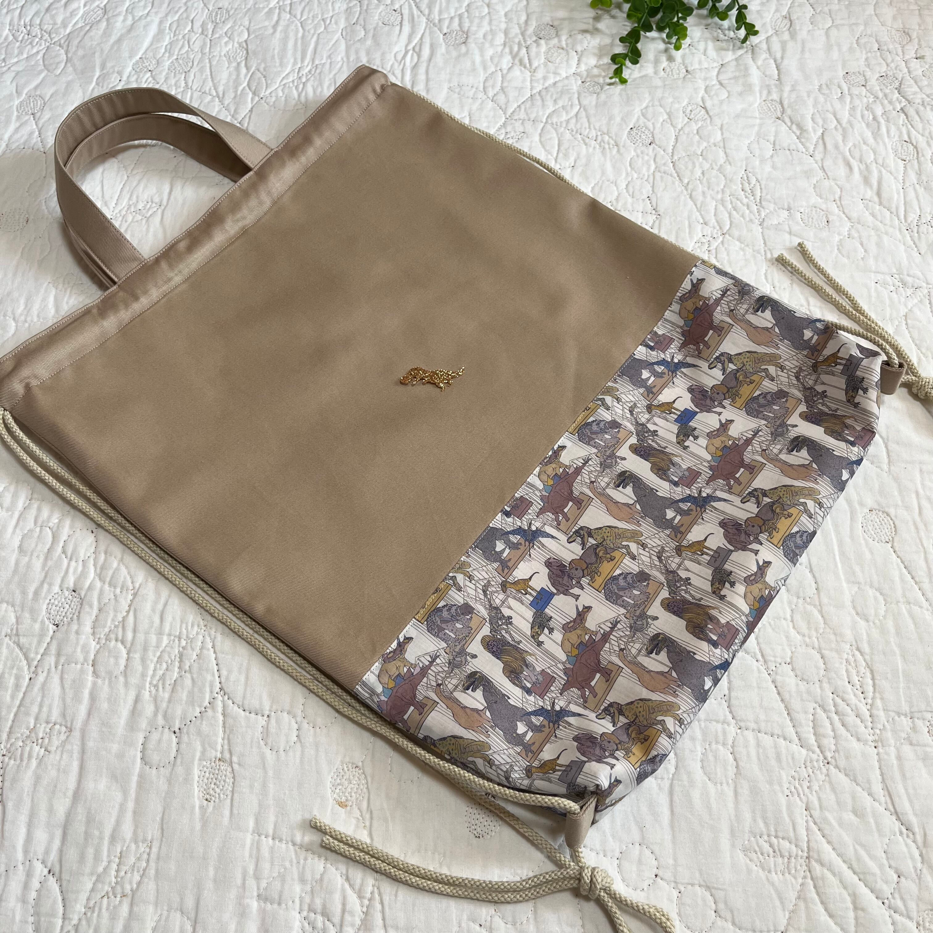 ナップサック 体操服袋 お着替え袋 リバティ クラウスロアーズアンドダイナソーズ ハンドメイド 入園入学