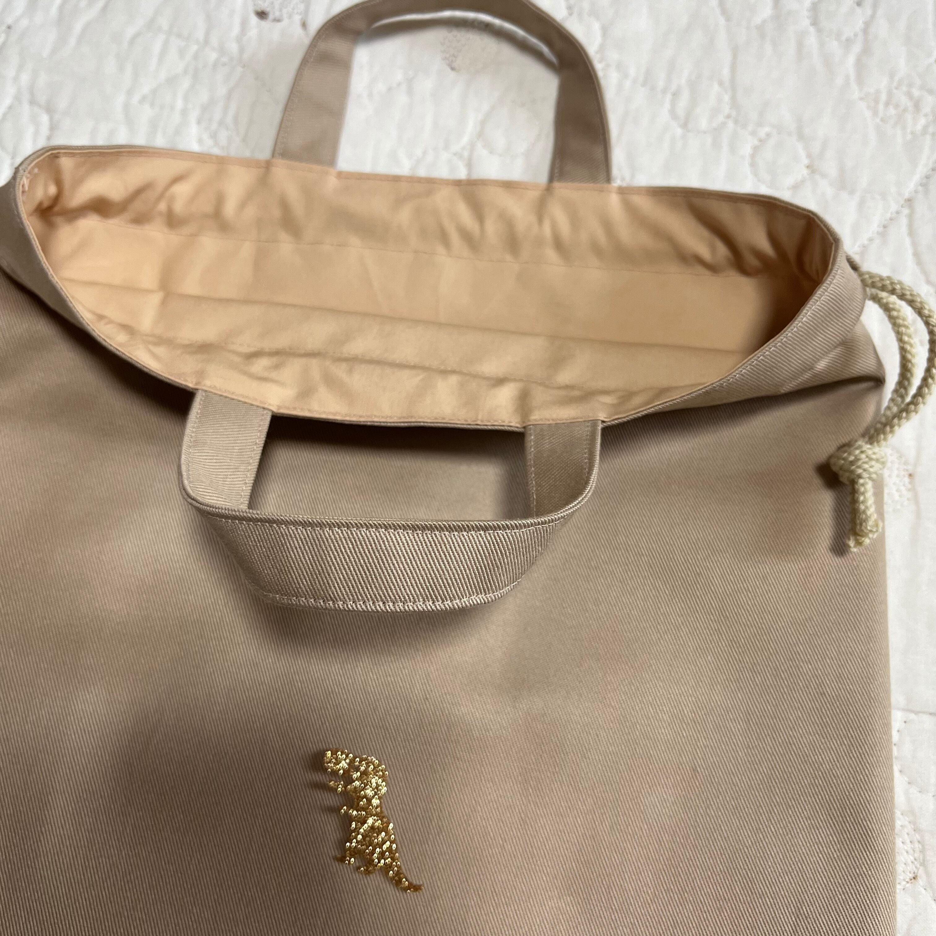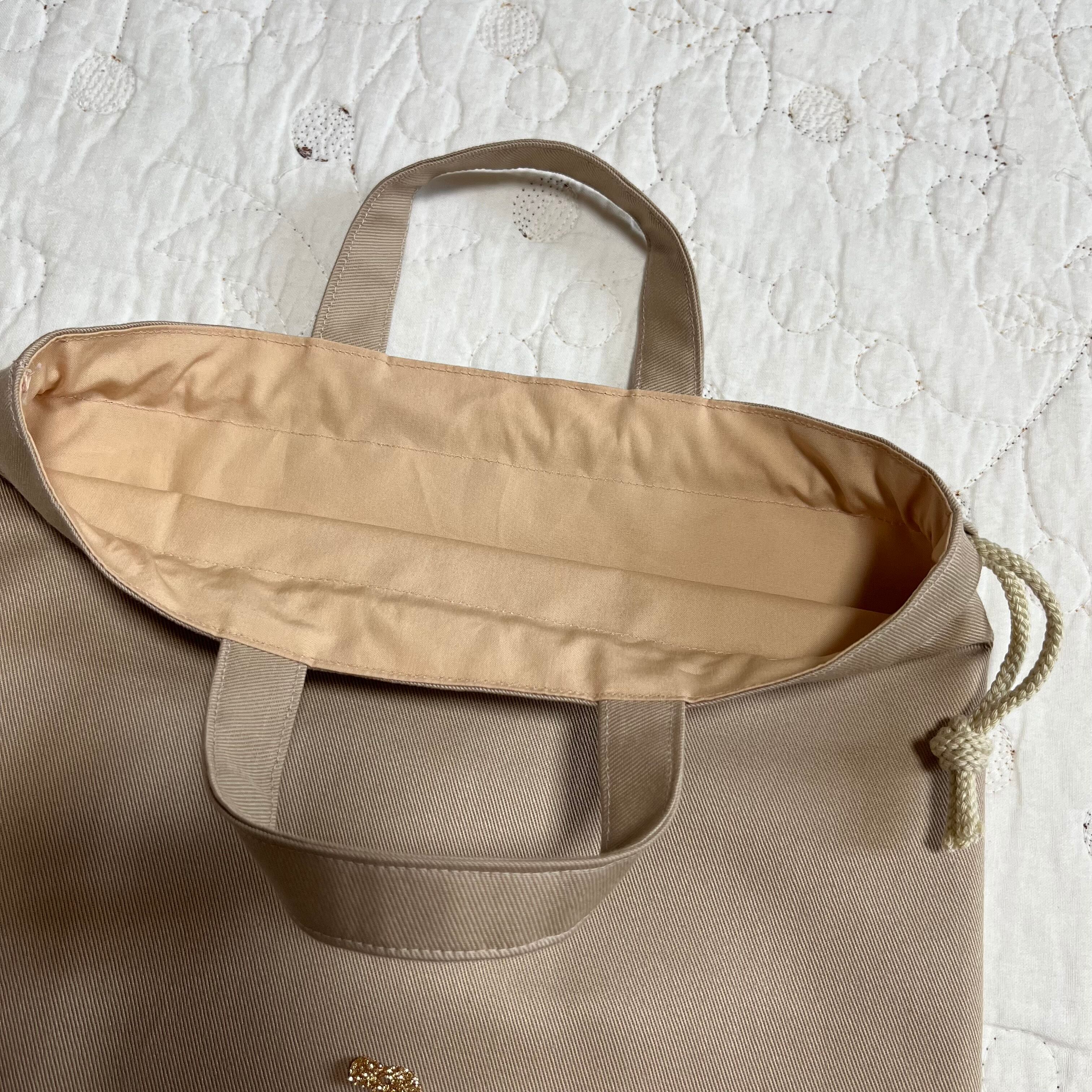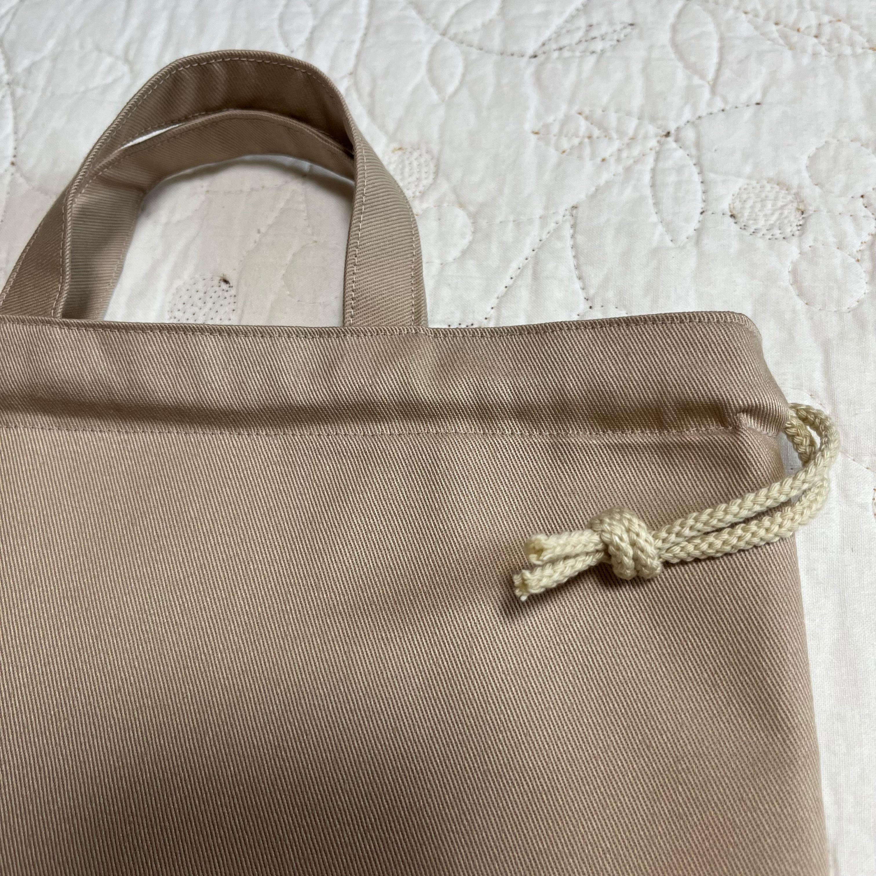 *持ち手付き巾着袋の紐はしっかり編み込まれた解きにくい紐を使用しています