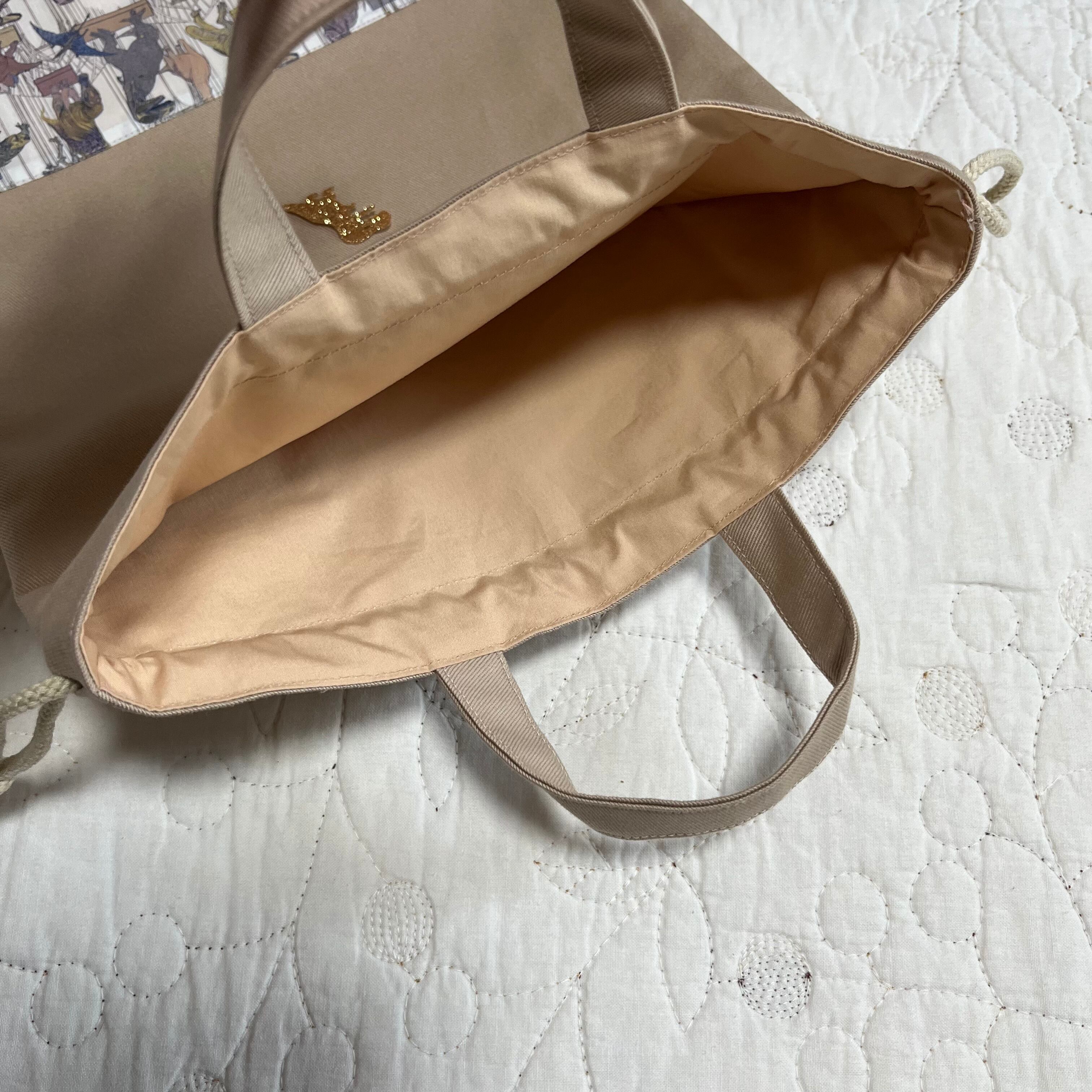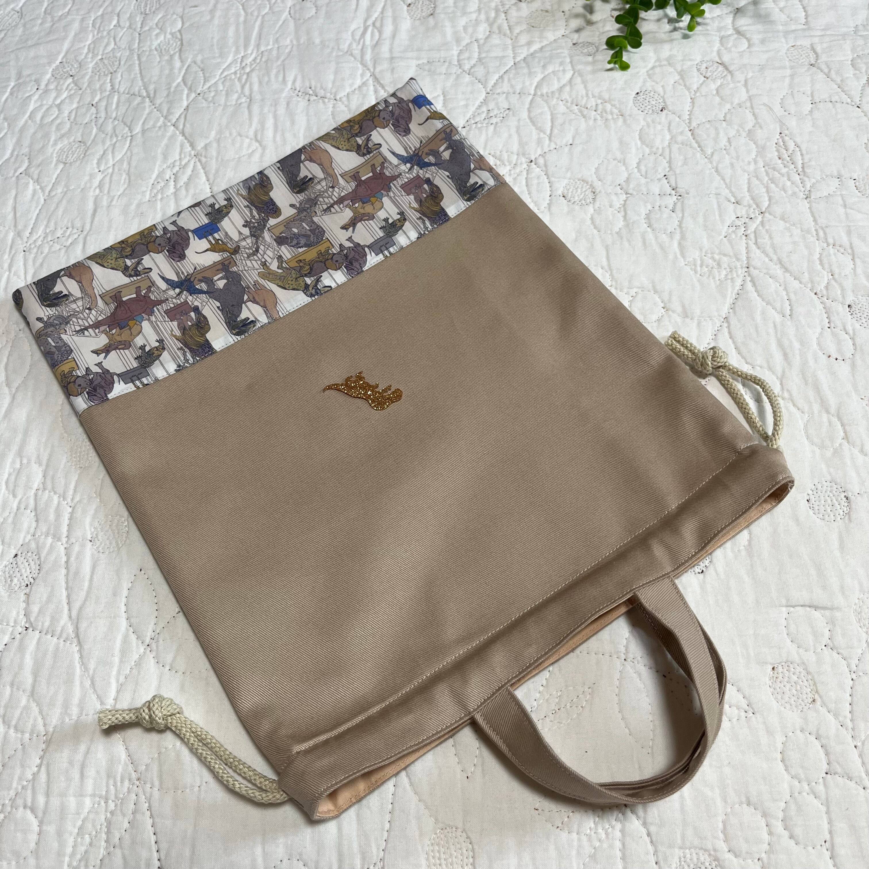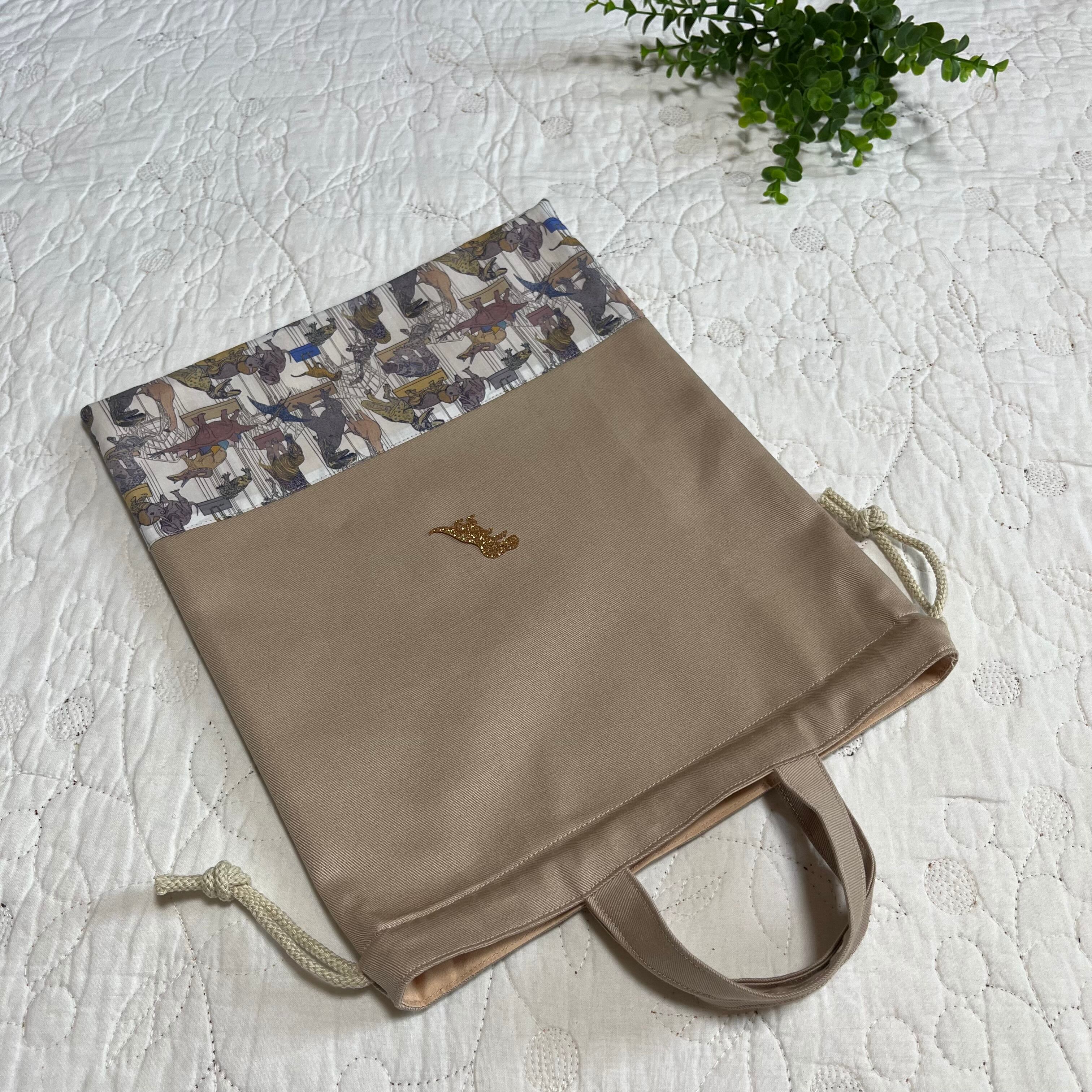 *持ち手付き巾着袋の紐はしっかり編み込まれた解きにくい紐を使用しています