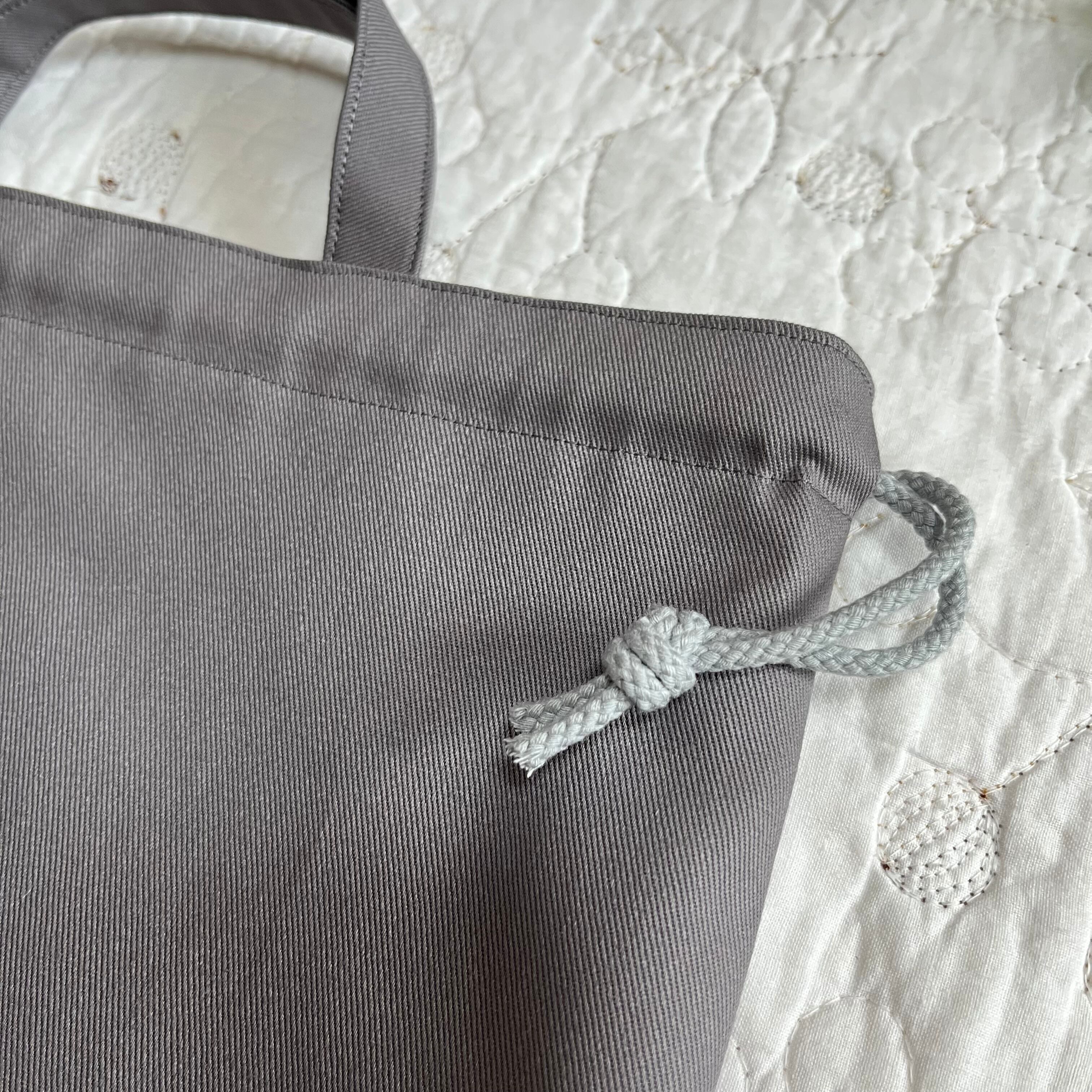 *持ち手付き巾着袋の紐はしっかり編み込まれた解きにくい紐を使用しています