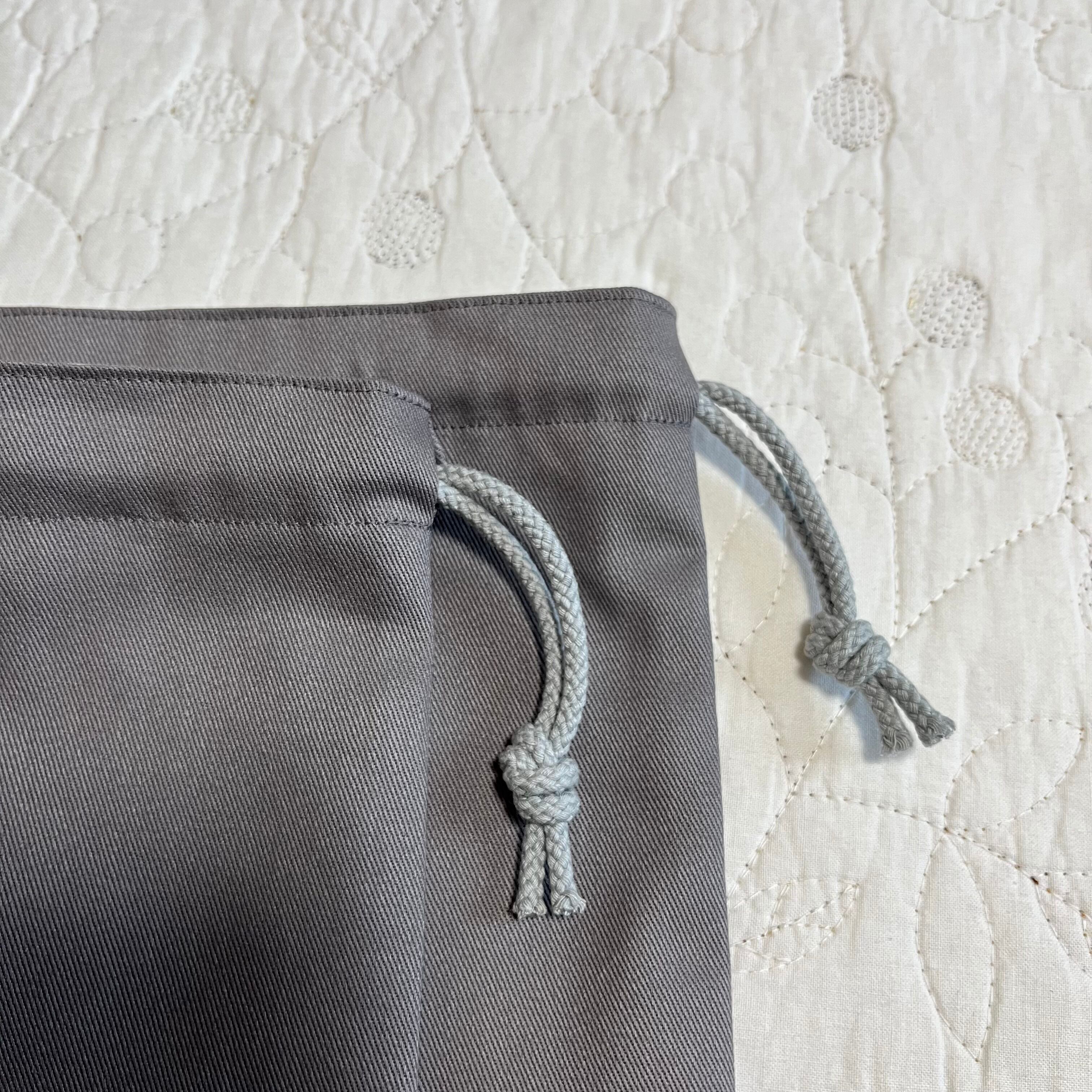 *巾着袋の紐はしっかり編み込まれた解きにくい紐を使用しています