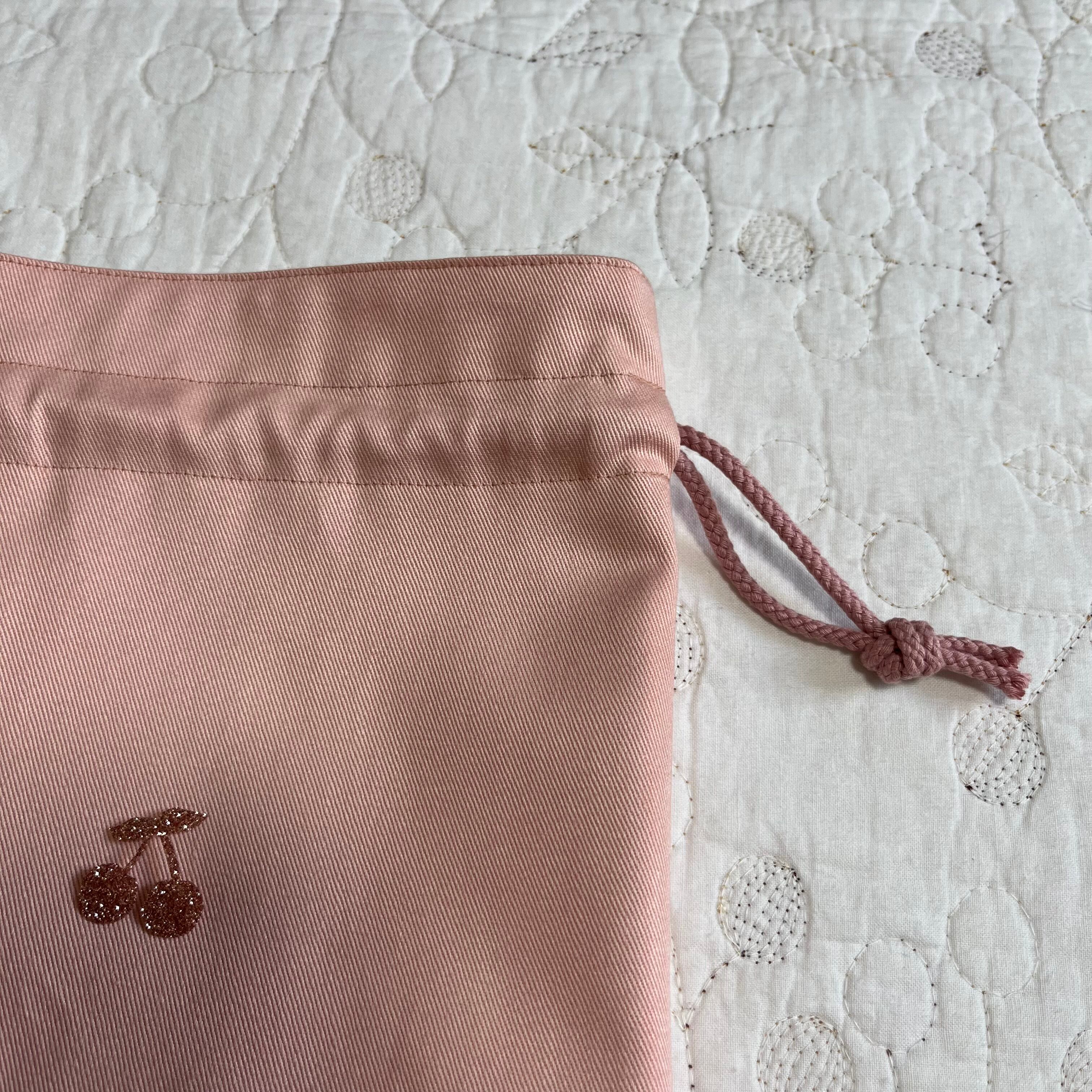 *コップ袋の紐はしっかり編み込まれた解きにくい紐を使用しています