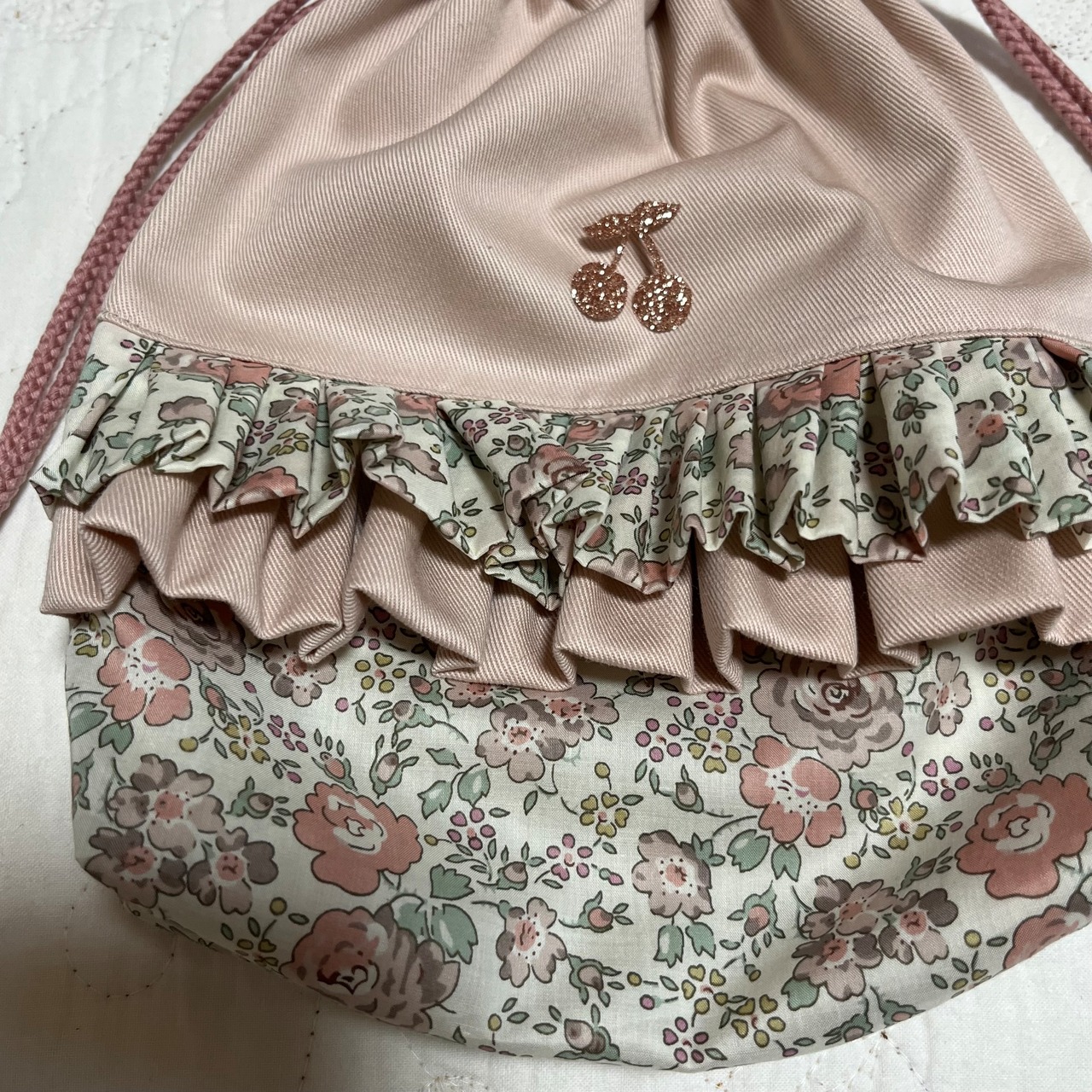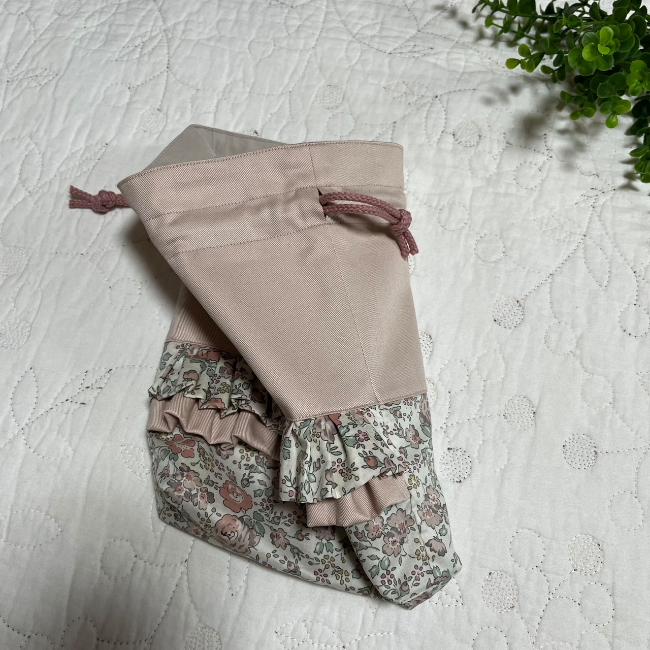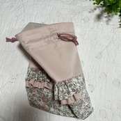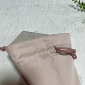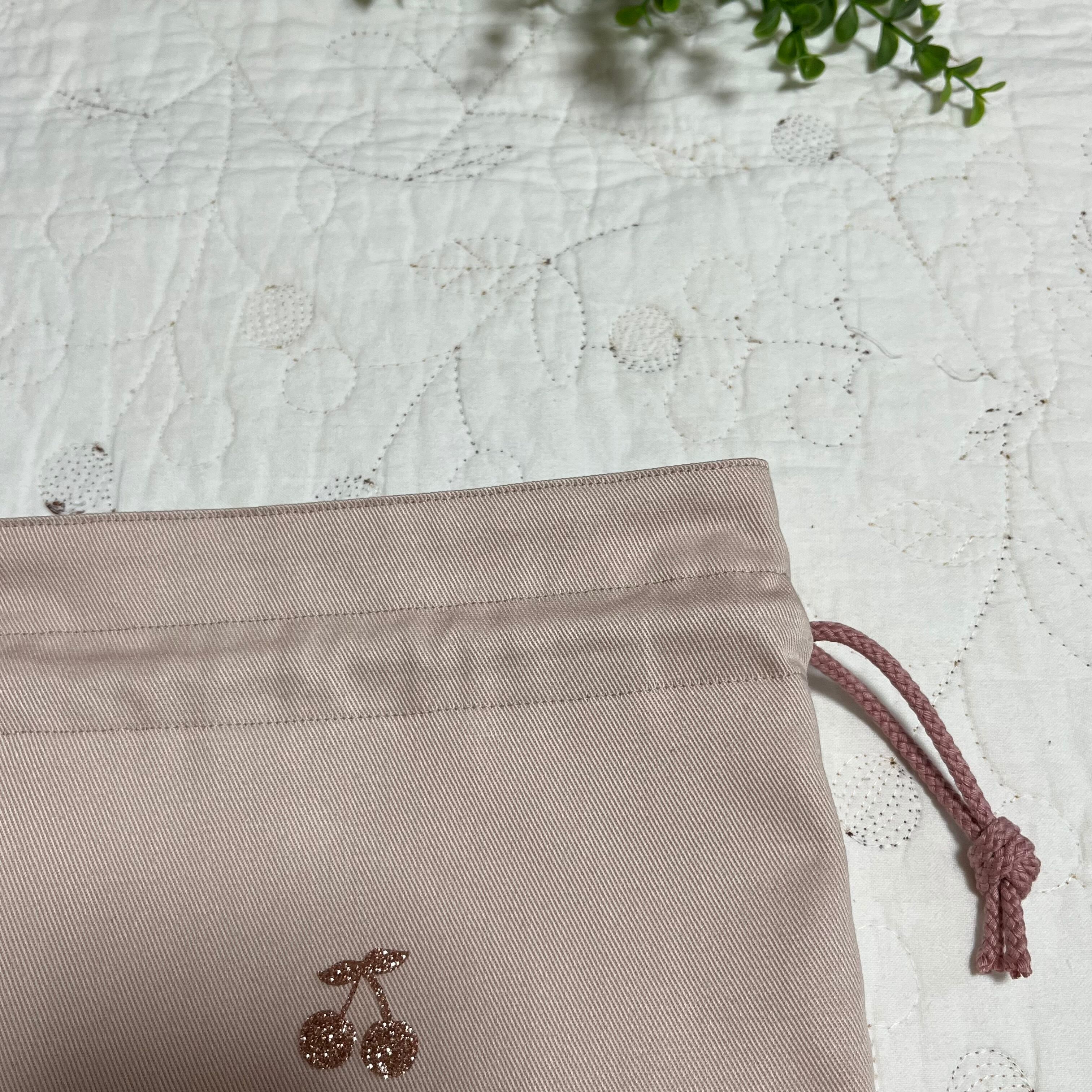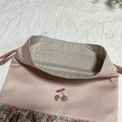 チェックアンドストライプ さんの限定色(完売品)のフェリシテ あずきミルクで巾着袋を作製しました。