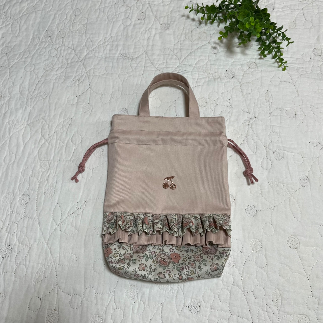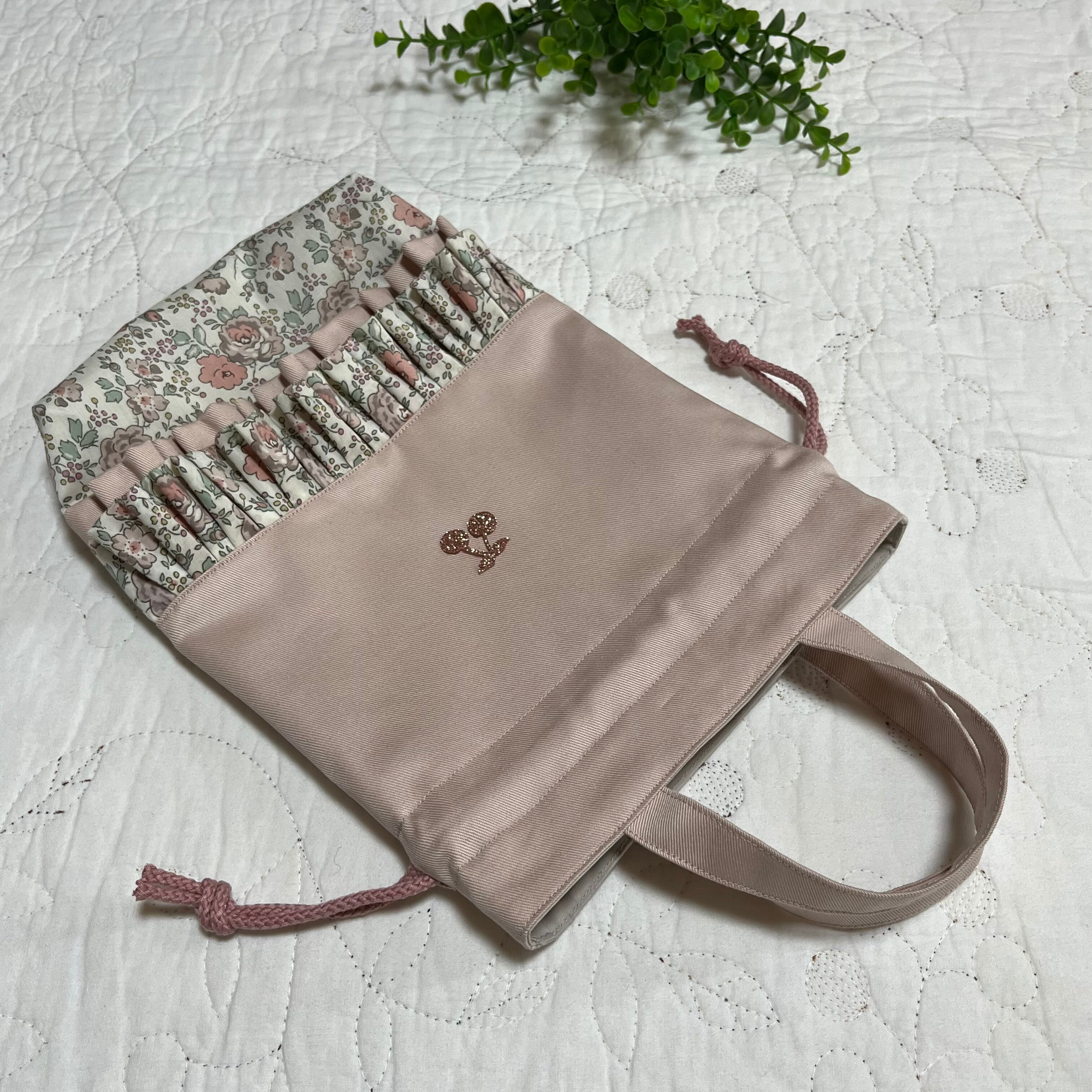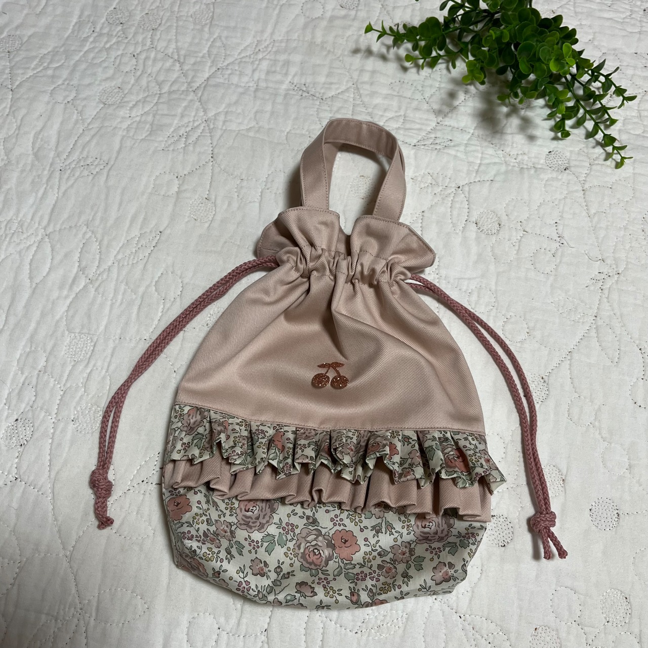 チェックアンドストライプ さんの限定色(完売品)のフェリシテ あずきミルクで巾着袋を作製しました。