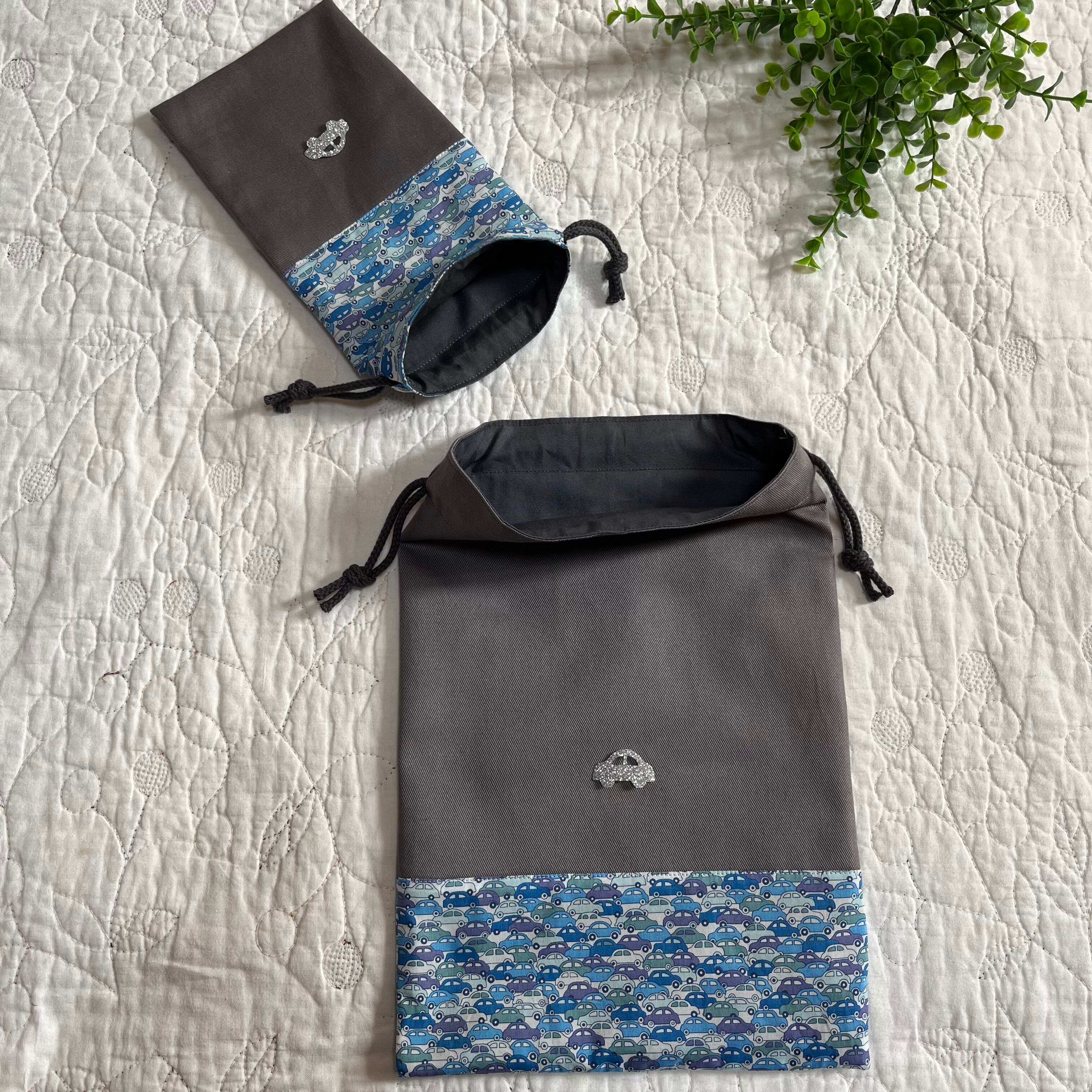 入園入学準備 輸入リバティ カーズ 巾着袋 給食袋 歯ブラシ袋 2点セット ハンドメイド