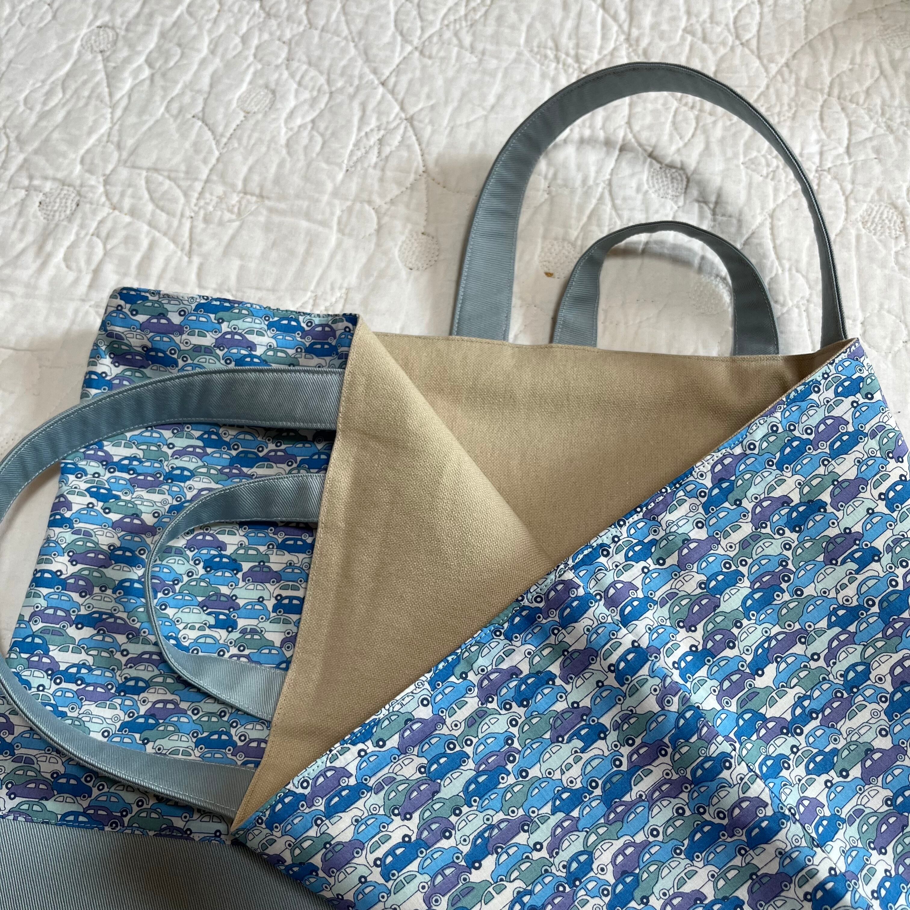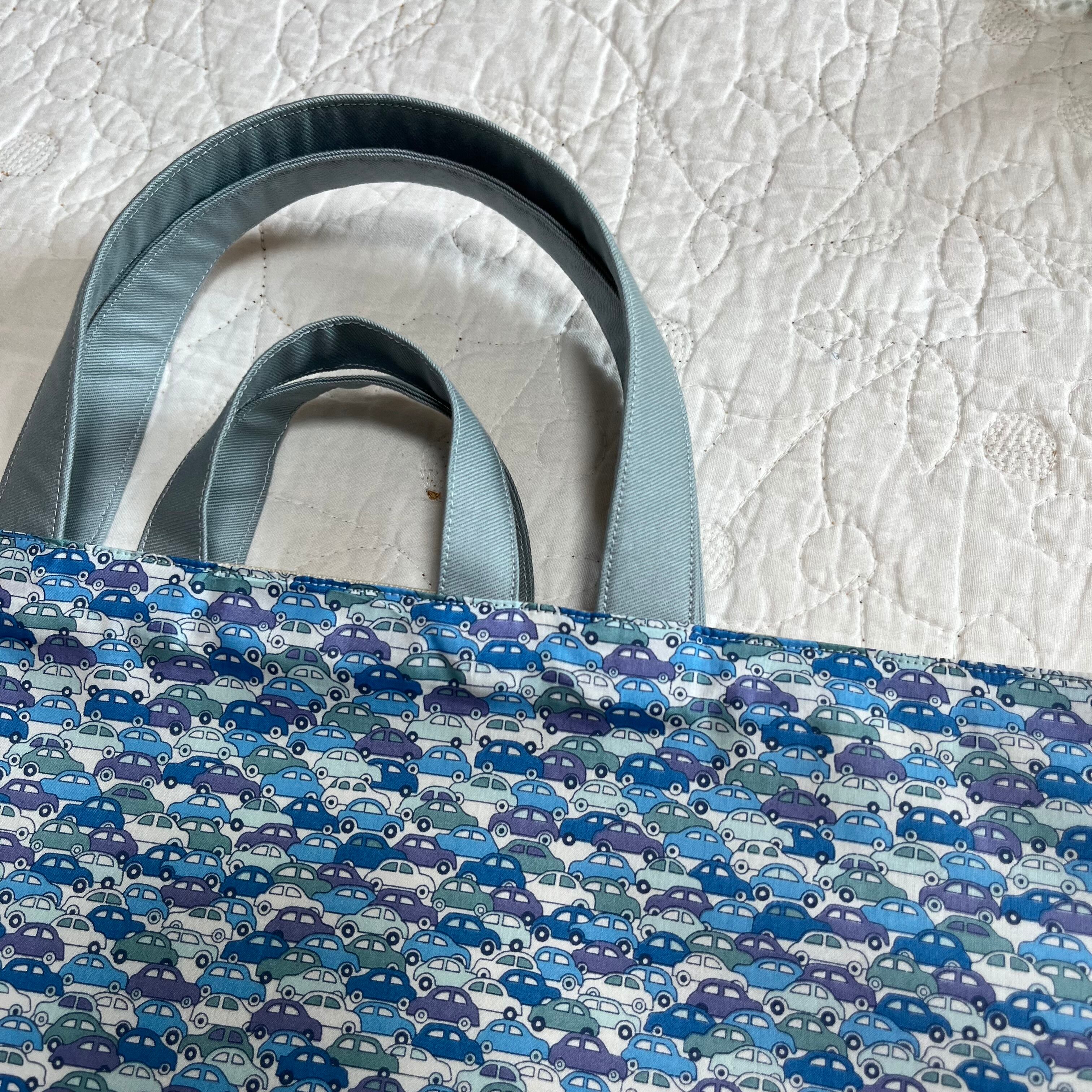 ループ付き レッスンバッグ 絵本袋 通園バッグ 輸入リバティ カーズ 入園入学 ハンドメイド