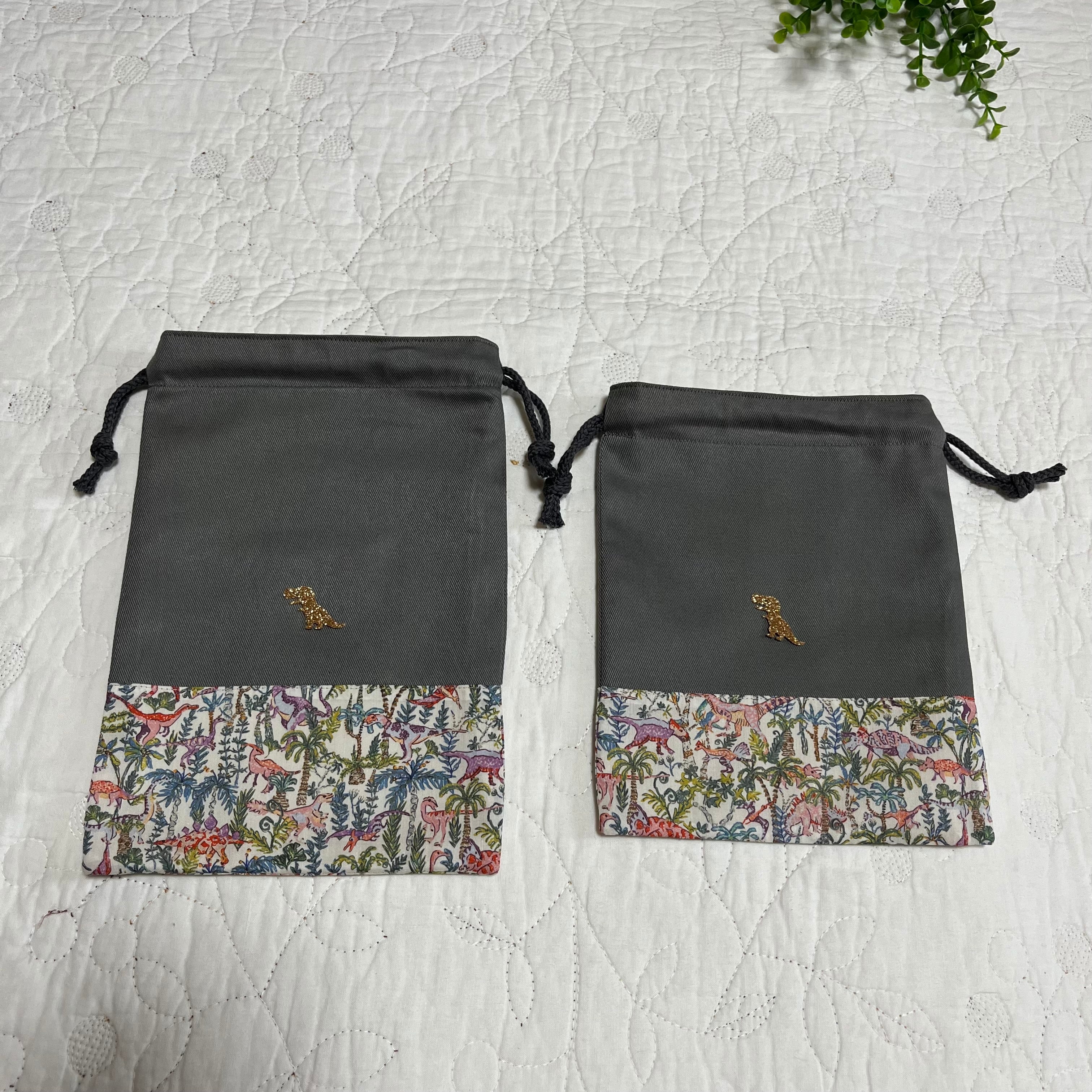 恐竜シール付き リバティ ランブルアンドロアー 巾着袋 給食袋 歯ブラシ袋 2点セット 入園入学 ハンドメイド