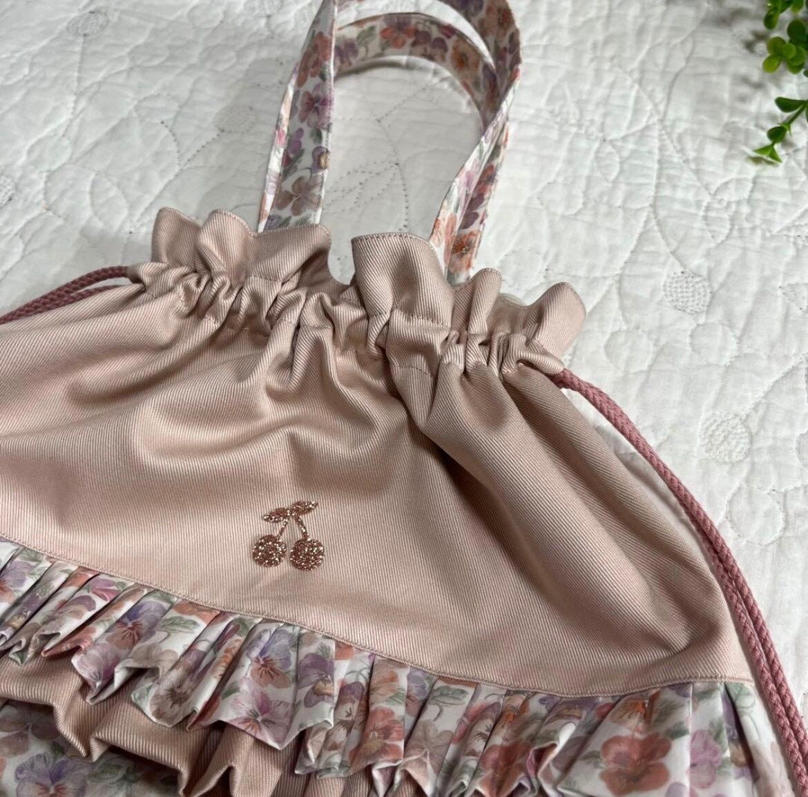 持ち手付き巾着 縦 37cm 片面2重フリル付き