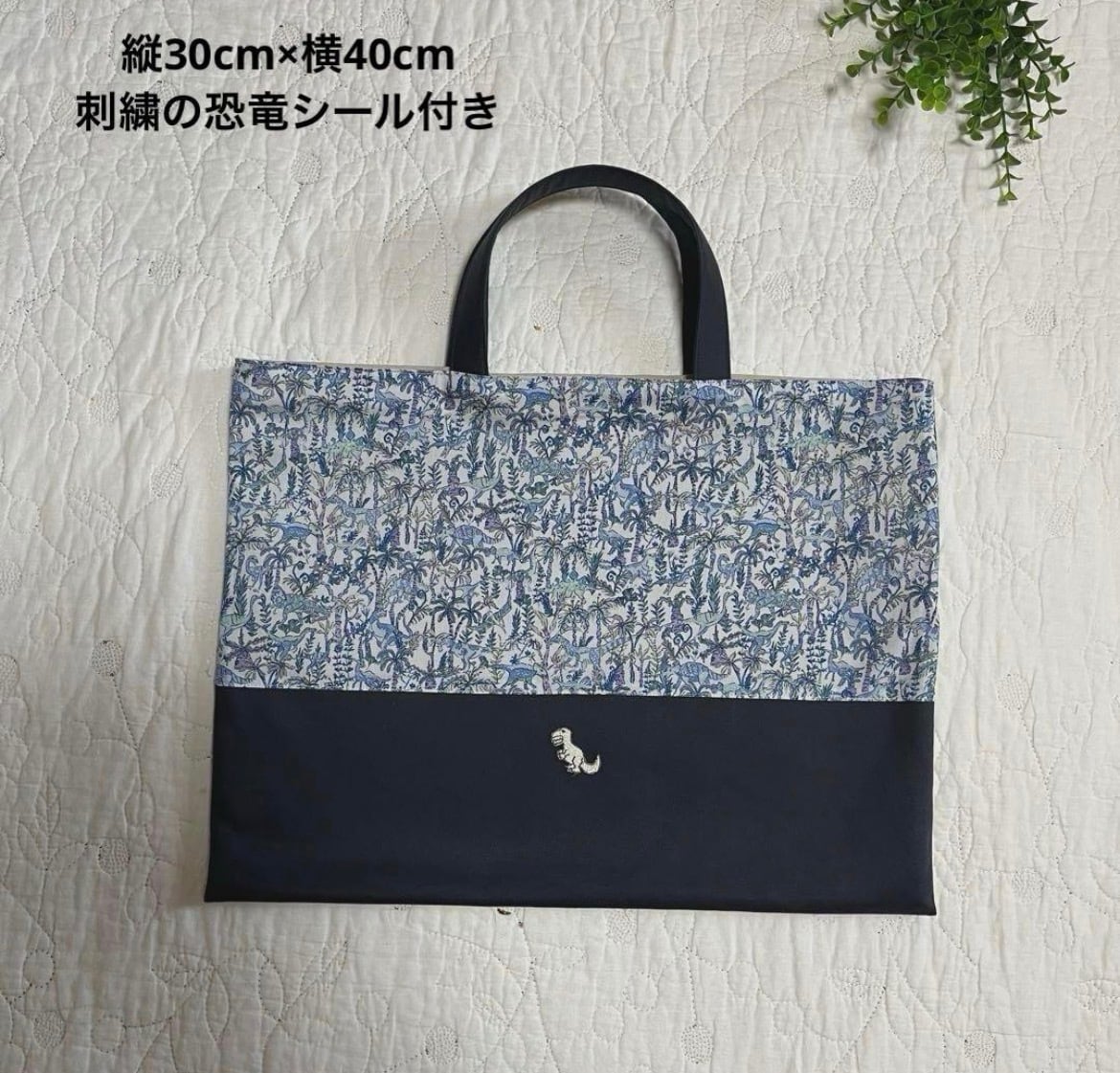 レッスンバッグ 縦 30cm 刺繍恐竜シール付き