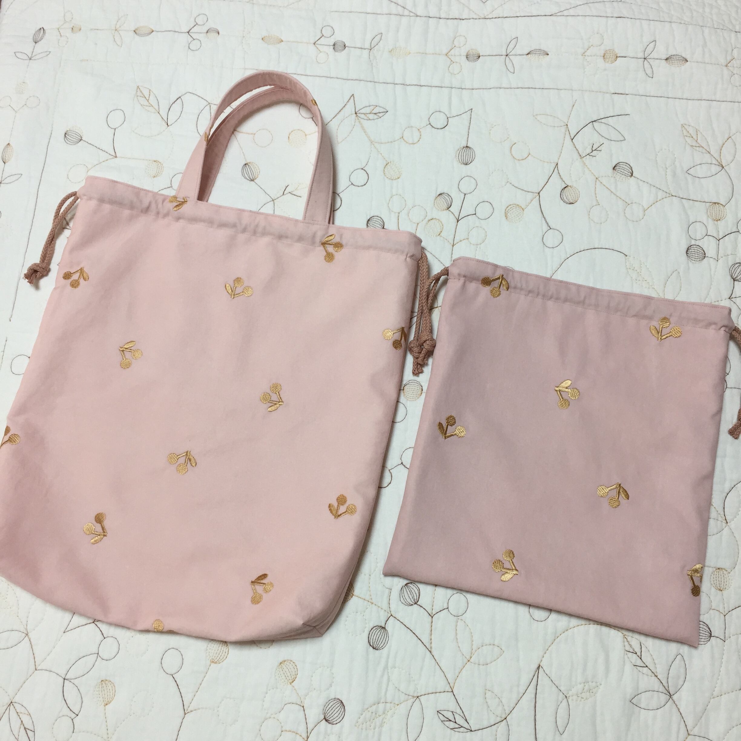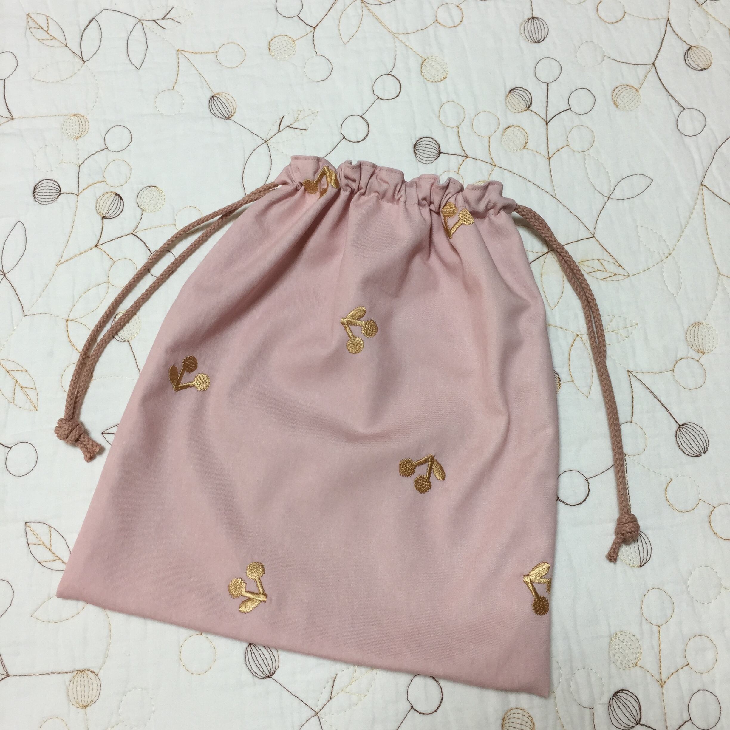 体操服入れ お着替え袋 巾着袋 給食袋 手提げバッグ さくらんぼ刺繍 コットンチェリー刺繍 ハンドメイド 入園入学準備 通園準備
