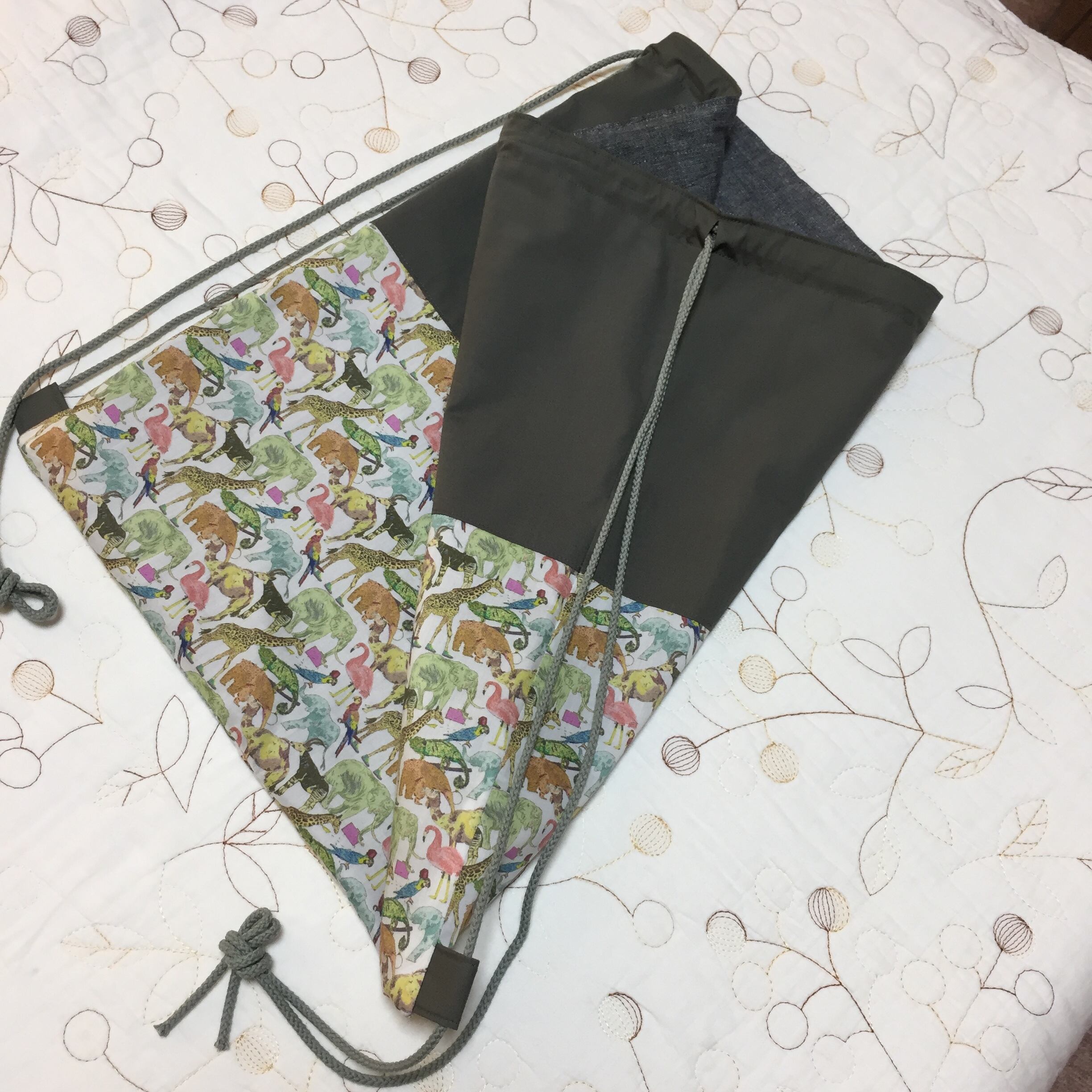 リバティタナローン キューフォーザズーと海のブロードで大きめナップサックを作成しました