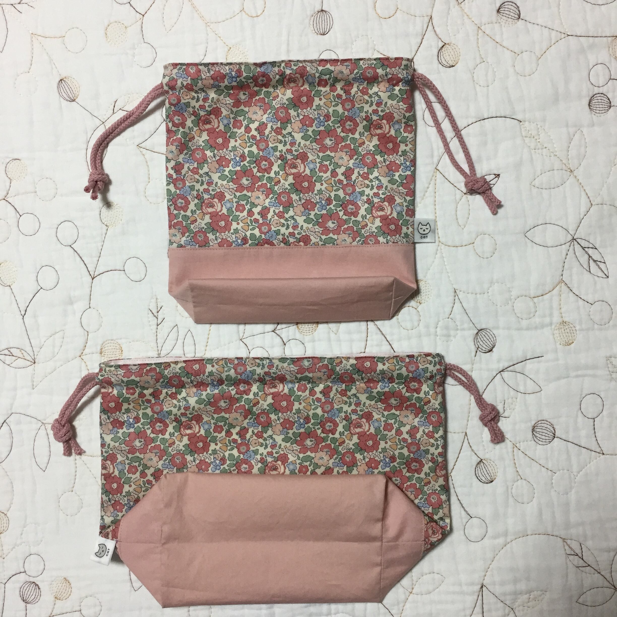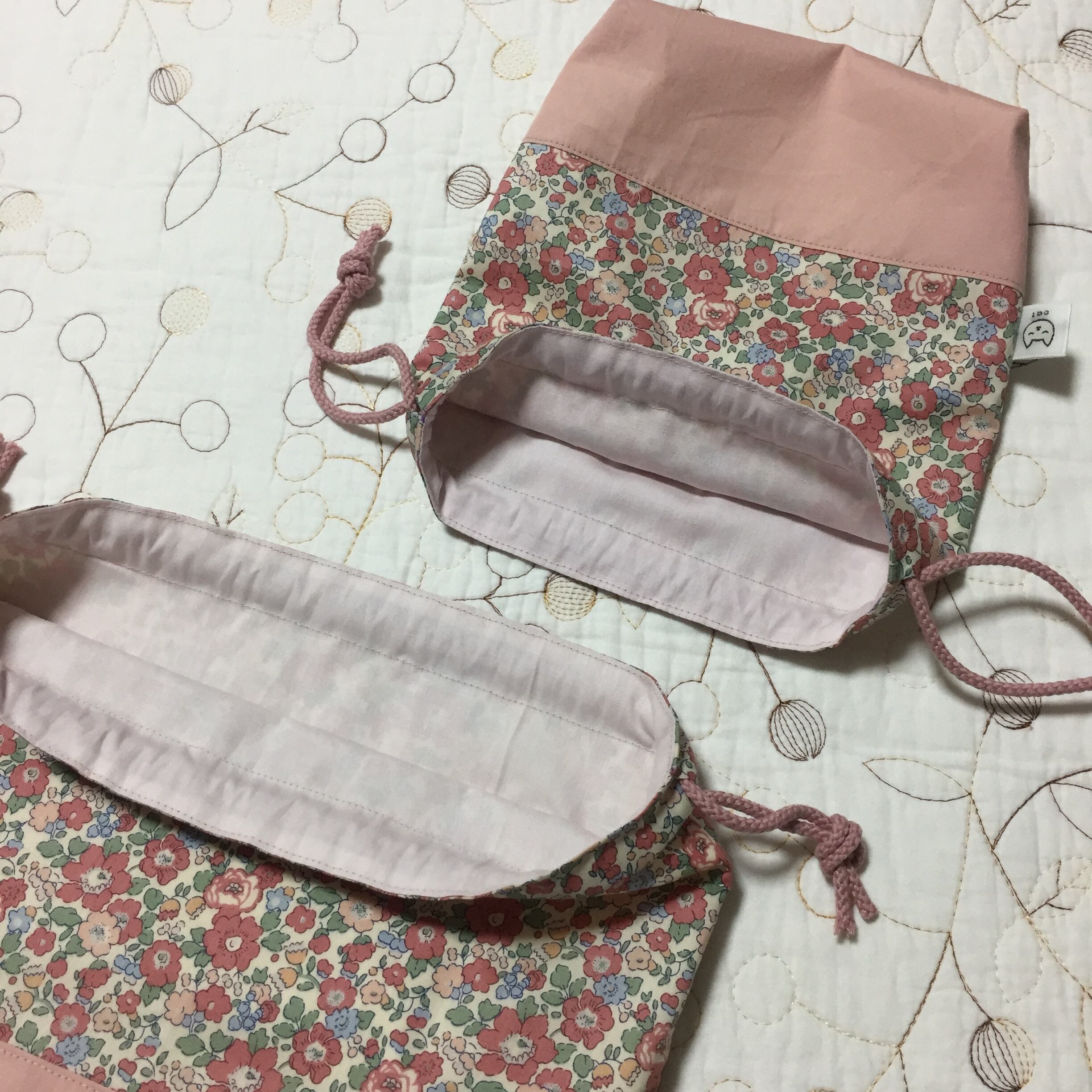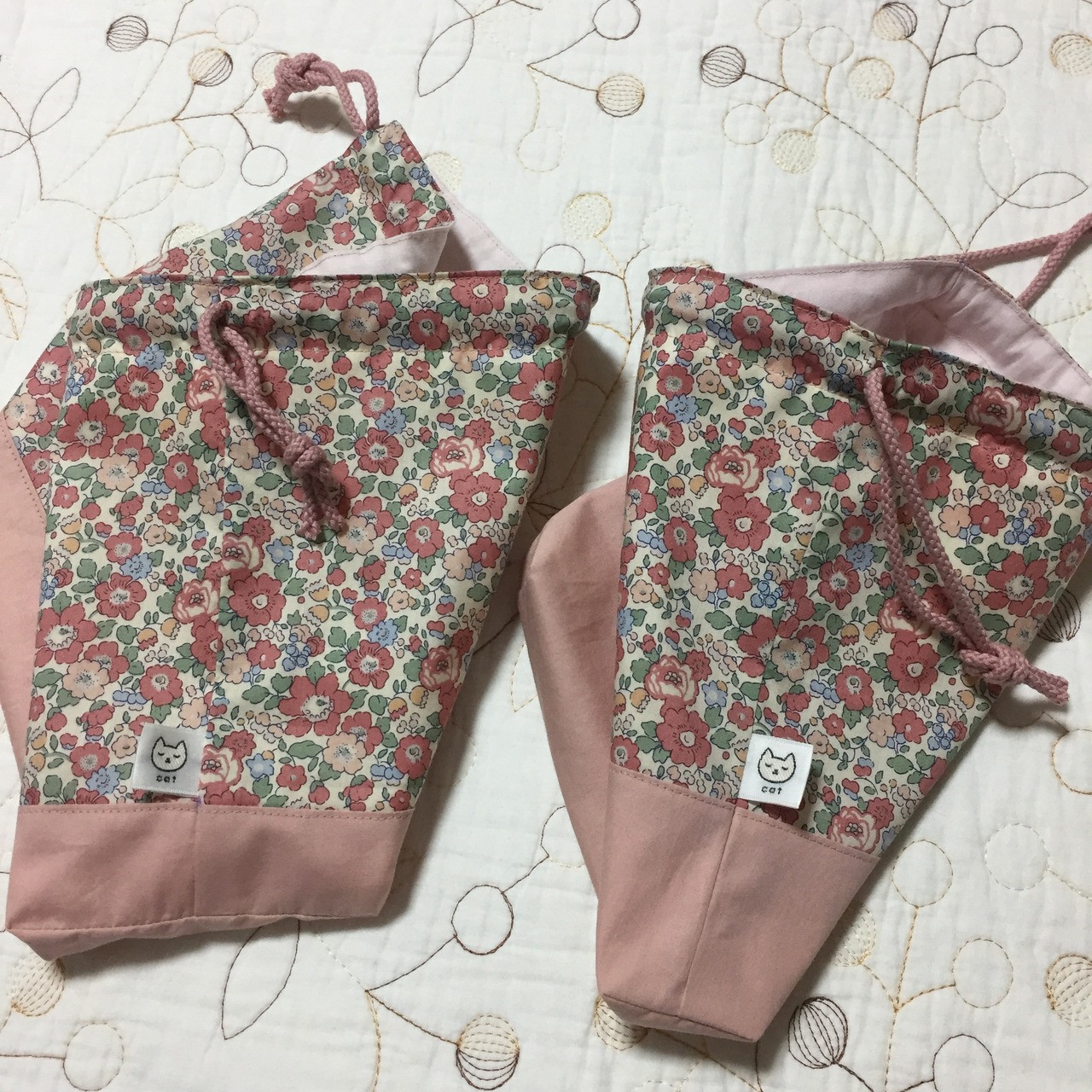リバティお弁当袋 コップ袋 2点 ベッツィ ハンドメイド 給食袋 おむつ入れ 入園入学準備グッズ