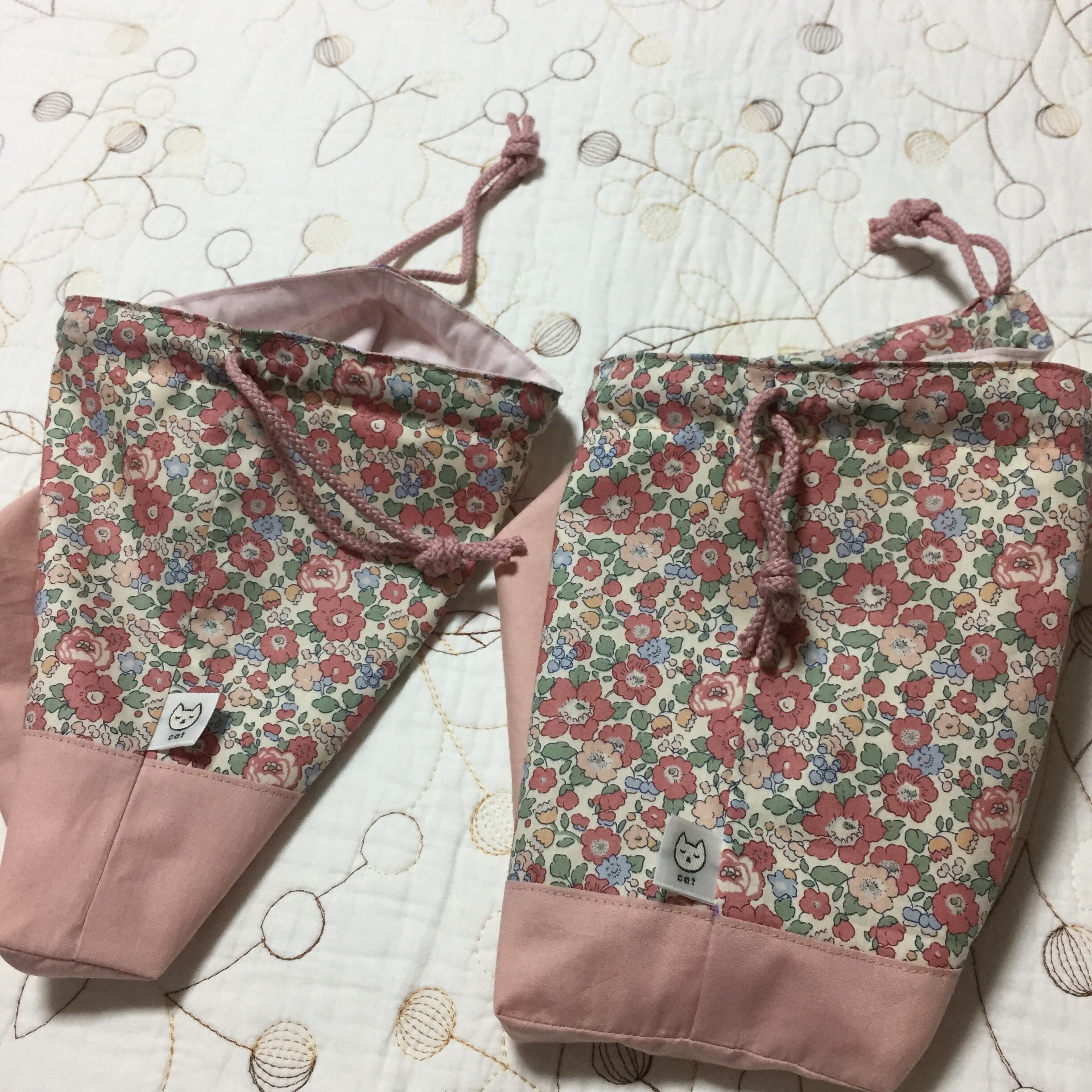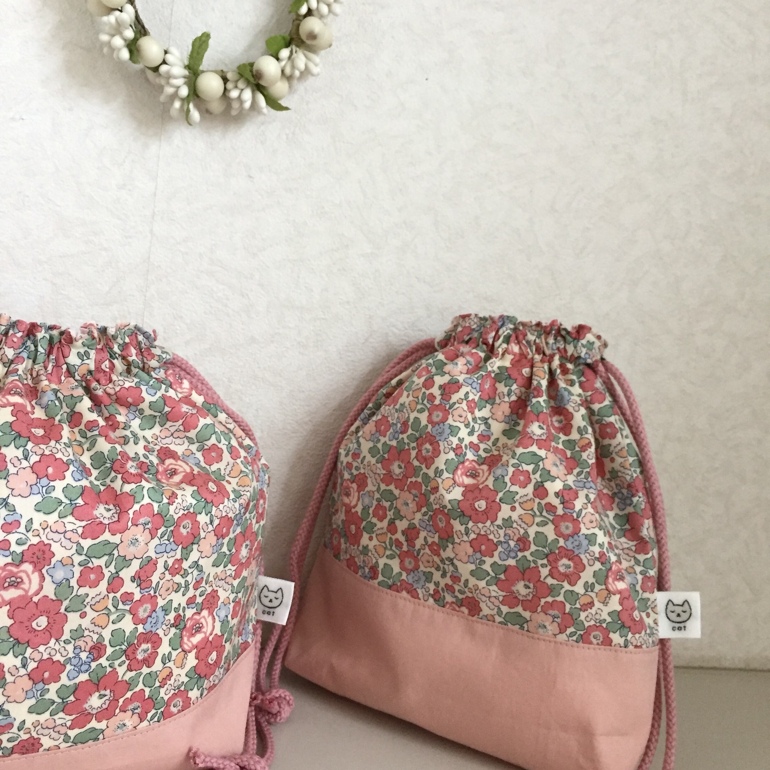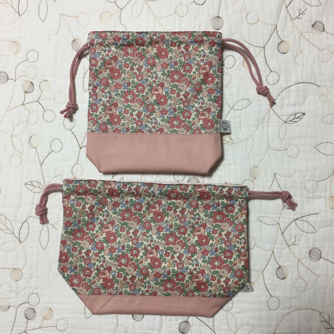 リバティお弁当袋 コップ袋 2点 ベッツィ ハンドメイド 給食袋 おむつ入れ 入園入学準備グッズ