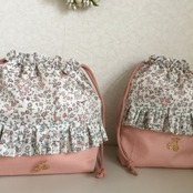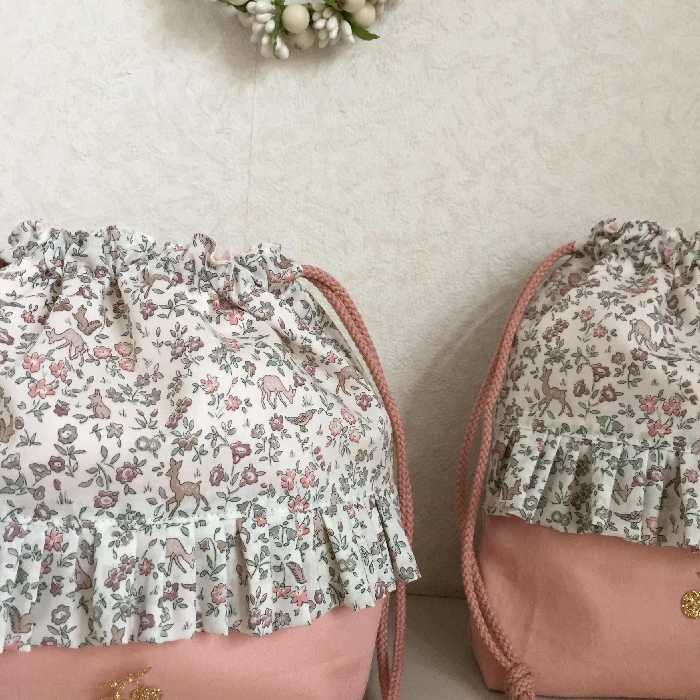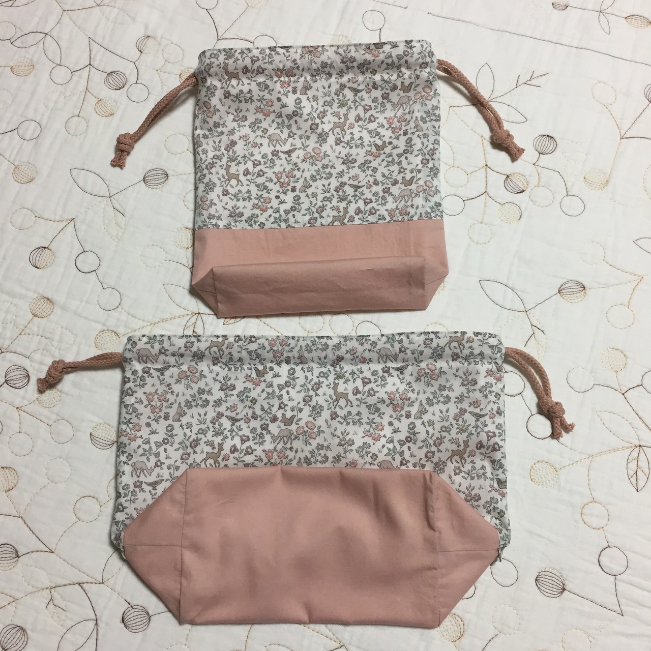 ハンドメイド お弁当袋コップ袋2点 リバティ メドウテイルズ 給食袋 入園入学グッズ