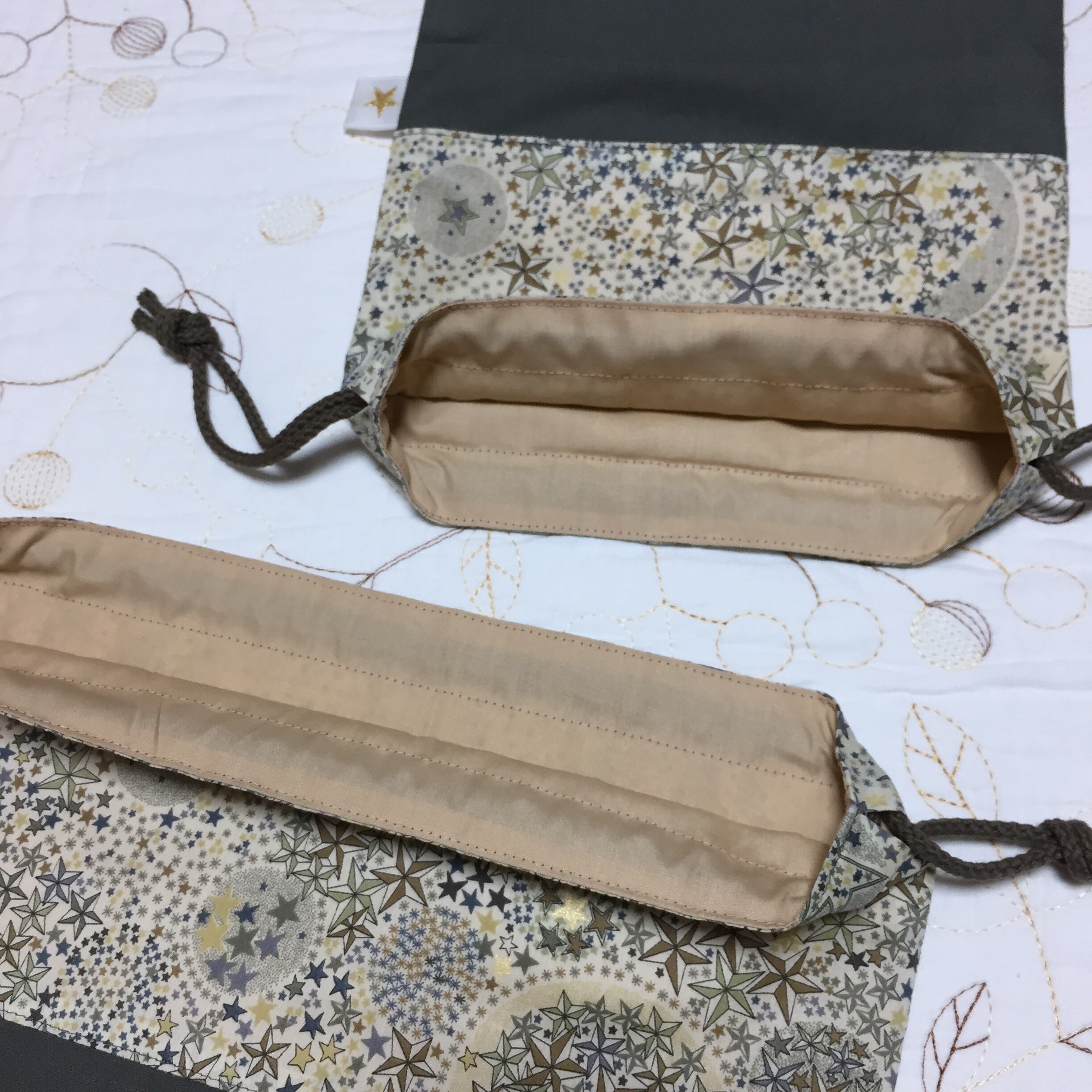 海のブロード グレイッシュカーキ(C&S)でお弁当袋 コップ袋を作製しました。