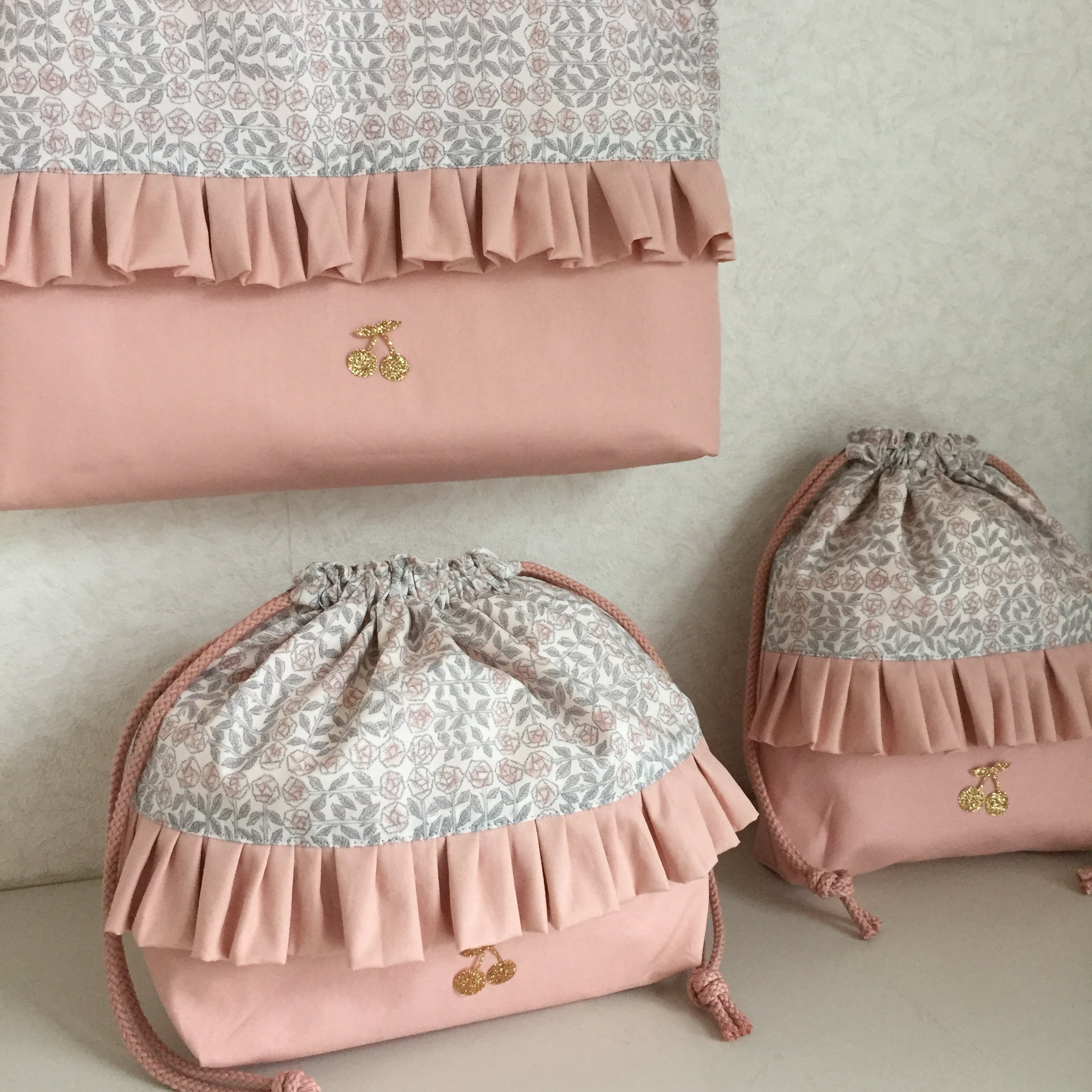 リバティ お着替え袋 お弁当袋 コップ袋 3点 スリーピングローズ 入園入学準備グッズ 幼稚園準備 保育園グッズ