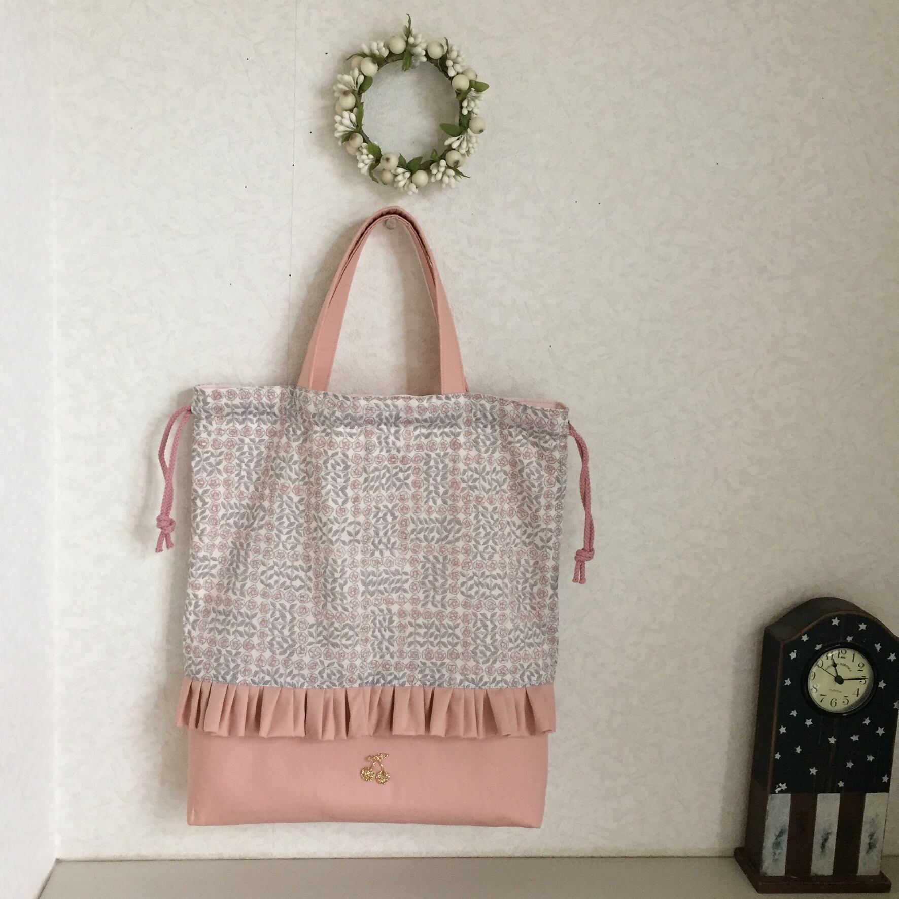 持ち手付き巾着袋 縦 35cm 片面フリル付き