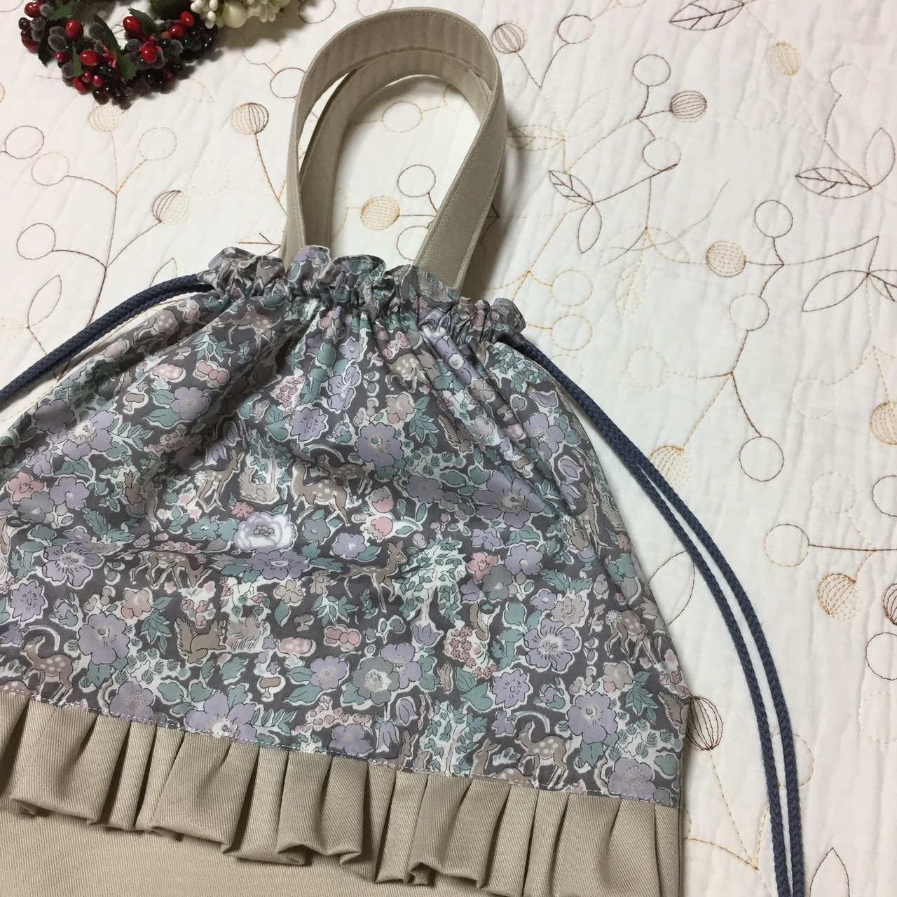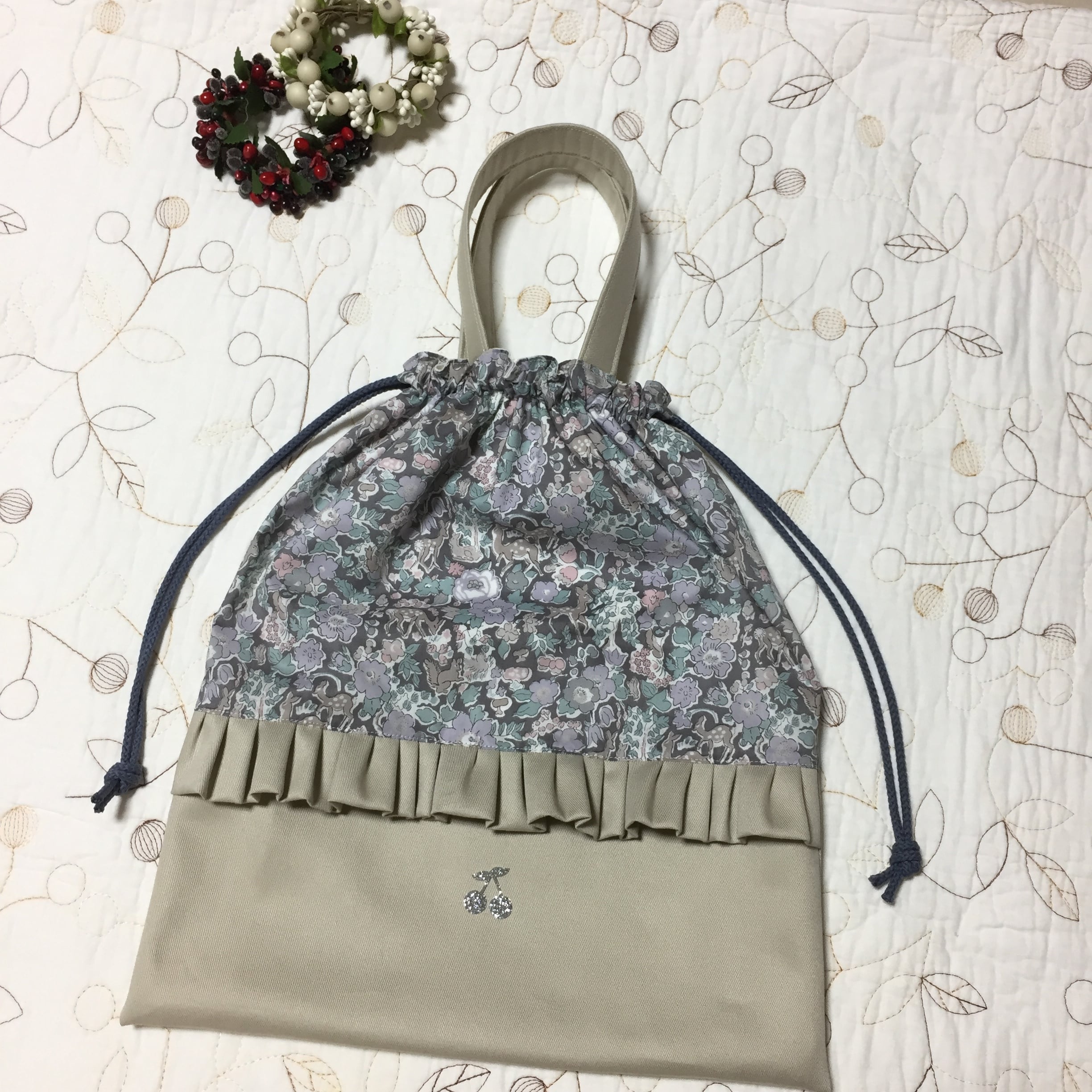 持ち手付き巾着 縦 35cm 片面フリル付き