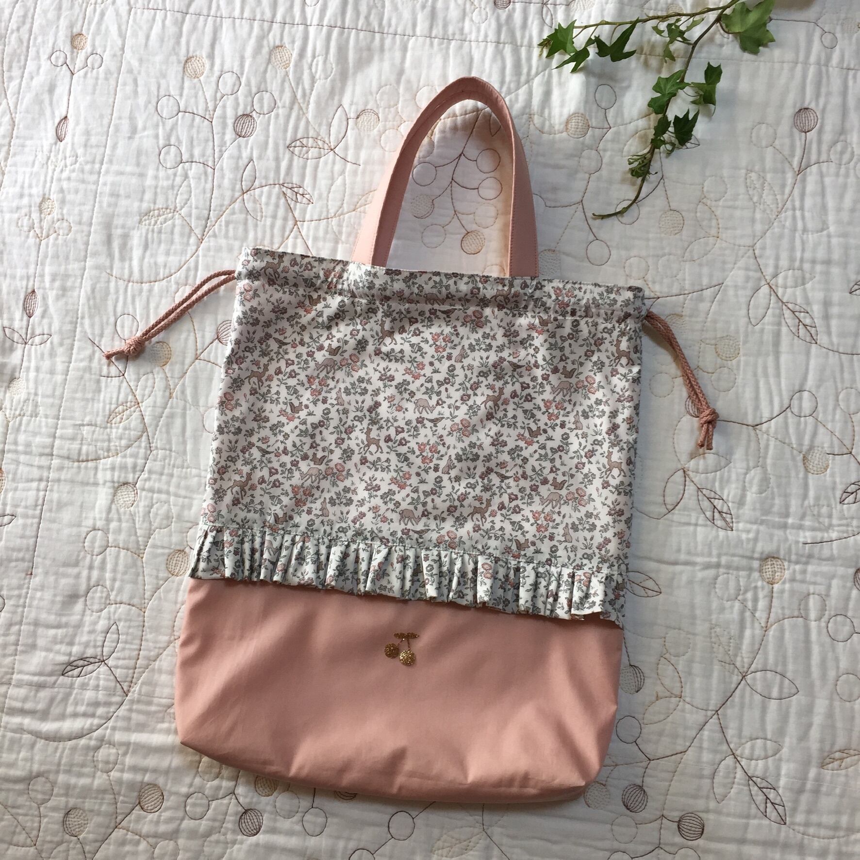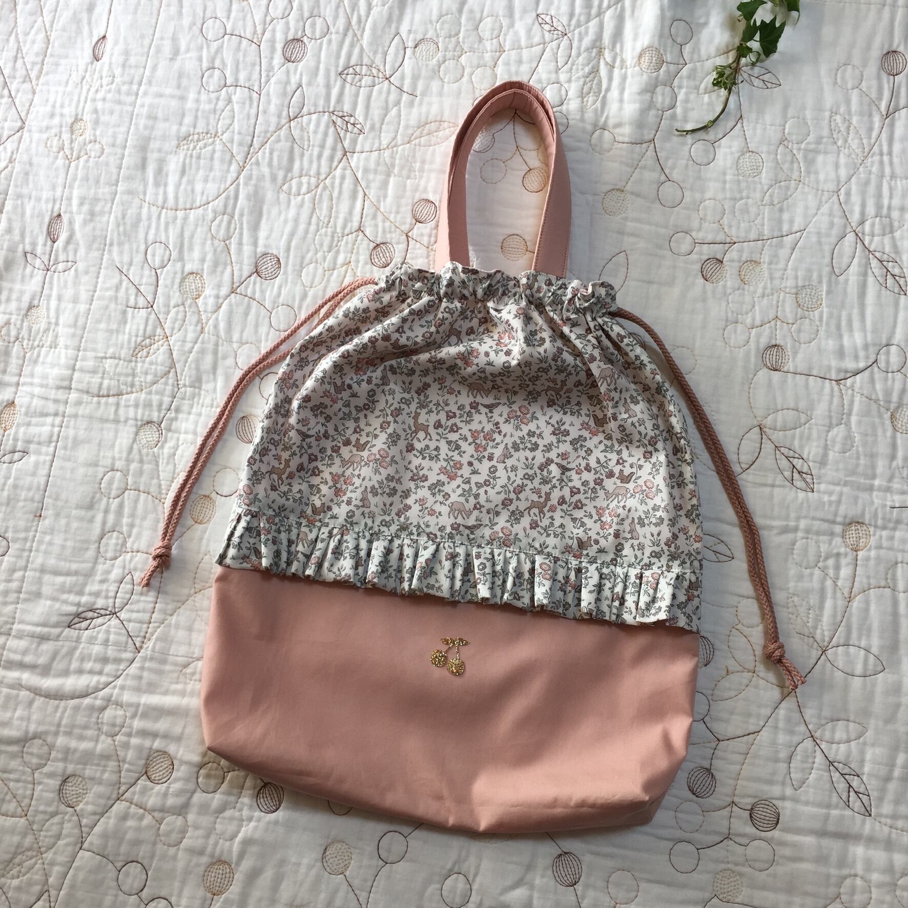 巾着袋(給食袋にも) 縦 30cm 片面フリル付き
