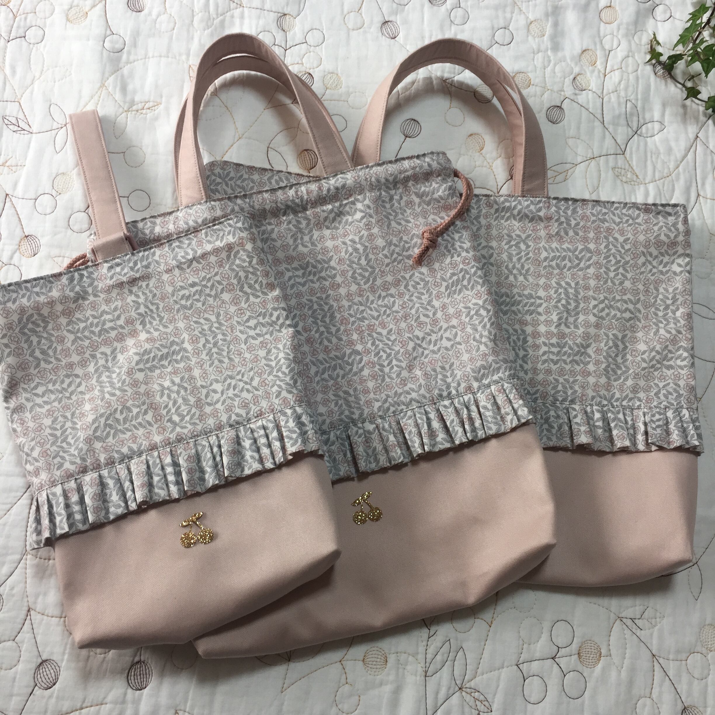 レッスンバッグ 上履き入れ お着替え袋 3点セット スリーピングローズ ハンドメイド