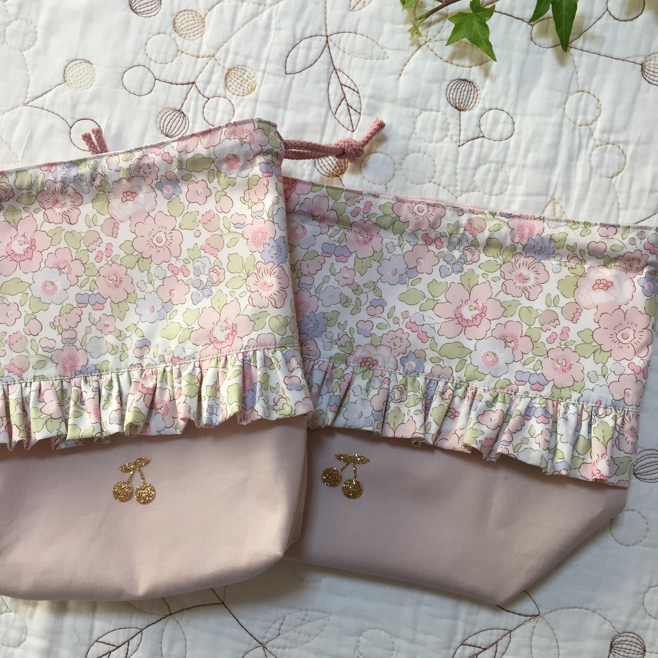 お弁当袋 コップ袋 ハンドメイド ベッツィ ピンクラベンダー 入園入学準備グッズ 幼稚園グッズ