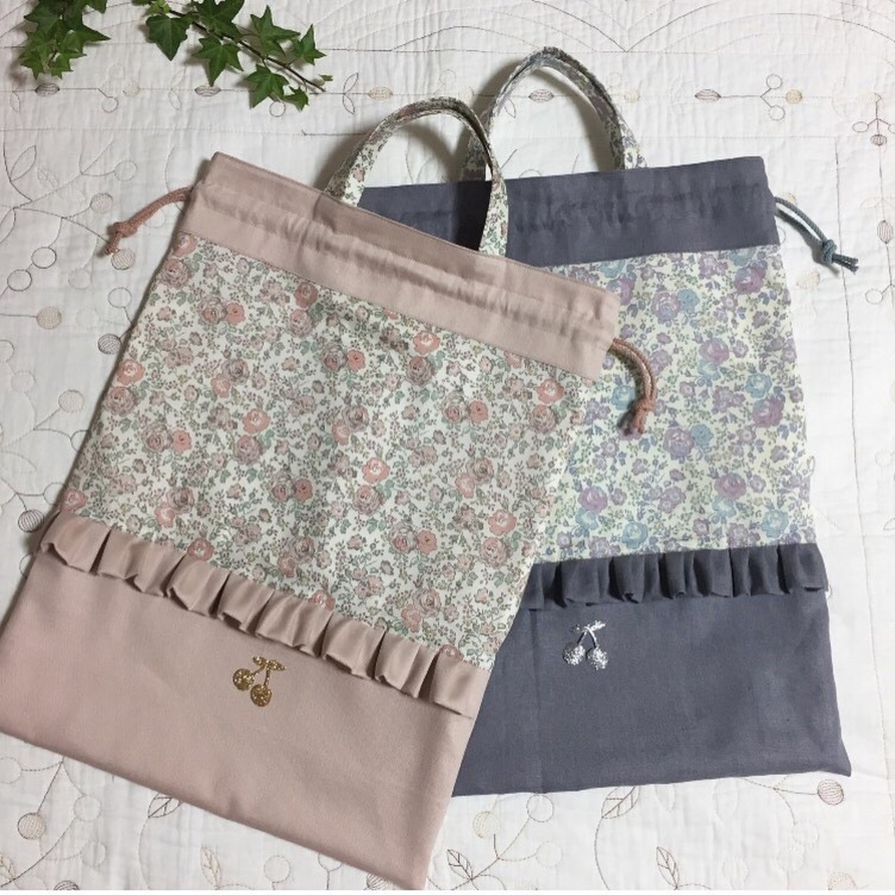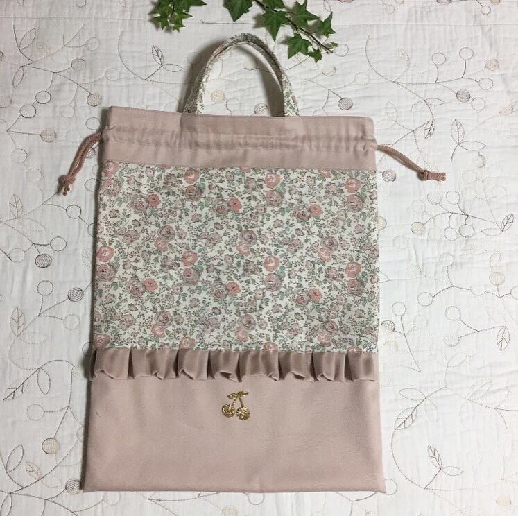 大きめ (縦45cm×横35cm) お着替え袋・体操服入れ・手提げ袋 ハンドメイド リバティフェリシテ 入園入学準備