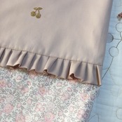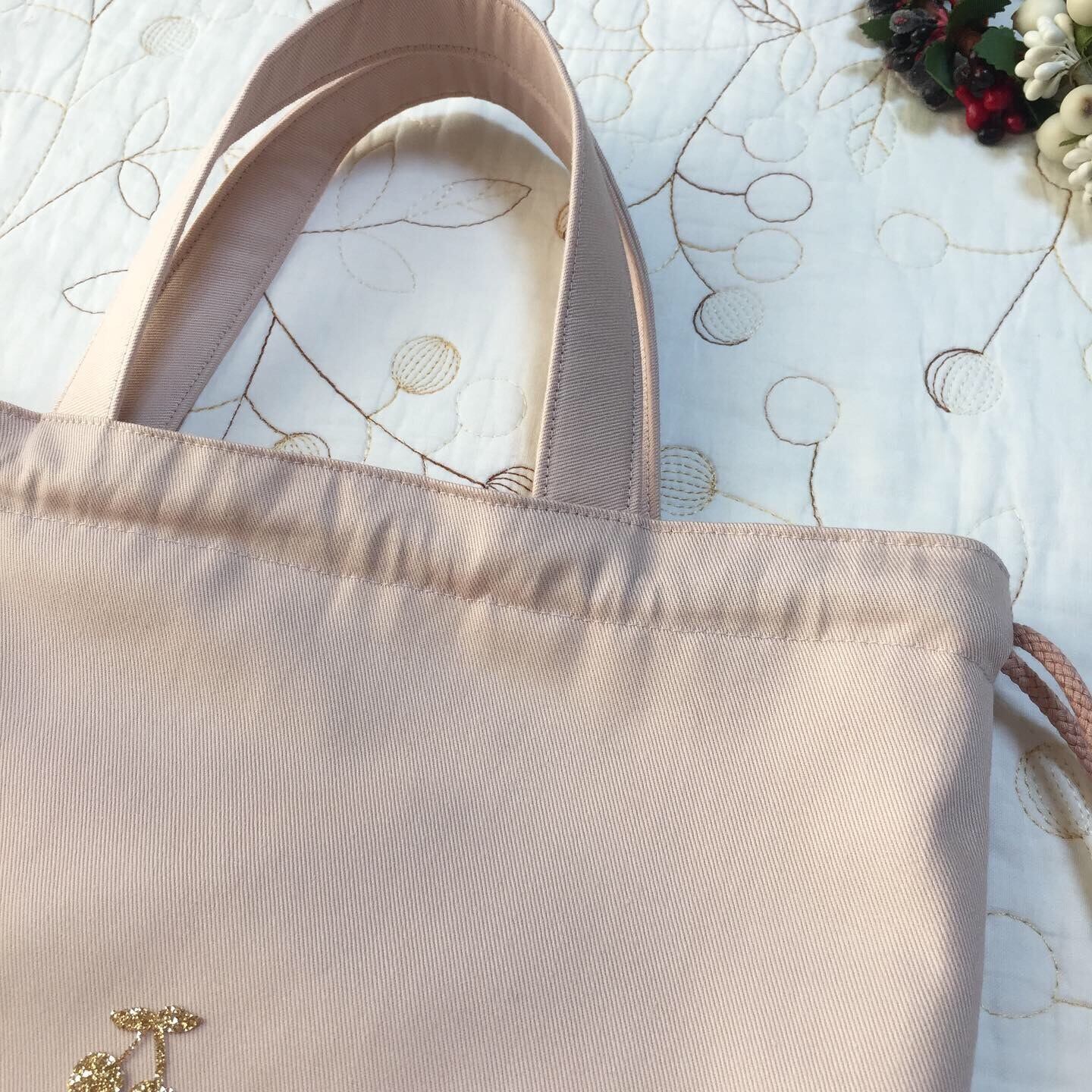 タナローン フェリシテ プティペールピンク(チェックアンドストライプ)とツイル くすみのピンクで巾着袋を作製しました。
