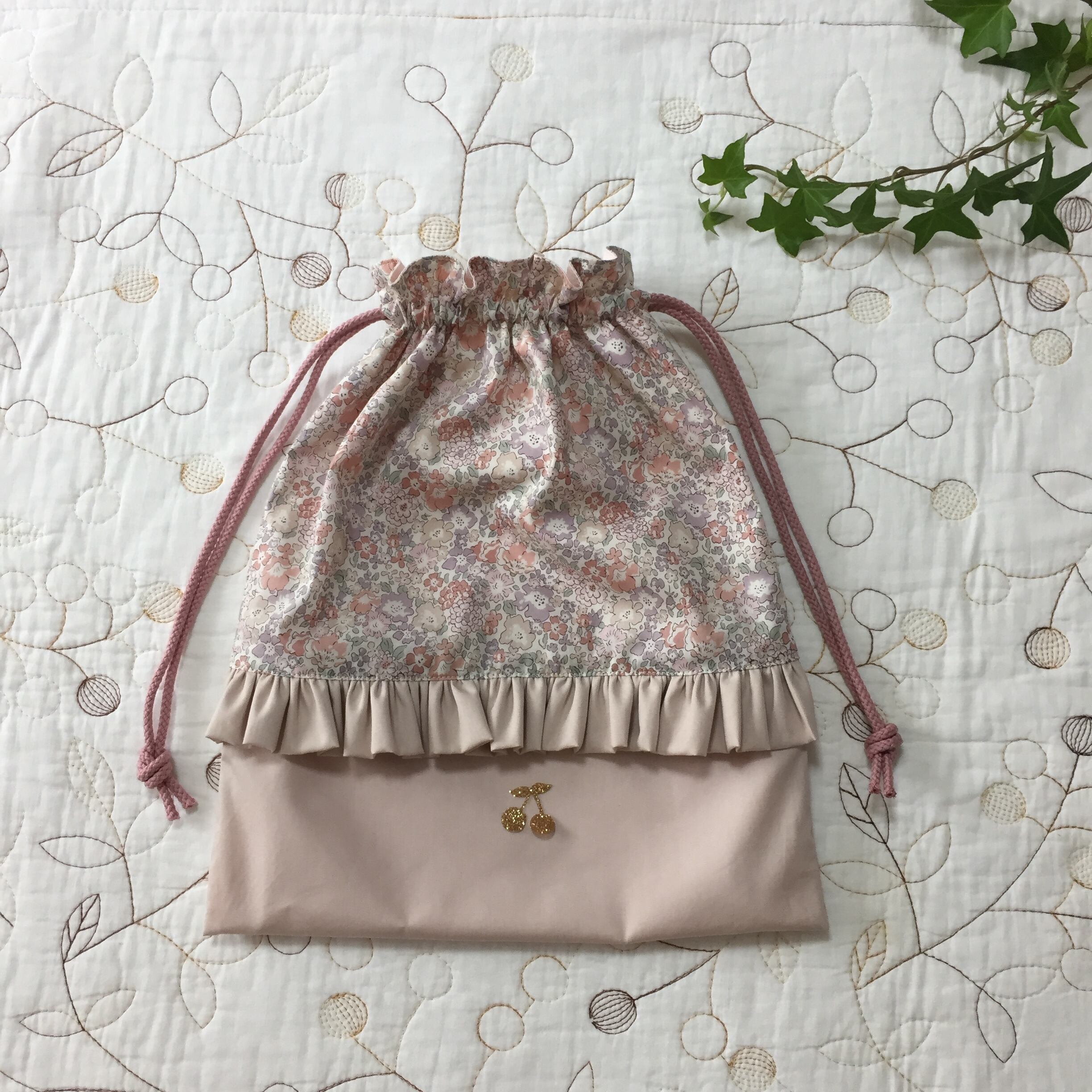 リバティ 巾着 (給食袋 お着替え袋) ミシェル ちびちびきっちん限定 ハンドメイド 入園入学