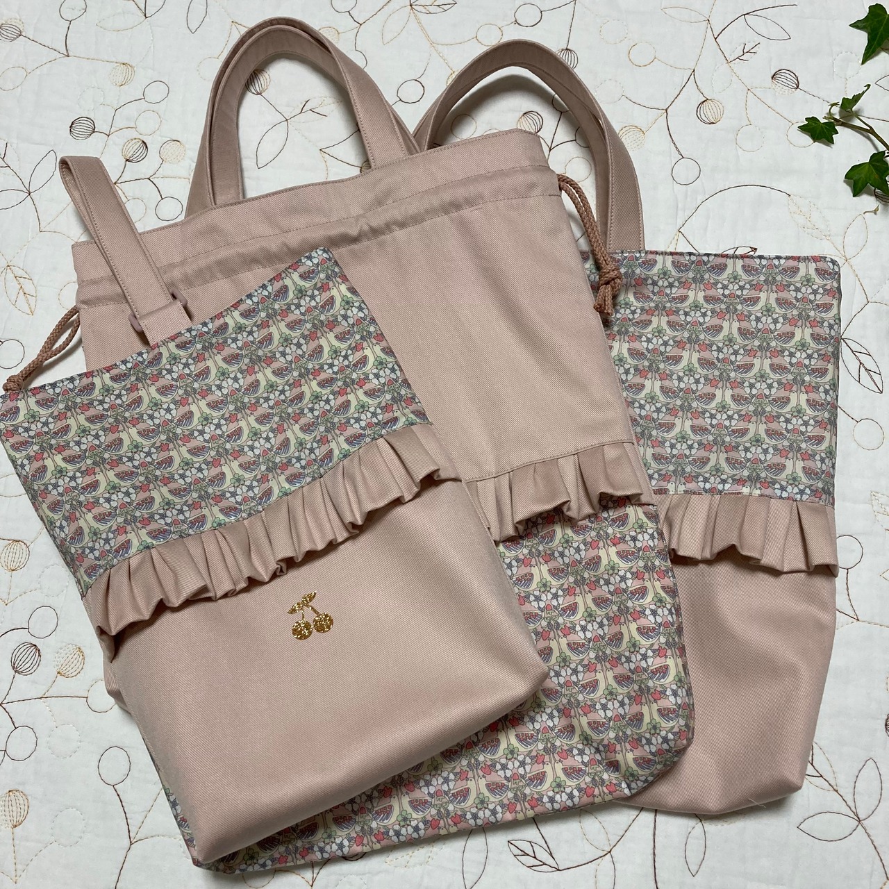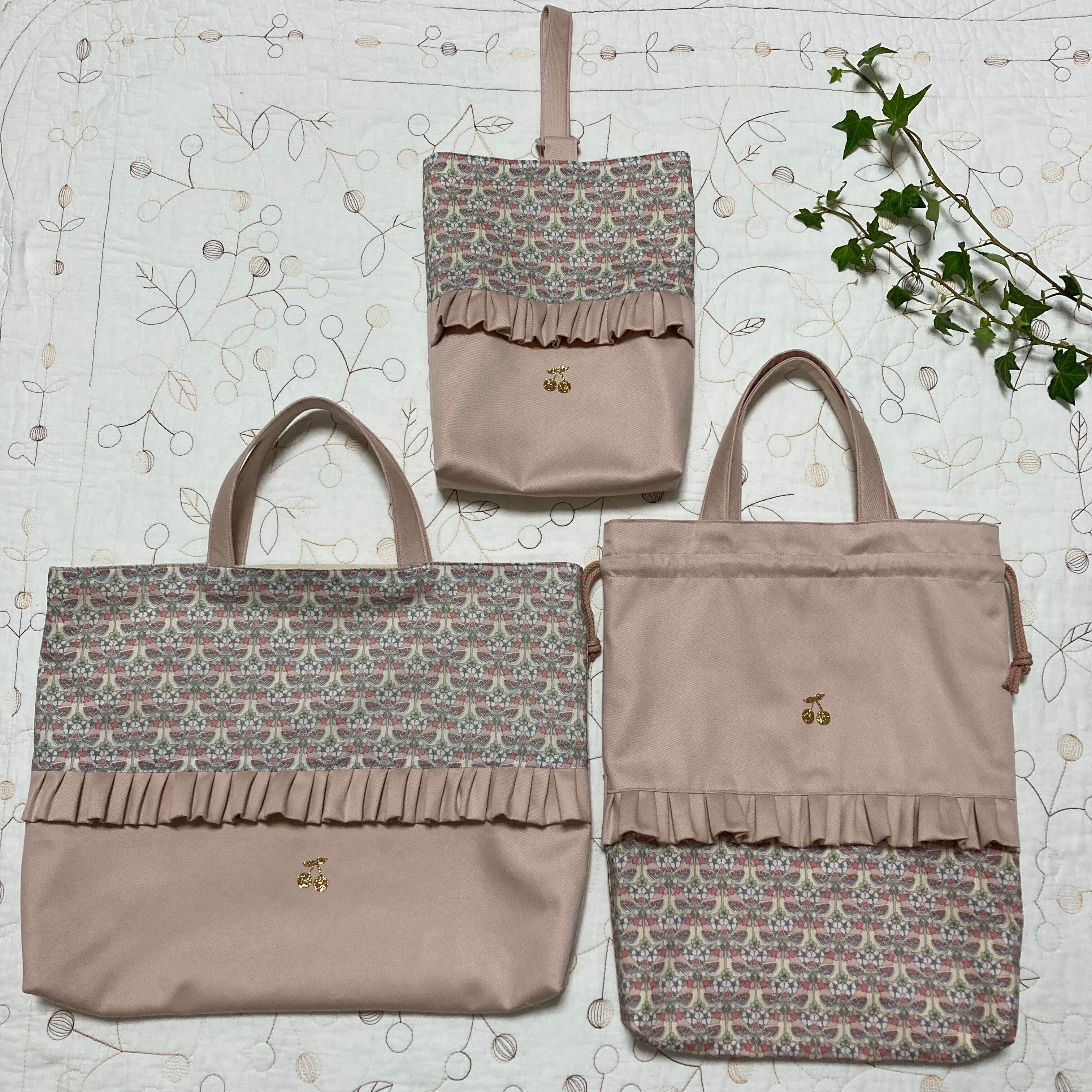 ハンドメイド レッスンバッグ 上履き入れ 体操服入れ 3点セット リバティ ストロベリーフィースト 入園入学グッズ