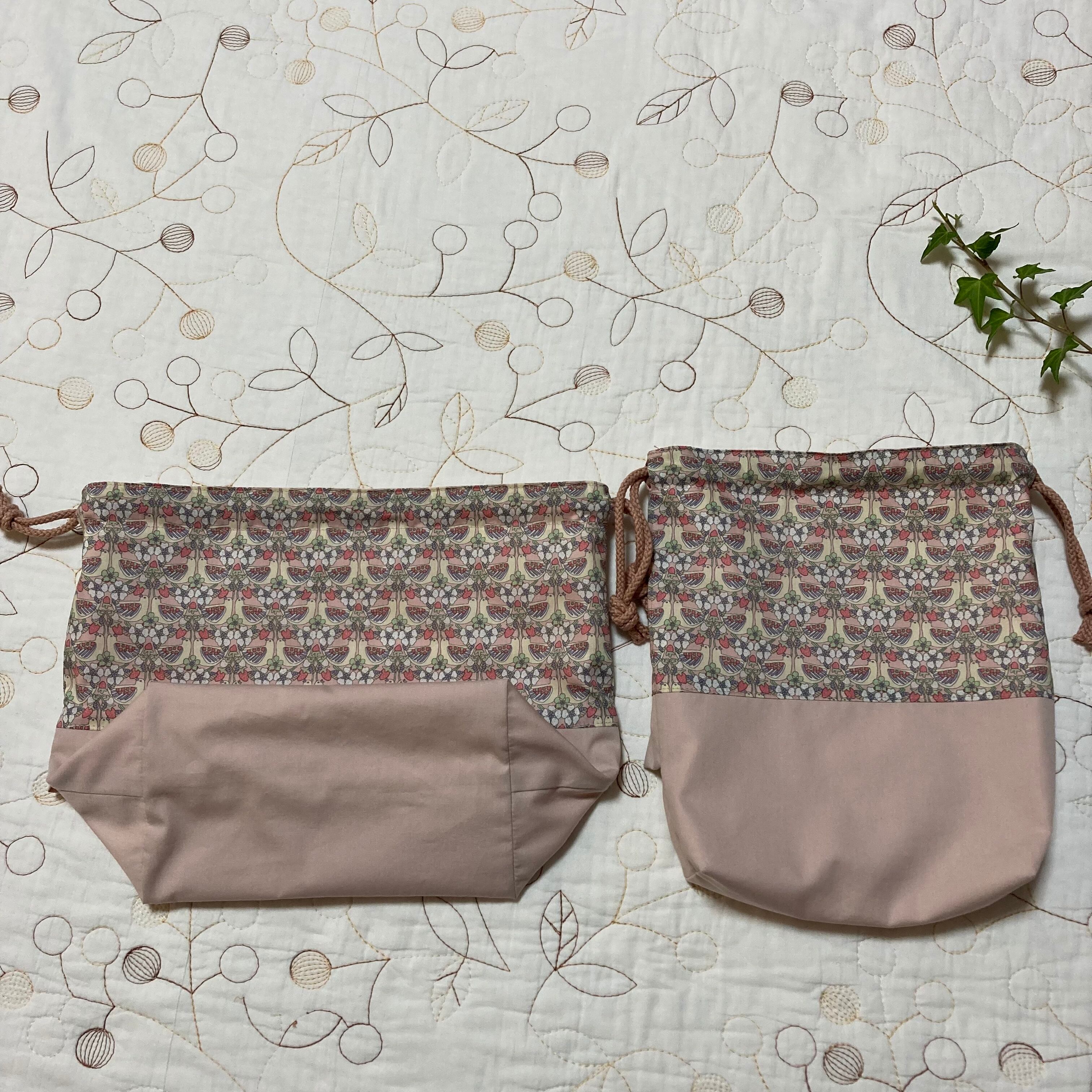ハンドメイド お弁当袋 コップ袋 2点セット リバティ ストロベリーフィースト 入園入学準備グッズ チェックアンドストライプ