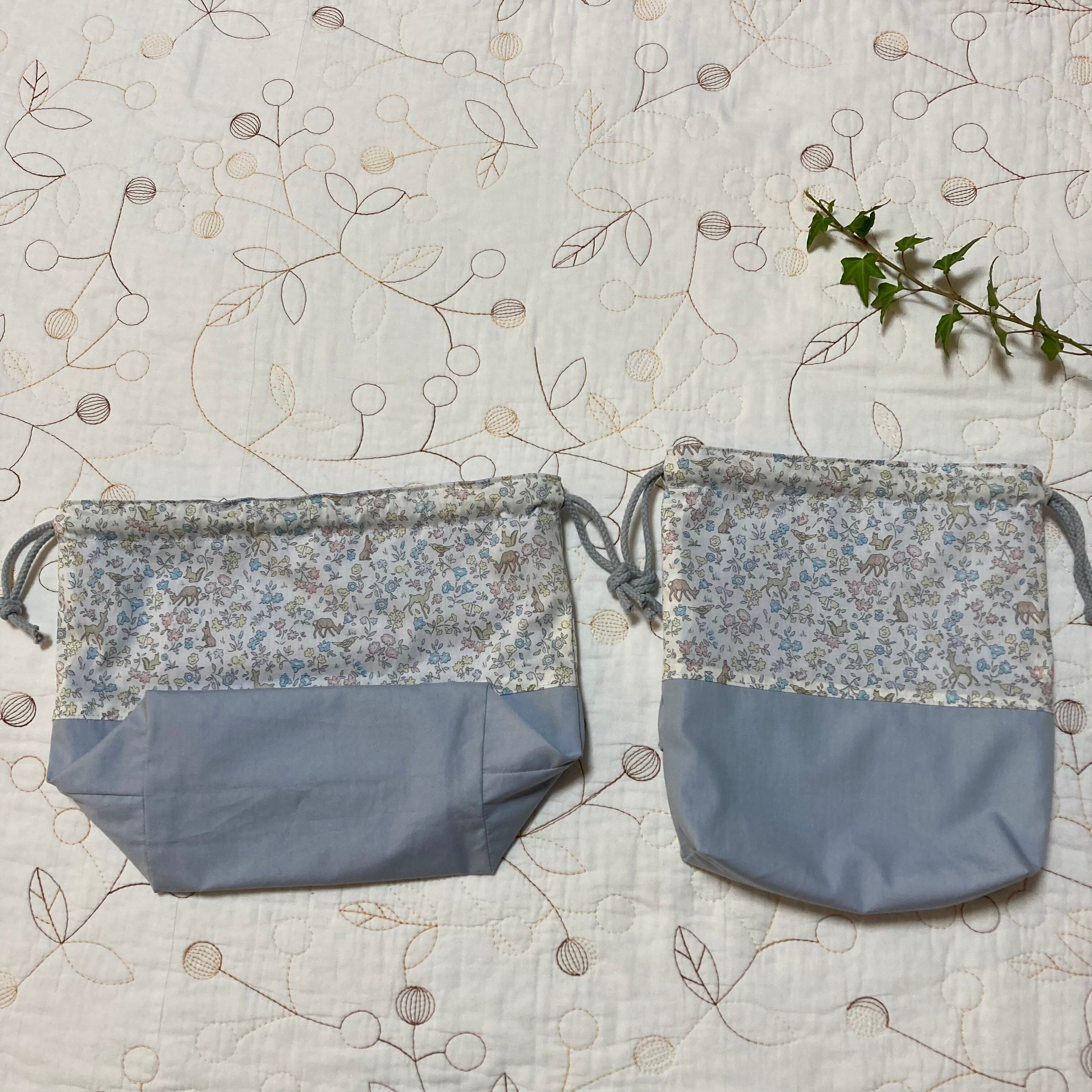 リバティ お弁当袋 コップ袋 2点セット メドウテイルズ パステルカラー入園入学グッズ ハンドメイド チェックアンドストライプ