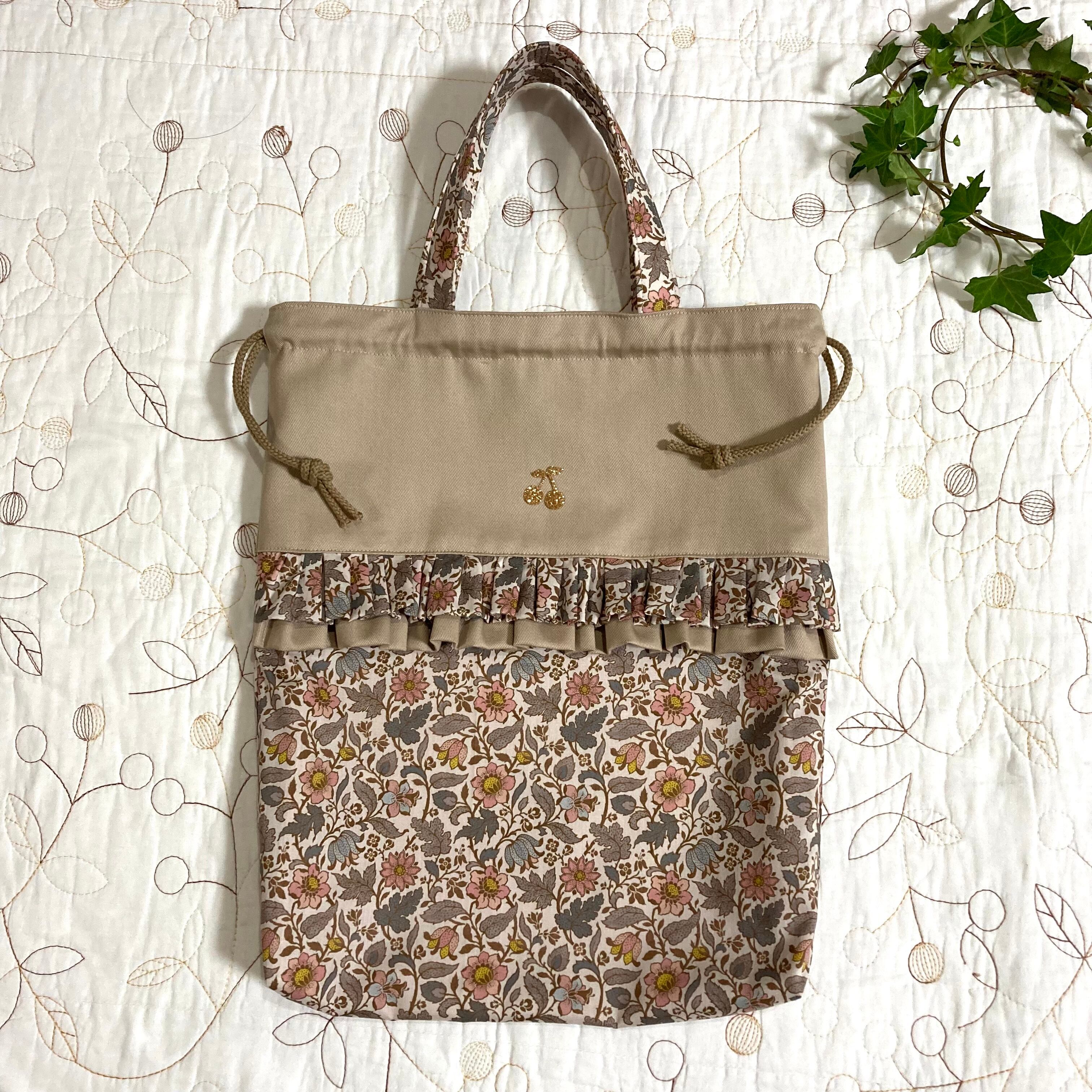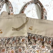 *リバティ タナローン エメリーウォーカー雅姫さんコラボ(ホビーラホビーレ )とツイル ライトベージュで巾着袋を作製しました。