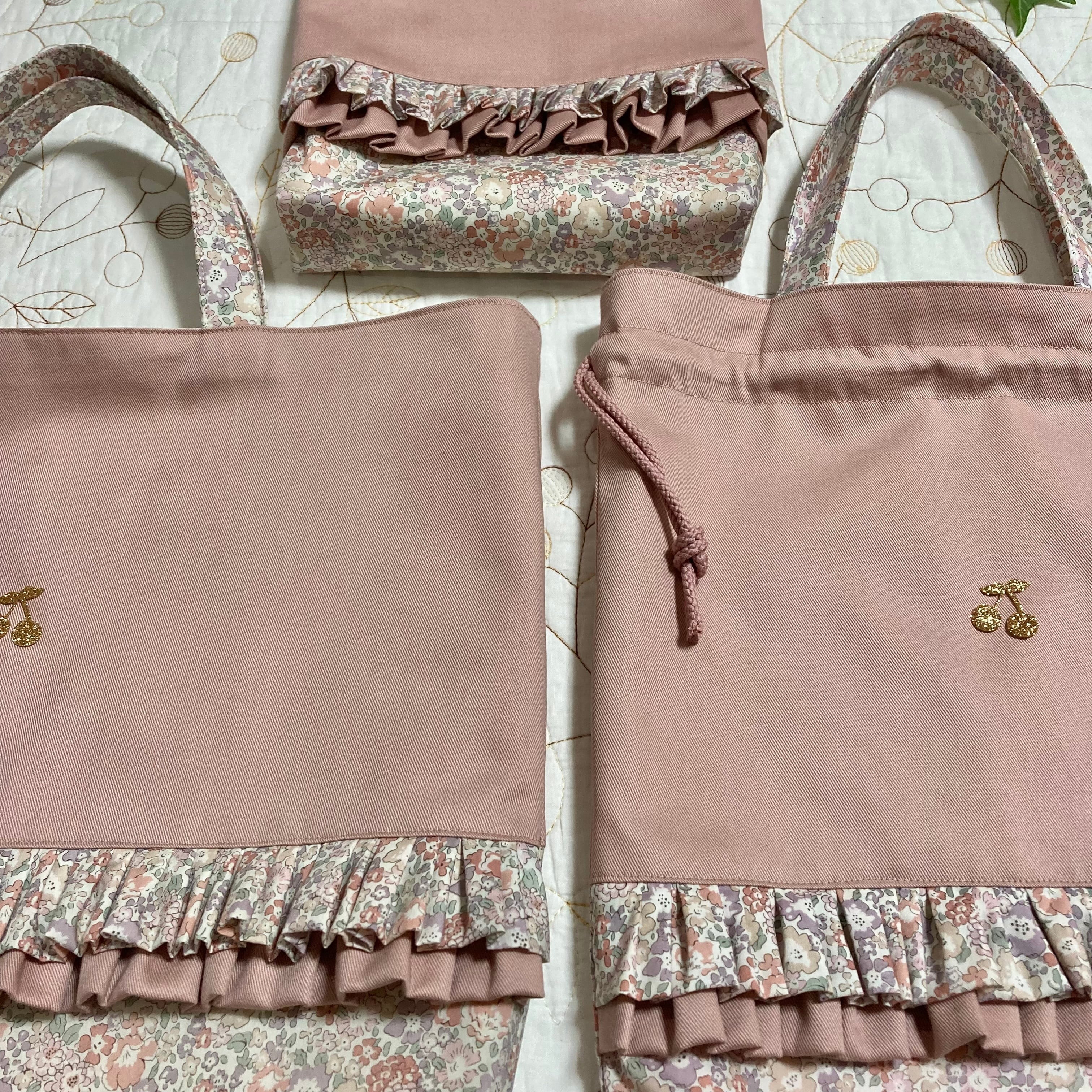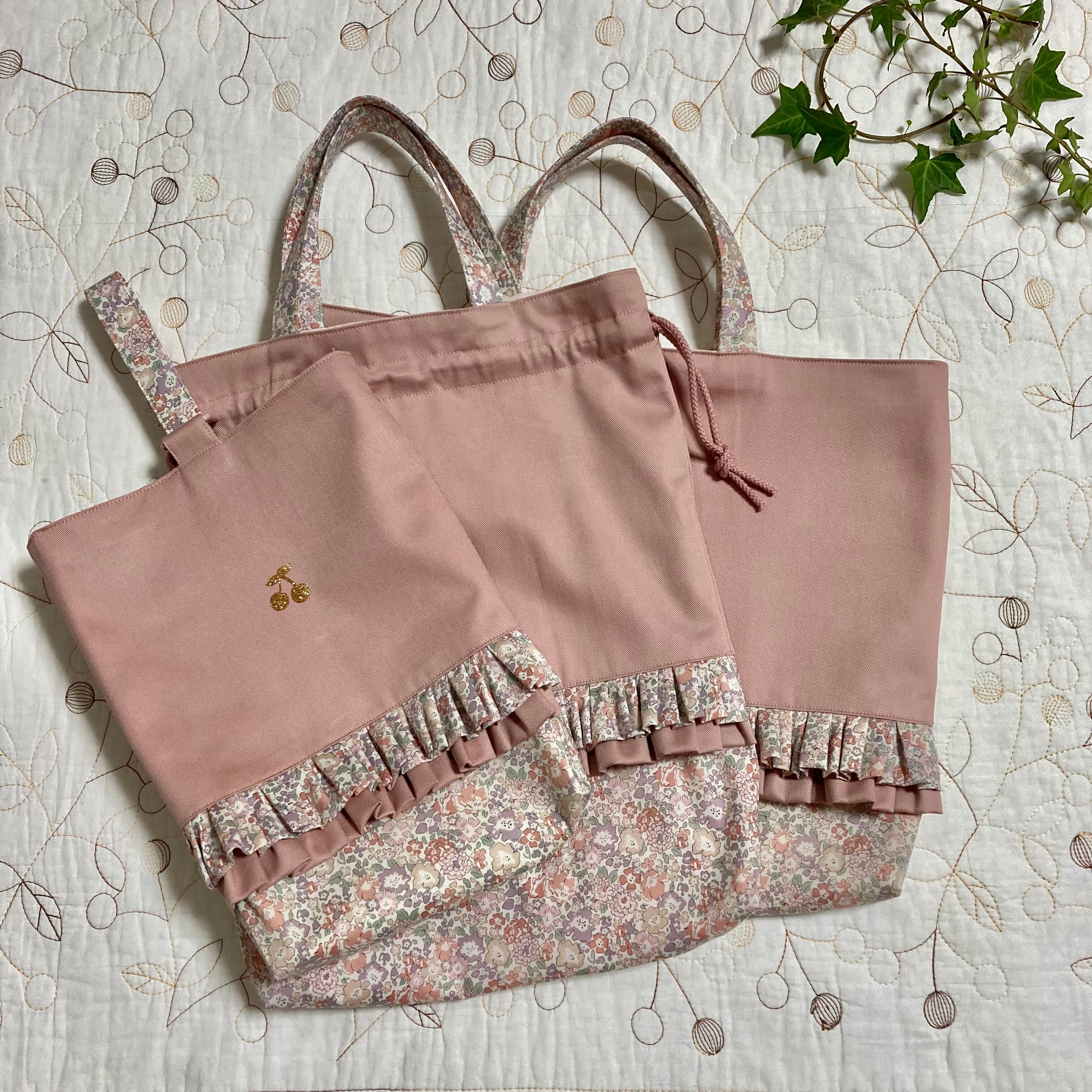 レッスンバッグ 上靴袋 お着替袋 3点 リバティ ミシェル パールベージュ ハンドメイド 入園入学グッズ
