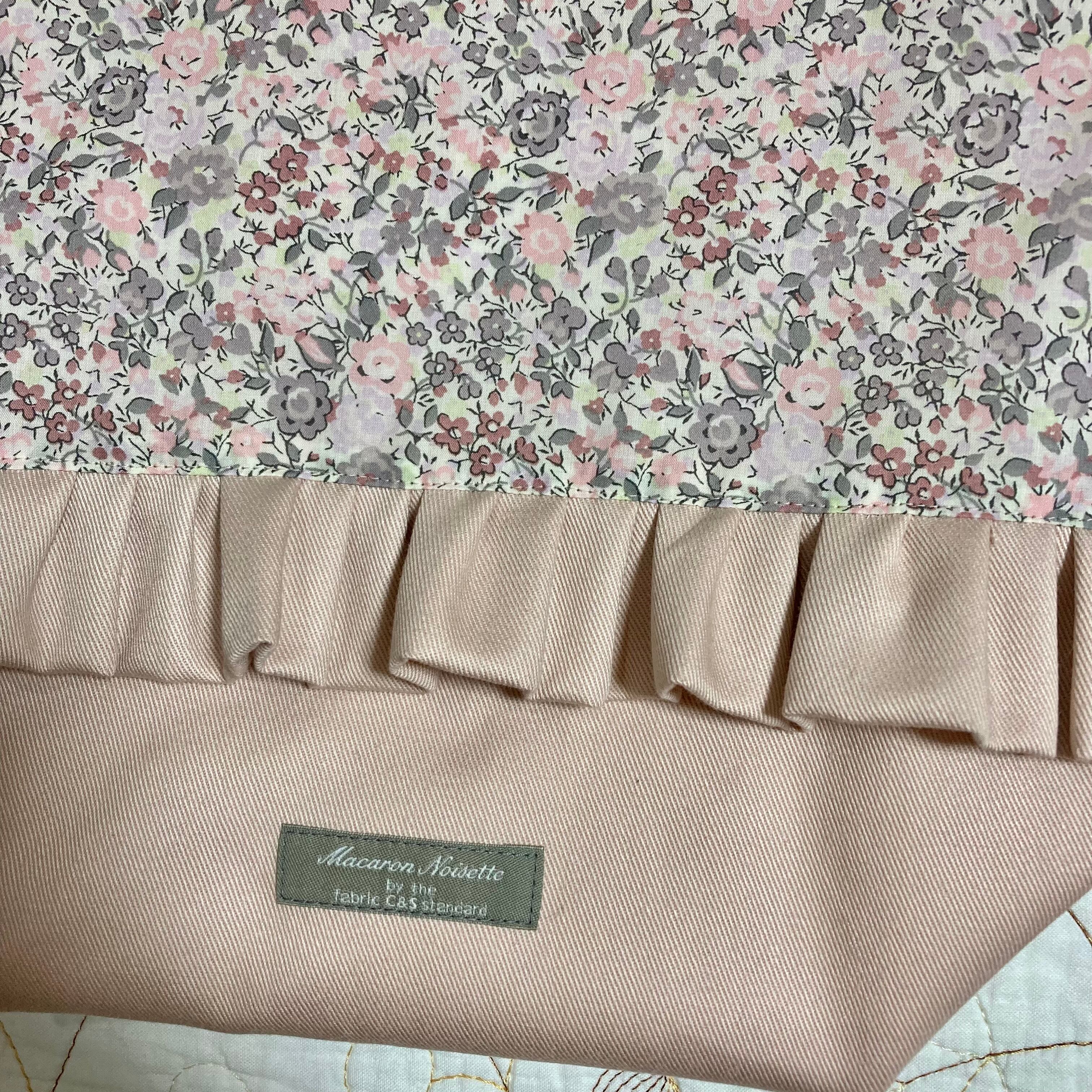 リバティ タナローン エマアンドジョージーナ(輸入リバティ)とツイルくすみのピンクで巾着袋を作製しました。