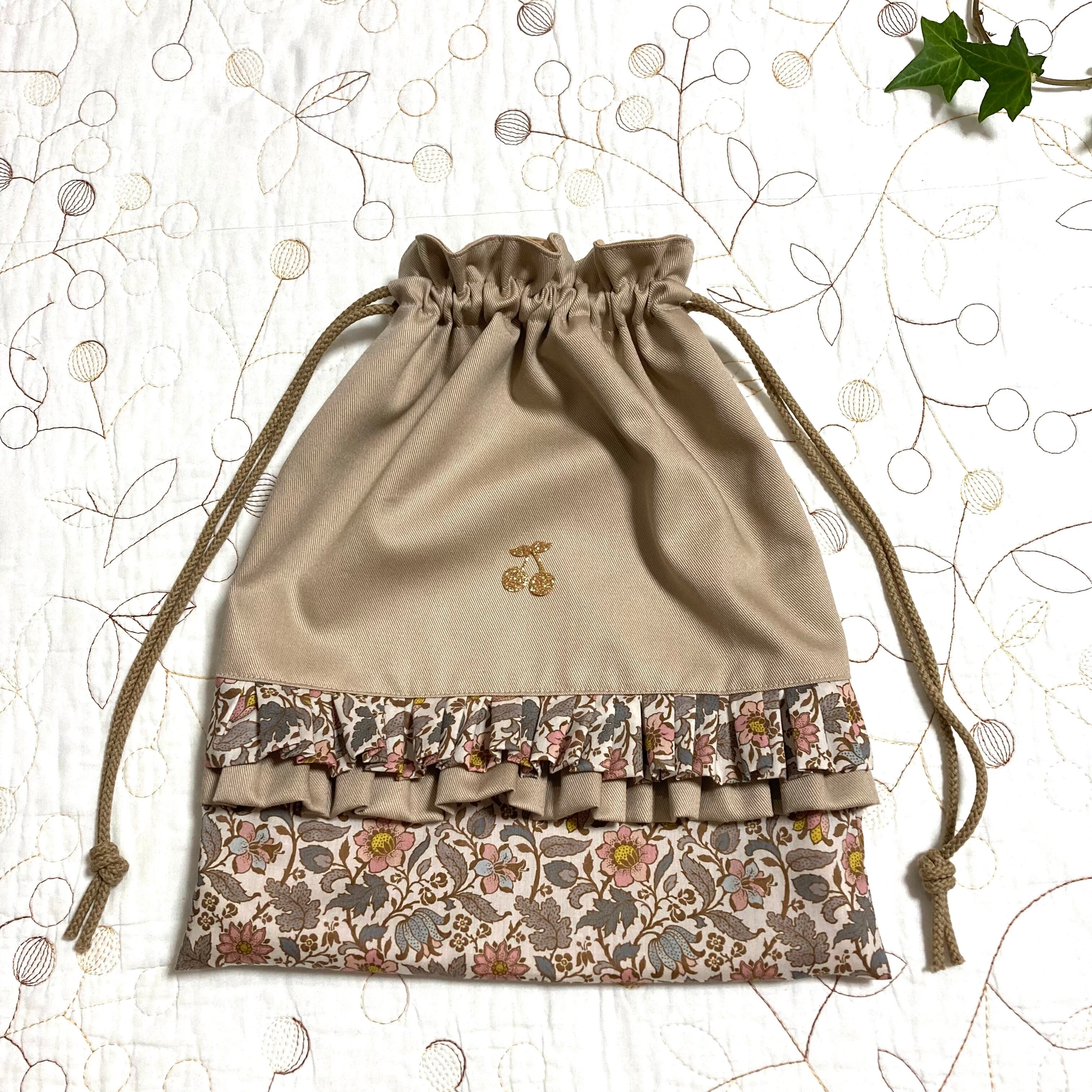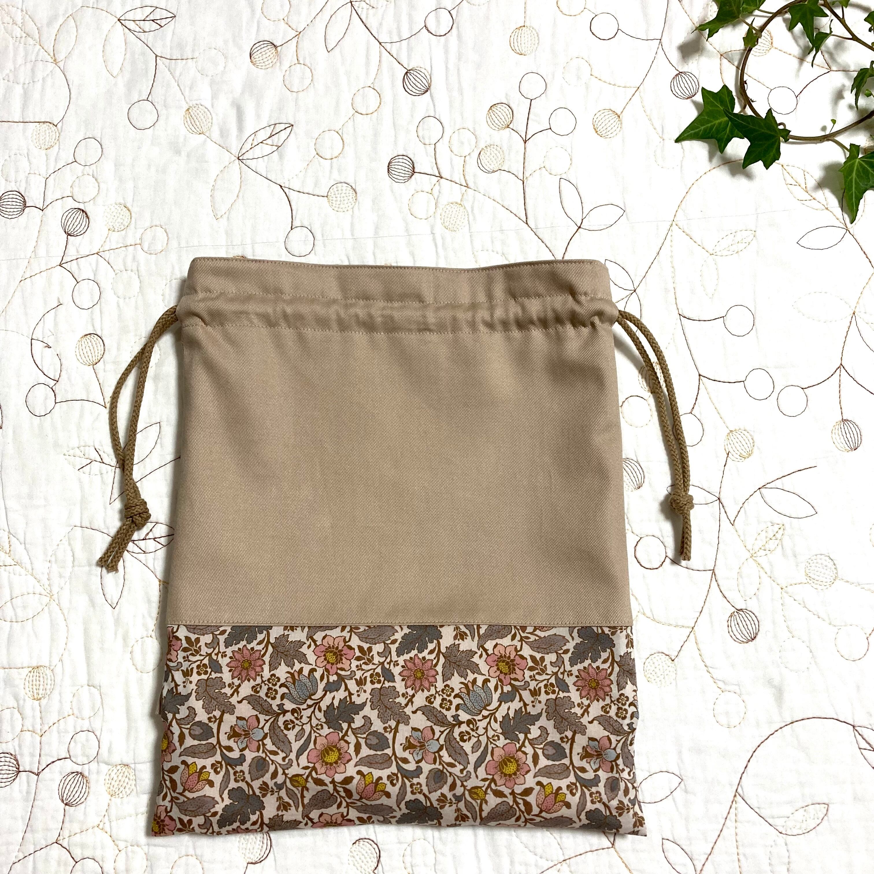 リバティ タナローン エメリーウォーカー雅姫さんコラボ(ホビーラホビーレ )とツイル ライトベージュで巾着袋を作製しました。