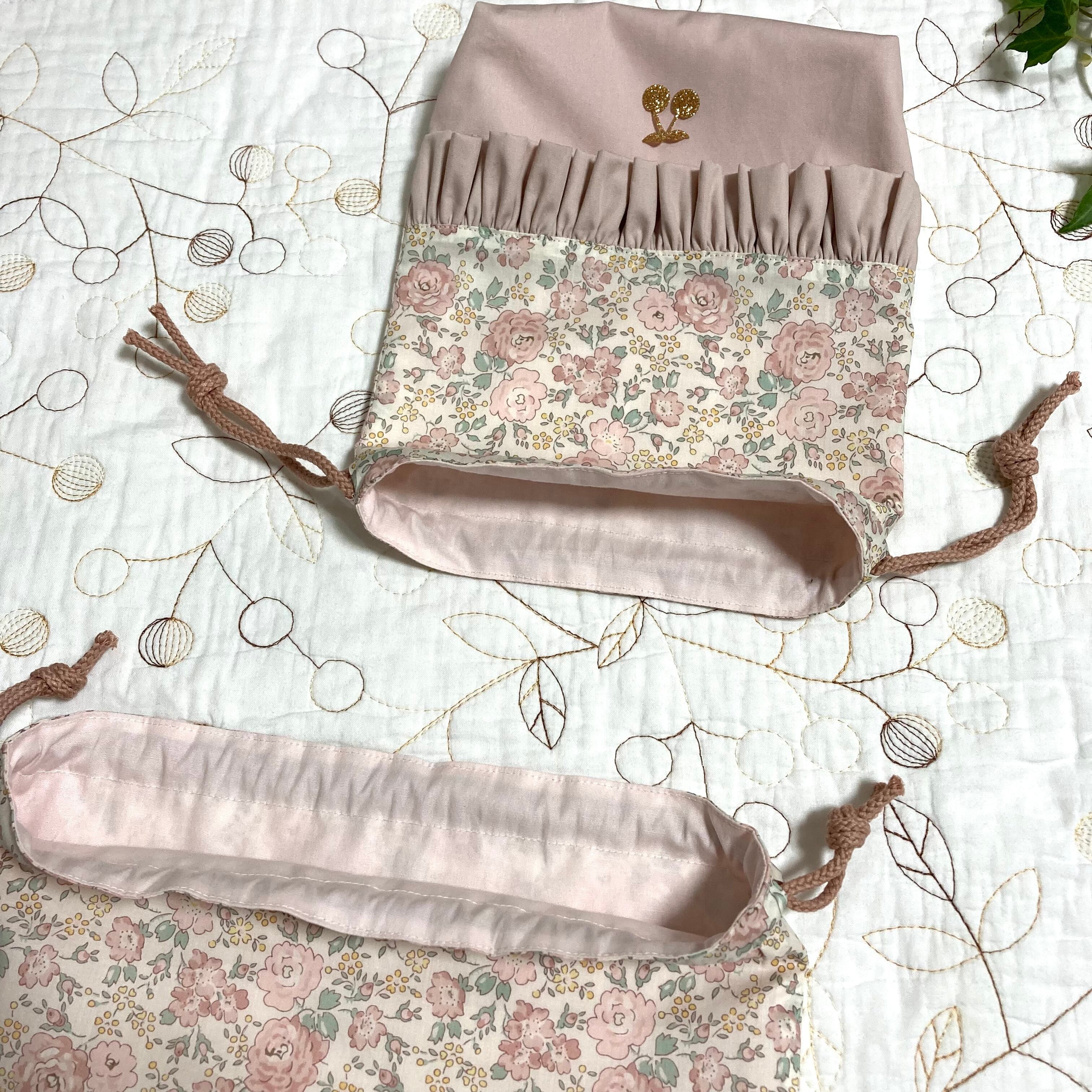 入園入学グッズ ハンドメイド リバティ巾着袋 (お弁当袋 コップ袋 3点セット) フェリシテ ダウンシャーヒル カーサノンナ