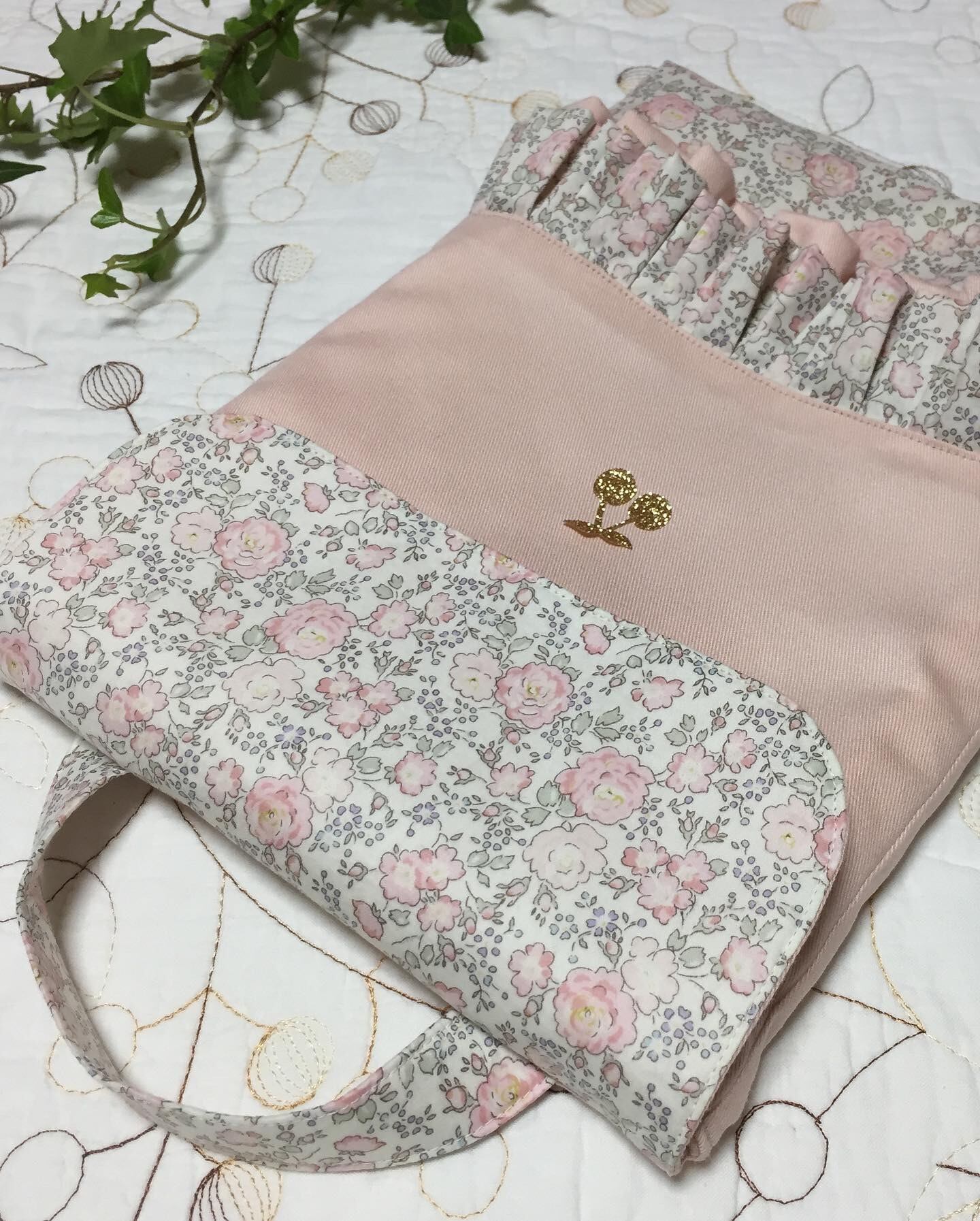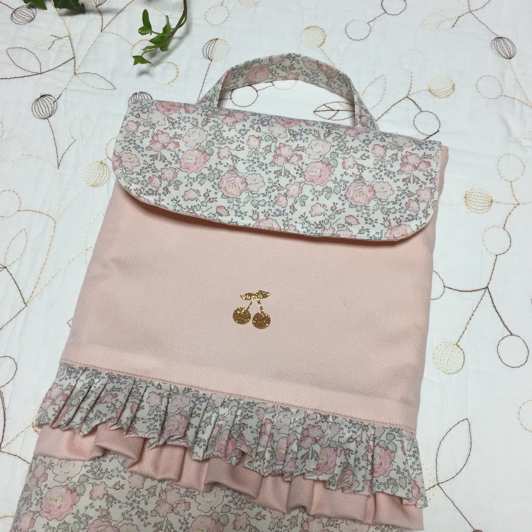 iPadケース (iPadバッグ) ハンドメイド フェリシテ ペールピンク チェック&ストライプ 入園入学準備グッズ