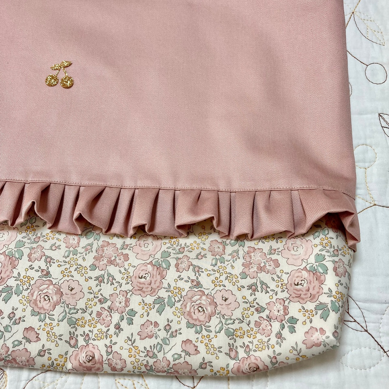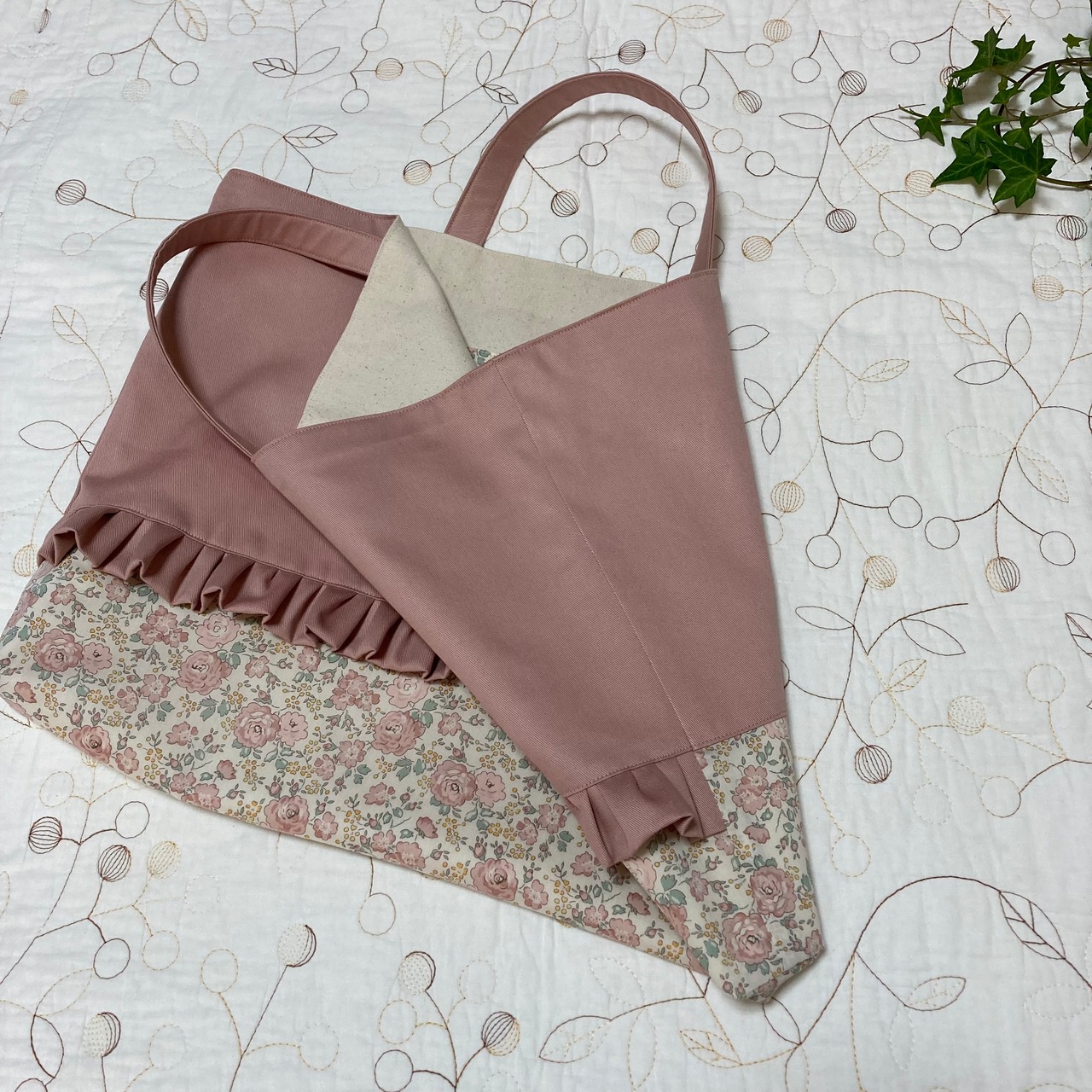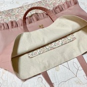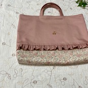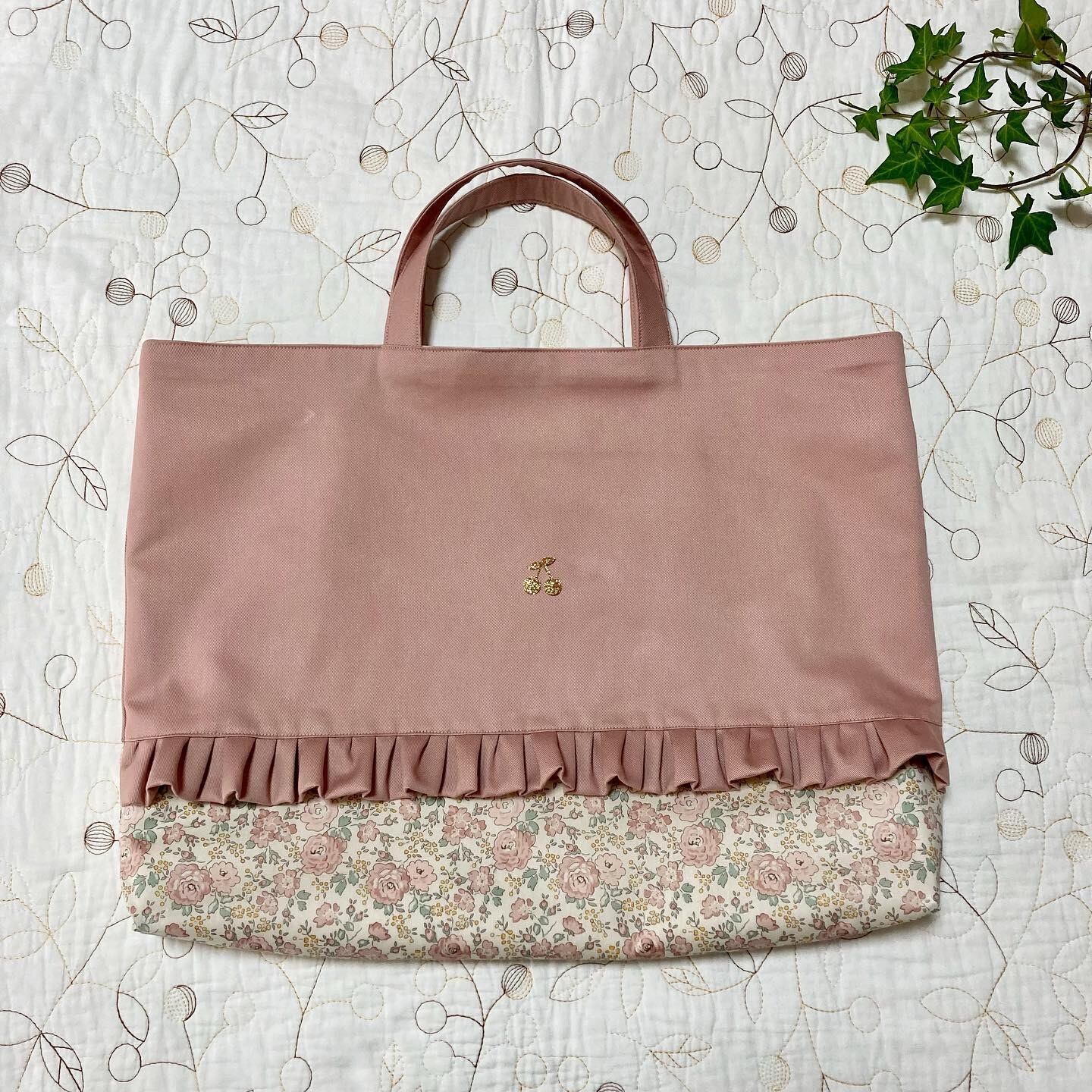 リバティ タナローン フェリシテ ダウンシャーヒル (カーサノンナ )とツイル ピンクラベンダーでレッスンバッグ(絵本袋 通園バッグ)を作製しました。