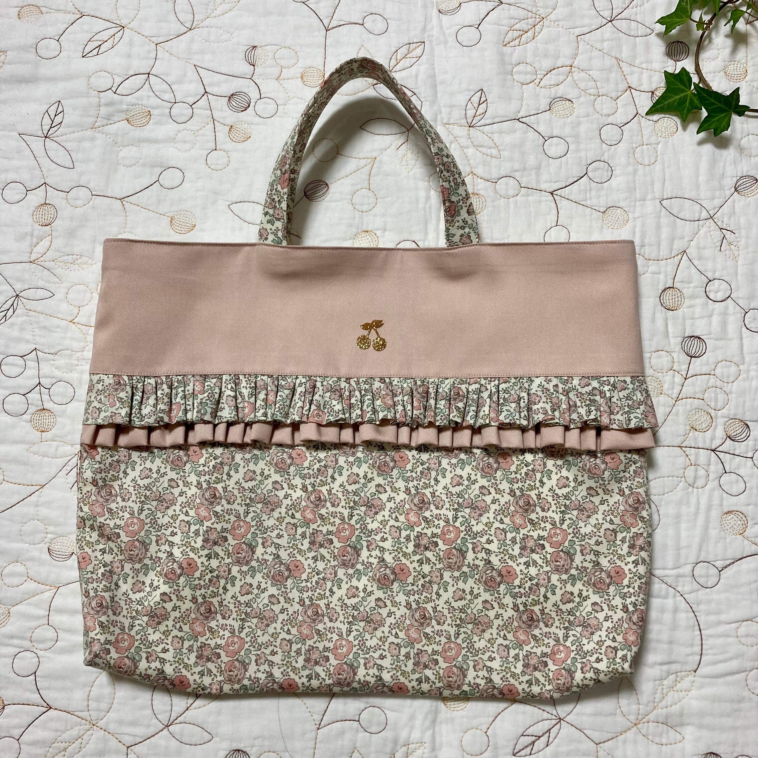 リバティ レッスンバッグ (絵本袋 通園バッグ) フェリシテ あずきミルク プティ ハンドメイド 入園入学準備グッズ