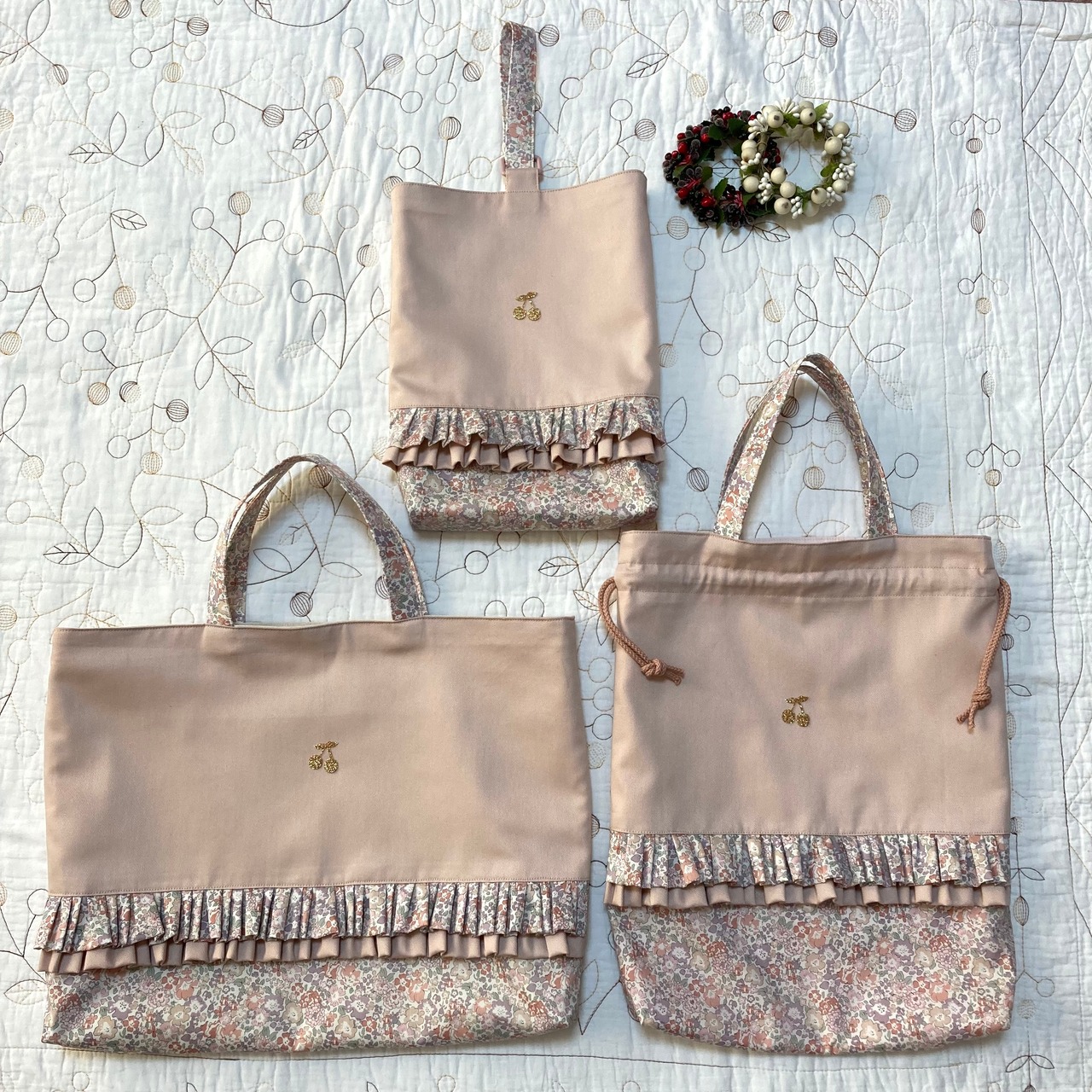 レッスンバッグ 上靴袋 お着替袋 3点セット リバティ ミシェル パールベージュ チビチビキッチン 入園グッズハンドメイド