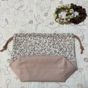 リバティ タナローン メドウテイルズ フレンチカラー(チェックアンドストライプ )と海のブロード グレィッシュピンクで巾着袋を作製しました。