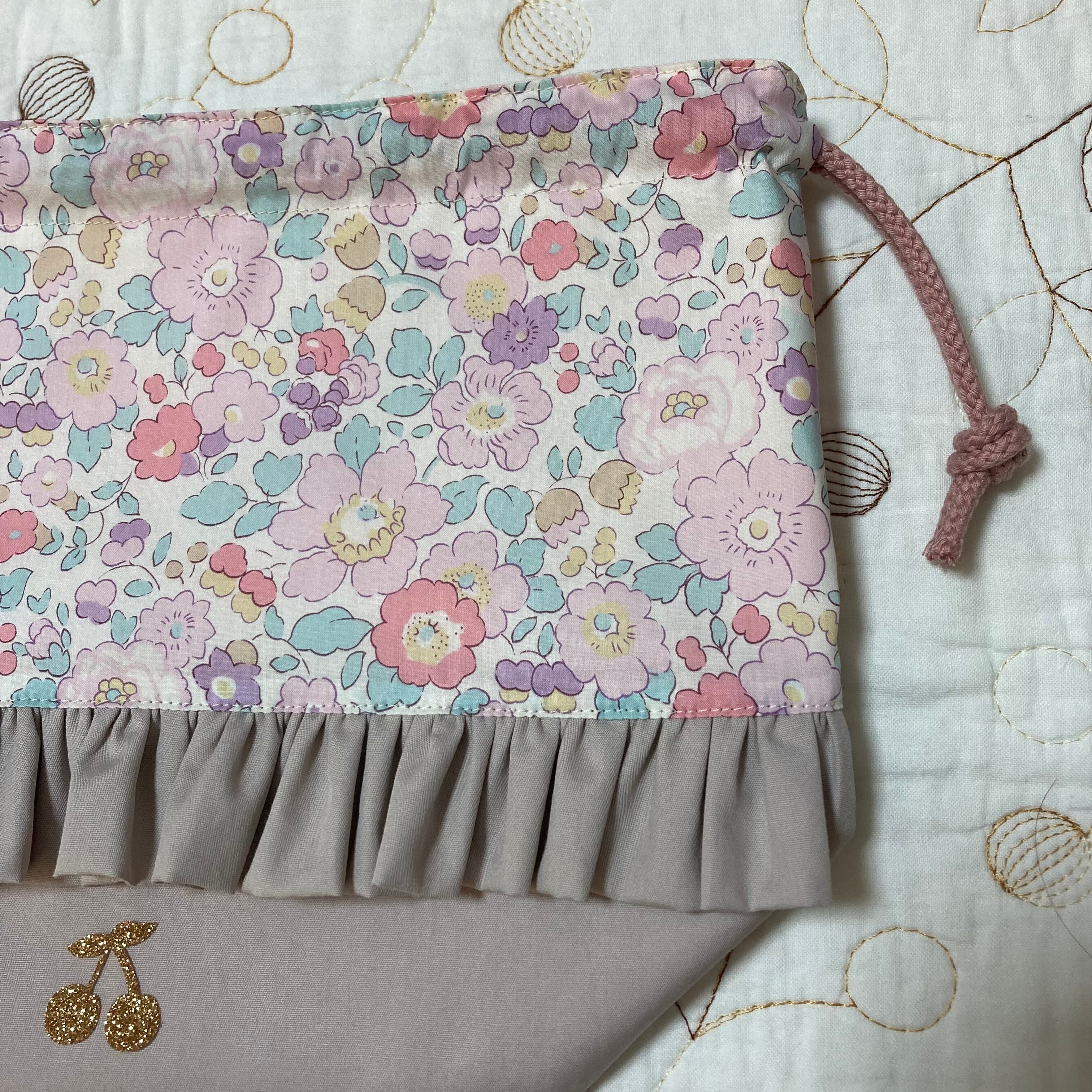 リバティ巾着 (お弁当袋 コップ袋 給食袋 ) ベッツィ ピンクモーヴ 入園入学グッズ ハンドメイド