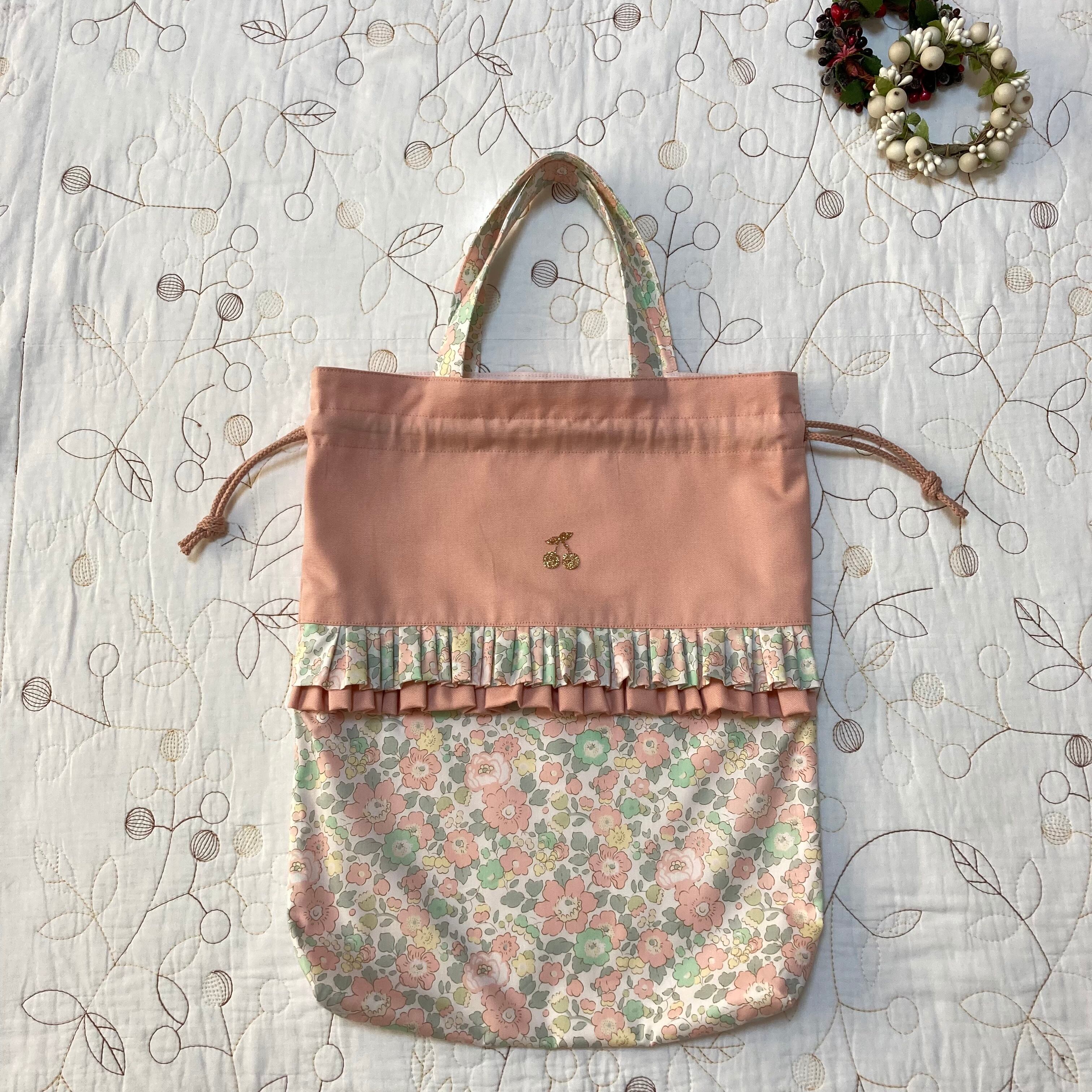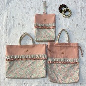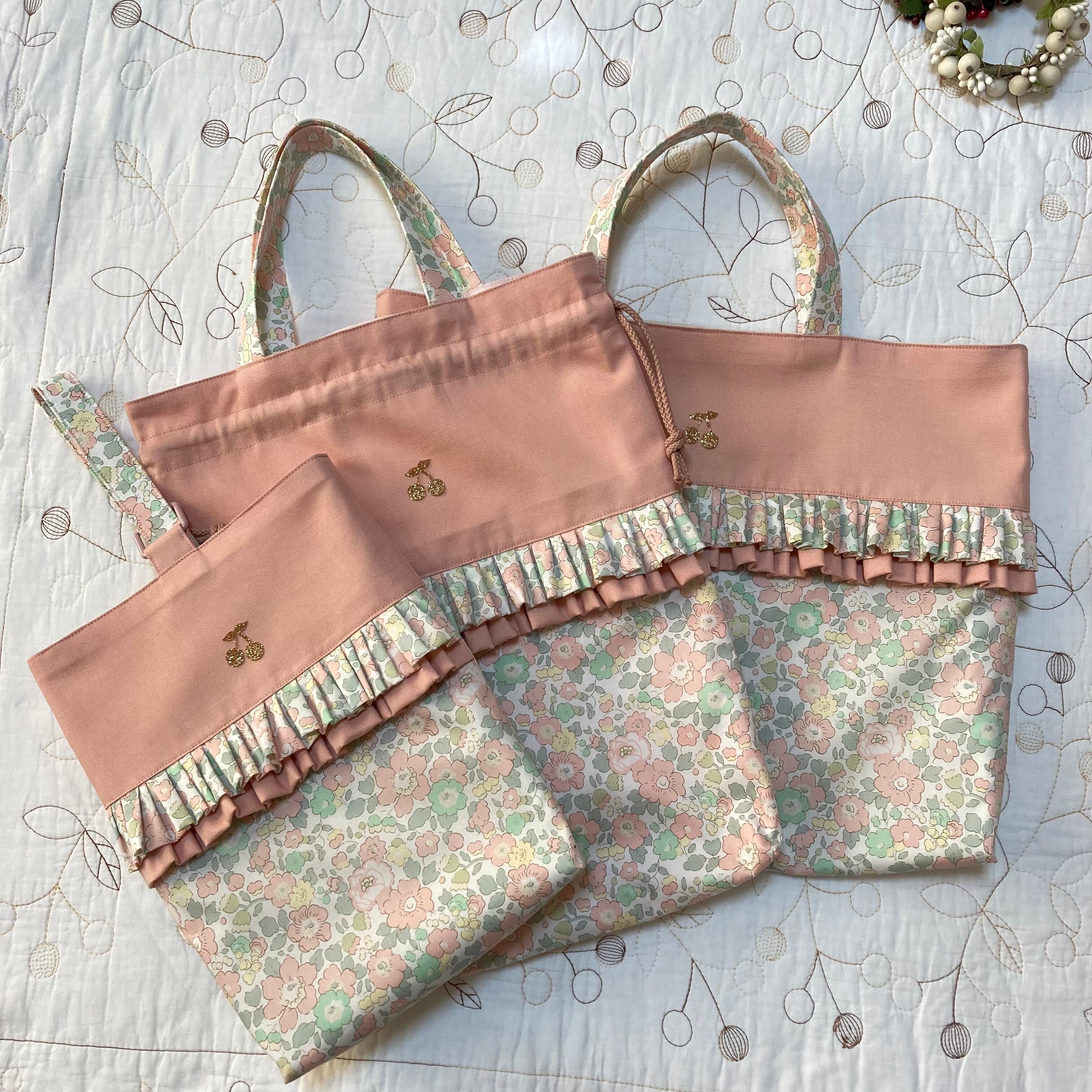 リバティ レッスンバッグ お着替え袋 上履き入れ 3点セットベッツィ ペールピンク チェック&ストライプ 入園入学グッズ